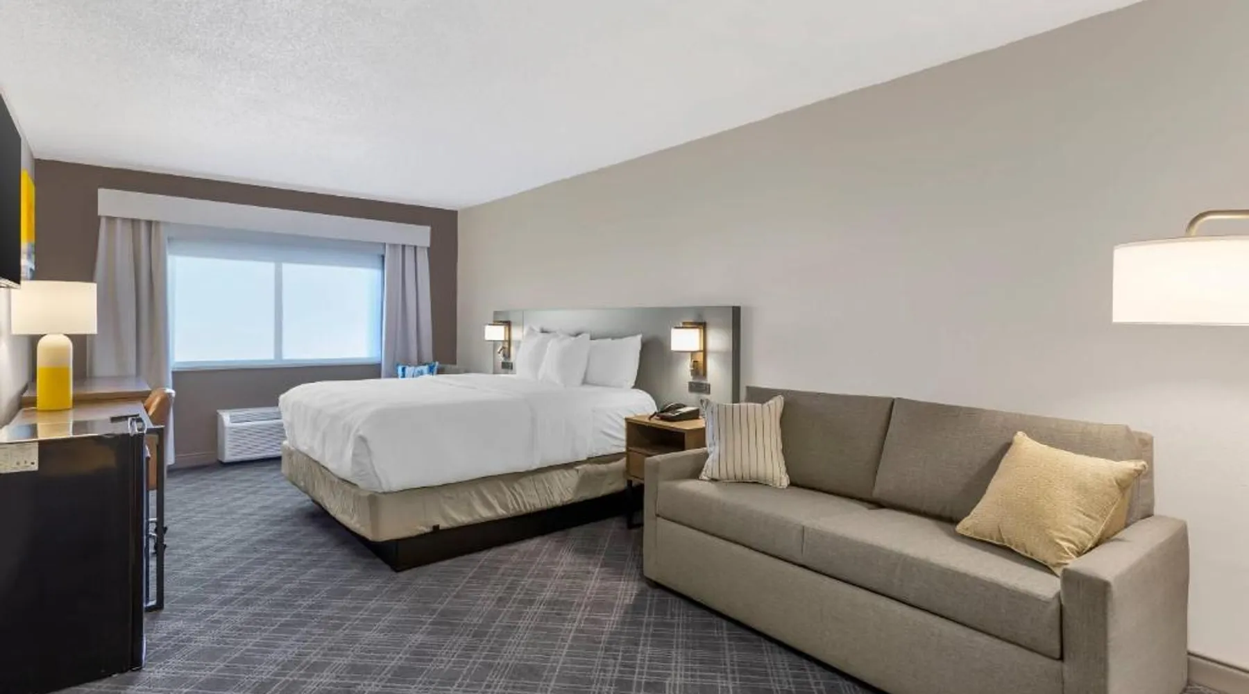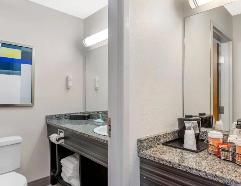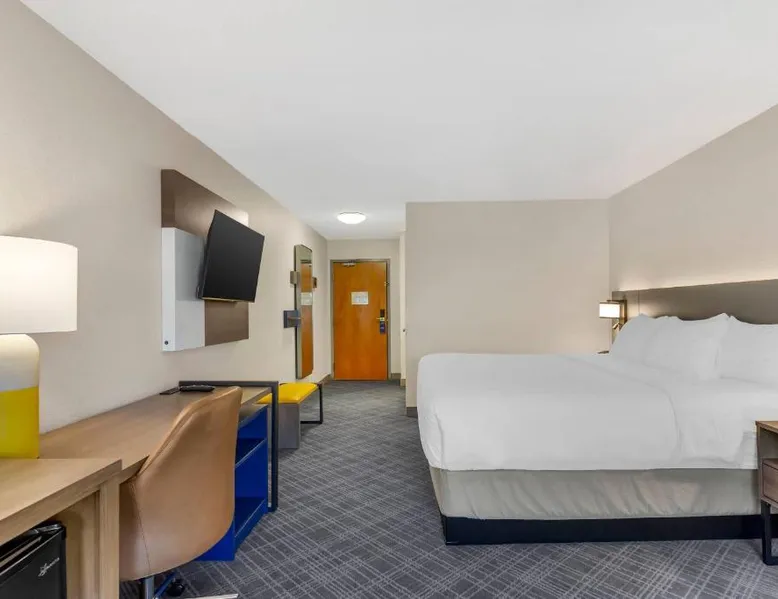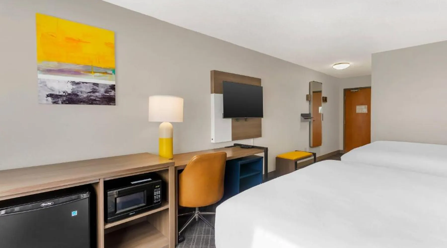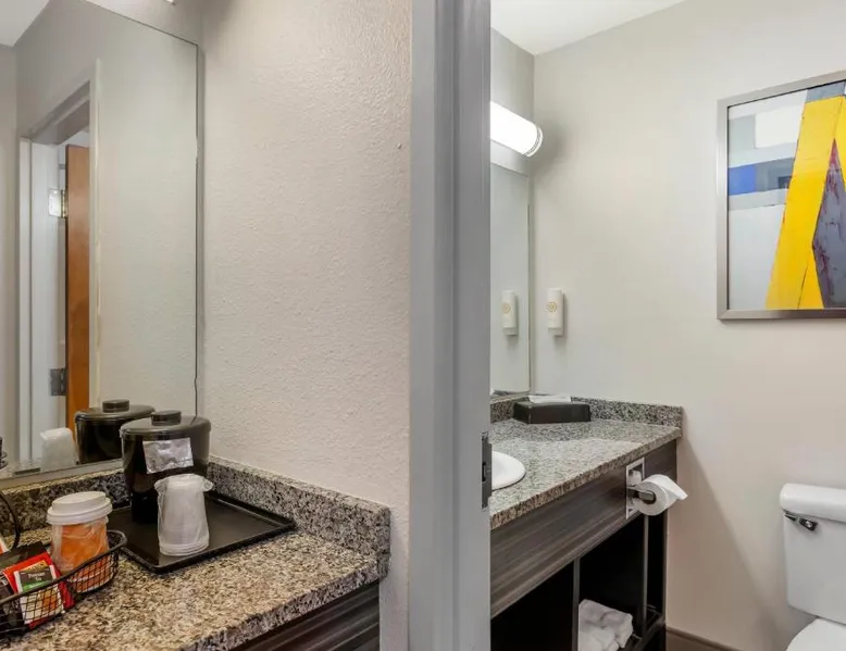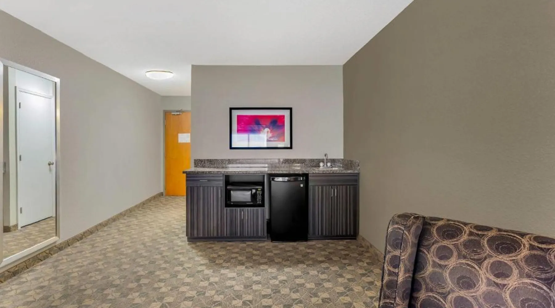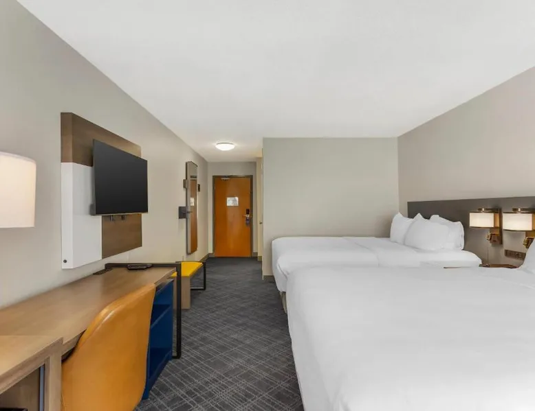 Comfortable Accommodations: Comfort Inn Huntington near University area in Huntington offers family rooms with air-conditioning, private bathrooms, and free WiFi. Each room includes a tea and coffee maker, refrigerator, work desk, and TV. Leisure Facilities: Guests can enjoy a fitness center, sun terrace, indoor swimming pool, and hot tub/jacuzzi. Additional amenities include a lounge, fitness room, elevator, 24-hour front desk, daily housekeeping service, child-friendly buffet, business area, outdoor seating, picnic area, and barbecue facilities. Convenient Location: Located 13 mi from Tri-State Airport, the inn is near Marshall University (2.7 mi), Joan C Edwards Stadium (3 mi), and Huntington Mall (9.9 mi). Other attractions include Highlands Museum and Discovery Center (18 mi) and Big Sandy Superstore Arena (4.3 mi). Guest Satisfaction: Highly rated for its attentive staff and excellent service support, the property provides a continental breakfast and free on-site private parking. The air-conditioned suite features 1 bedroom and 1 bathroom with a bath and a shower. The suite provides a flat-screen TV with cable channels, a tea and coffee maker, a wardrobe and a carpeted floor. The unit offers 1 bed.