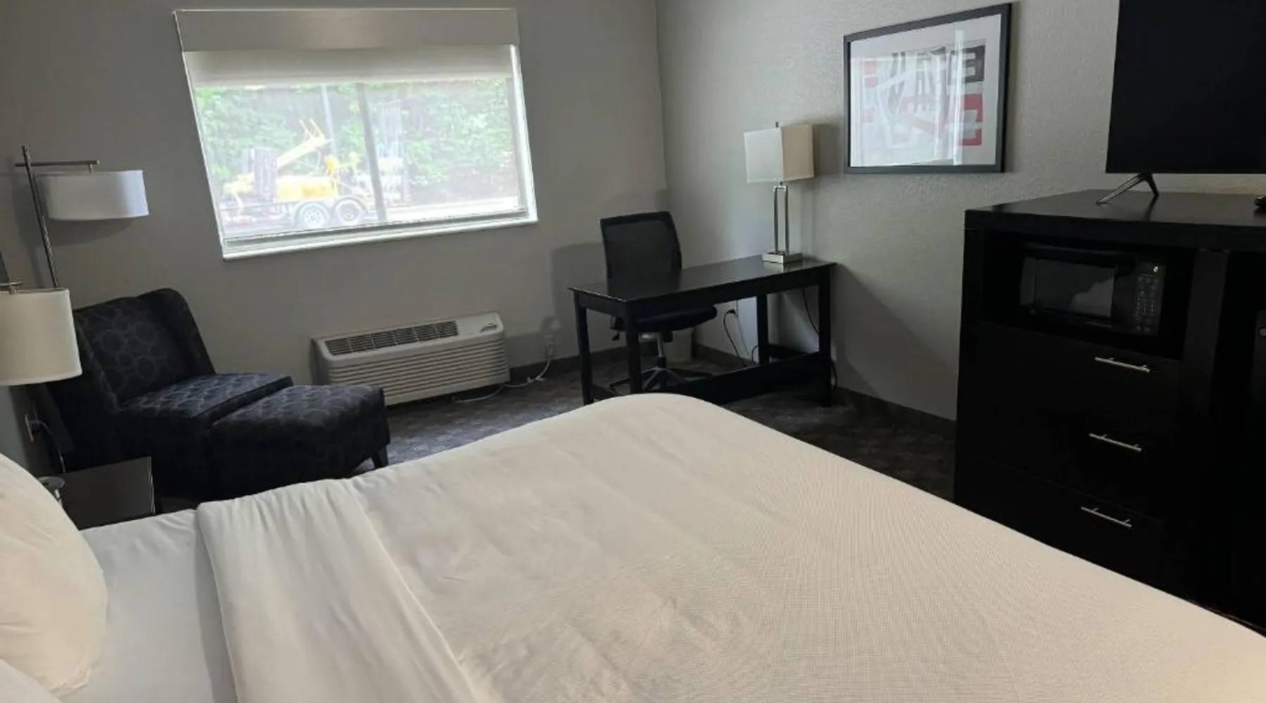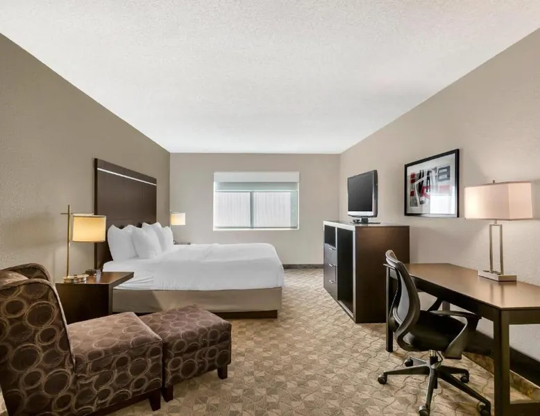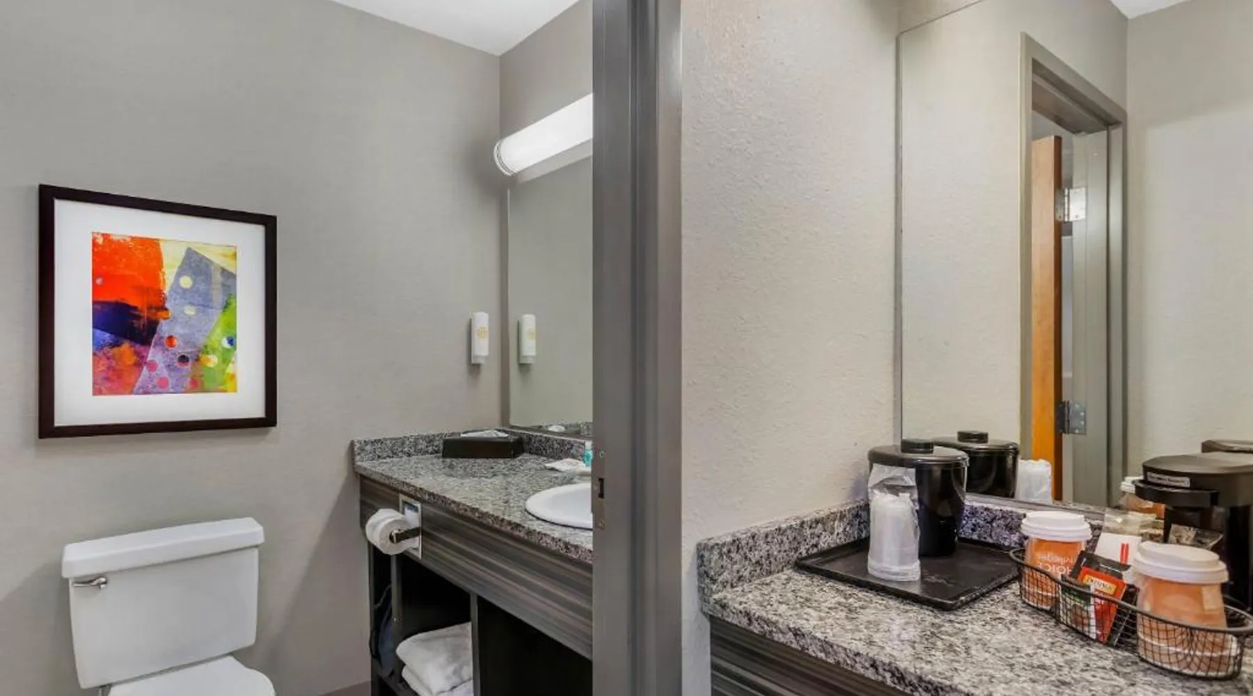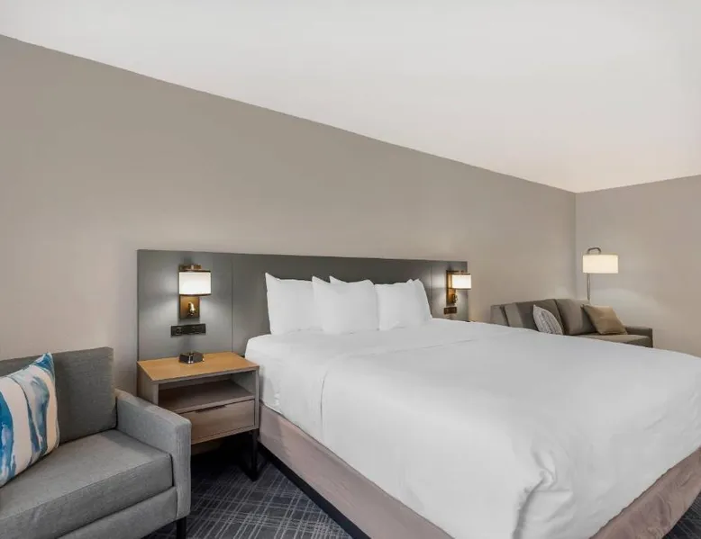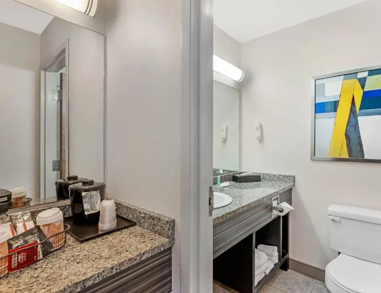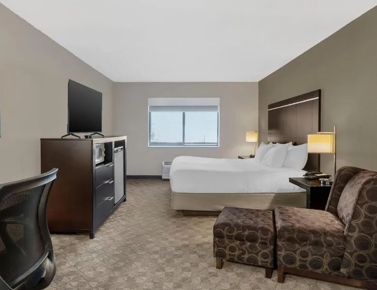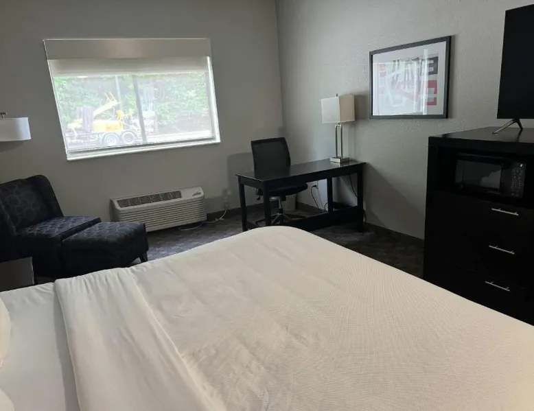 Comfortable Accommodations: Comfort Inn Huntington near University area in Huntington offers family rooms with air-conditioning, private bathrooms, and free WiFi. Each room includes a tea and coffee maker, refrigerator, work desk, and TV. Leisure Facilities: Guests can enjoy a fitness center, sun terrace, indoor swimming pool, and hot tub/jacuzzi. Additional amenities include a lounge, fitness room, elevator, 24-hour front desk, daily housekeeping service, child-friendly buffet, business area, outdoor seating, picnic area, and barbecue facilities. Convenient Location: Located 13 mi from Tri-State Airport, the inn is near Marshall University (2.7 mi), Joan C Edwards Stadium (3 mi), and Huntington Mall (9.9 mi). Other attractions include Highlands Museum and Discovery Center (18 mi) and Big Sandy Superstore Arena (4.3 mi). Guest Satisfaction: Highly rated for its attentive staff and excellent service support, the property provides a continental breakfast and free on-site private parking. The air-conditioned suite features 1 bedroom and 1 bathroom with a bath and a shower. The suite provides a flat-screen TV with cable channels, a tea and coffee maker, a wardrobe and a carpeted floor. The unit offers 1 bed.