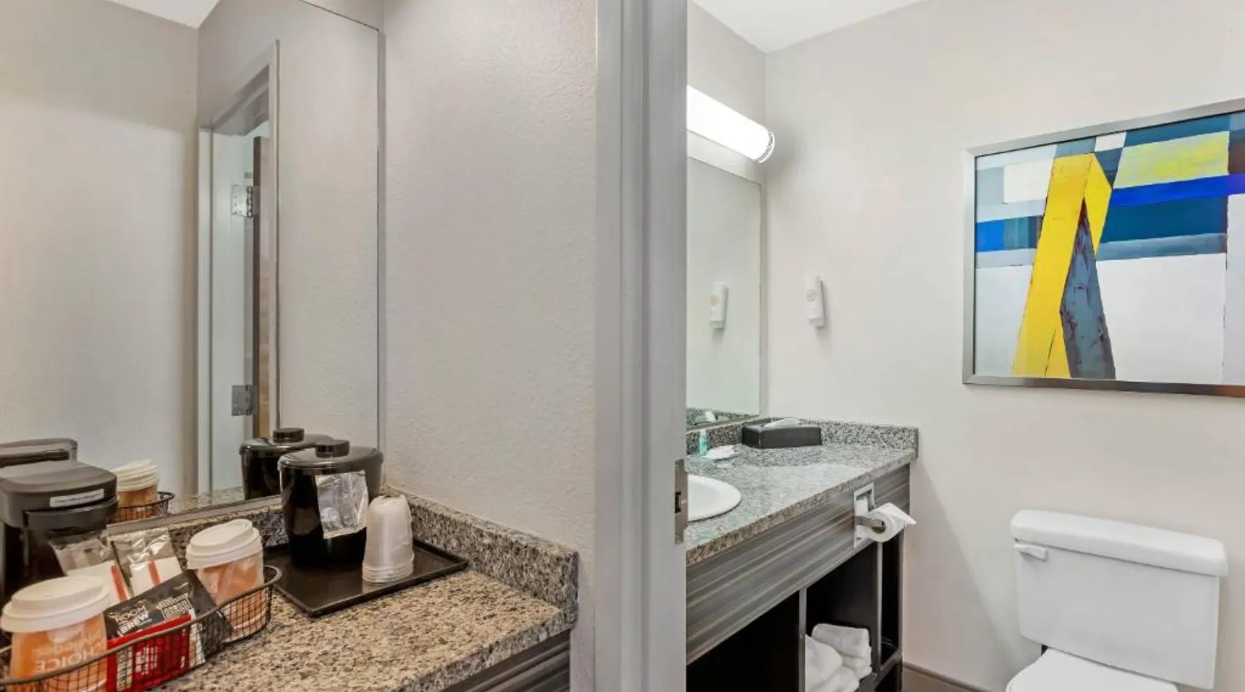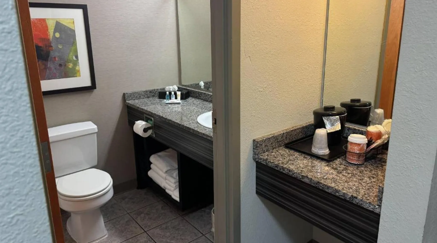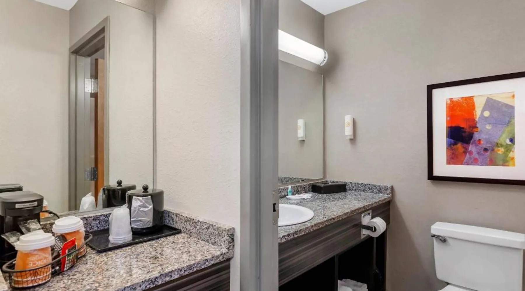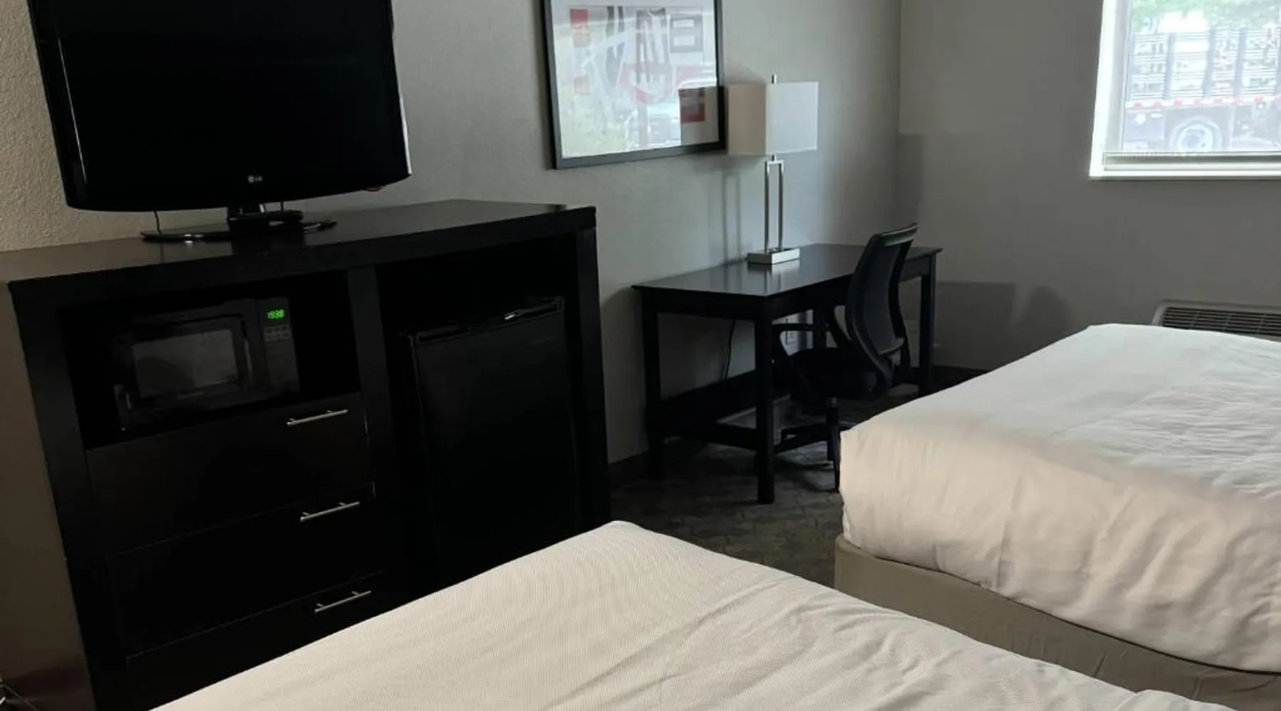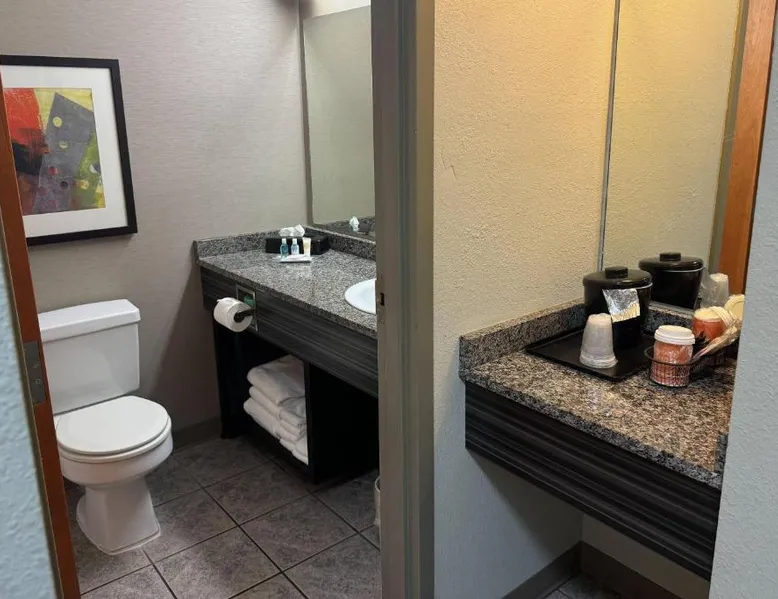 Comfortable Accommodations: Comfort Inn Huntington near University area in Huntington offers family rooms with air-conditioning, private bathrooms, and free WiFi. Each room includes a tea and coffee maker, refrigerator, work desk, and TV. Leisure Facilities: Guests can enjoy a fitness center, sun terrace, indoor swimming pool, and hot tub/jacuzzi. Additional amenities include a lounge, fitness room, elevator, 24-hour front desk, daily housekeeping service, child-friendly buffet, business area, outdoor seating, picnic area, and barbecue facilities. Convenient Location: Located 13 mi from Tri-State Airport, the inn is near Marshall University (2.7 mi), Joan C Edwards Stadium (3 mi), and Huntington Mall (9.9 mi). Other attractions include Highlands Museum and Discovery Center (18 mi) and Big Sandy Superstore Arena (4.3 mi). Guest Satisfaction: Highly rated for its attentive staff and excellent service support, the property provides a continental breakfast and free on-site private parking. The air-conditioned suite features 1 bedroom and 1 bathroom with a bath and a shower. The suite provides a flat-screen TV with cable channels, a tea and coffee maker, a wardrobe and a carpeted floor. The unit offers 1 bed.