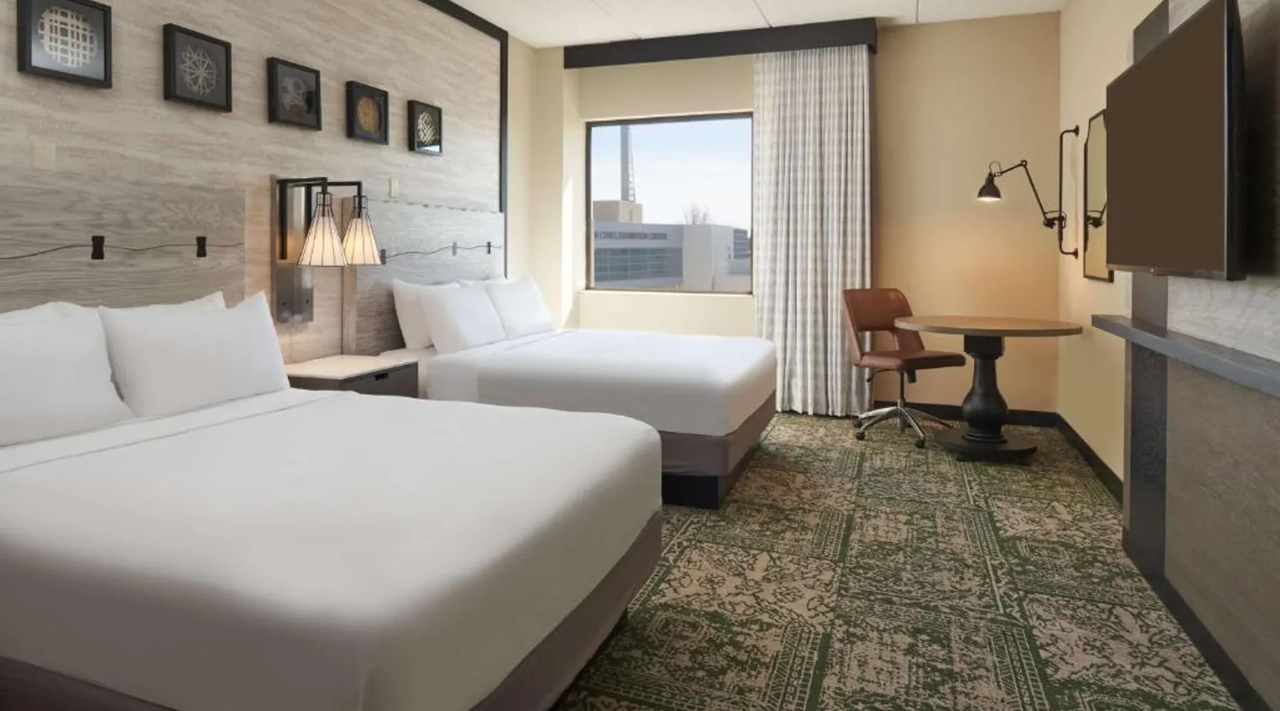 Offering free Wi-Fi and guest rooms with 37-inch flat-screen TVs, this Hilton Appleton Paper Valley is less than 10 minutes’ walk from Lawrence University. An indoor pool is located on-site. A 37-inch flat-screen TV with HBO cable is included in each air-conditioned room at Red Lion Hotel Paper Valley. A coffee maker, full-length mirror and hairdryer are also provided. Guests can enjoy a work out in the fitness center or relax in the sauna at Red Lion Hotel Paper Valley. A 24-hour airport transfer service is provided to all guests. Vince Lombardi’s Steakhouse, located on site, features prime steaks, chops and seafood for dinner each evening. The hotel also features 2 cafes and 2 bars on the property. Fox River Mall is less than 4 miles away. Fox Cities Performing Arts Center is adjacent to this hotel. The family room features a tea and coffee maker. The unit has 2 beds.