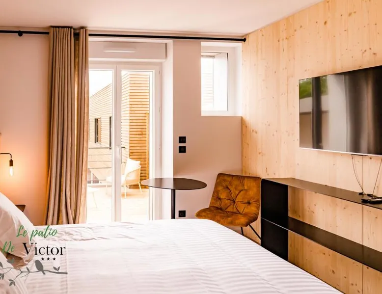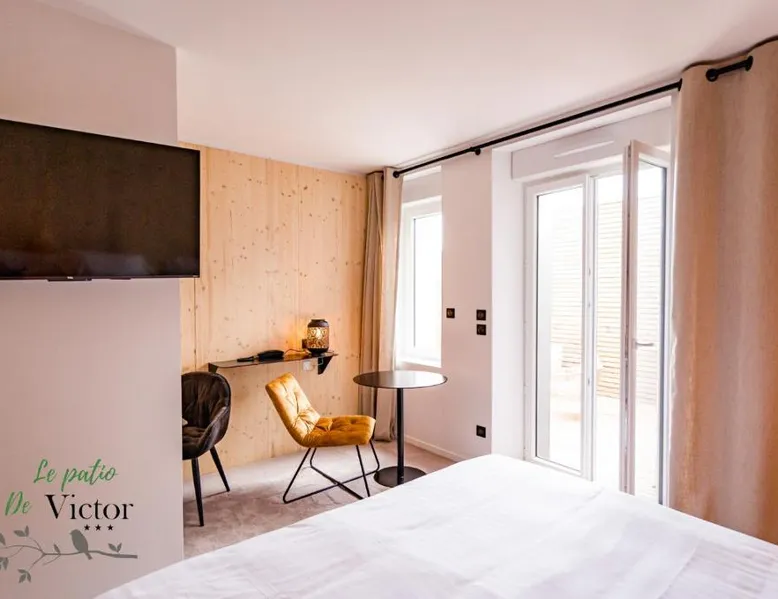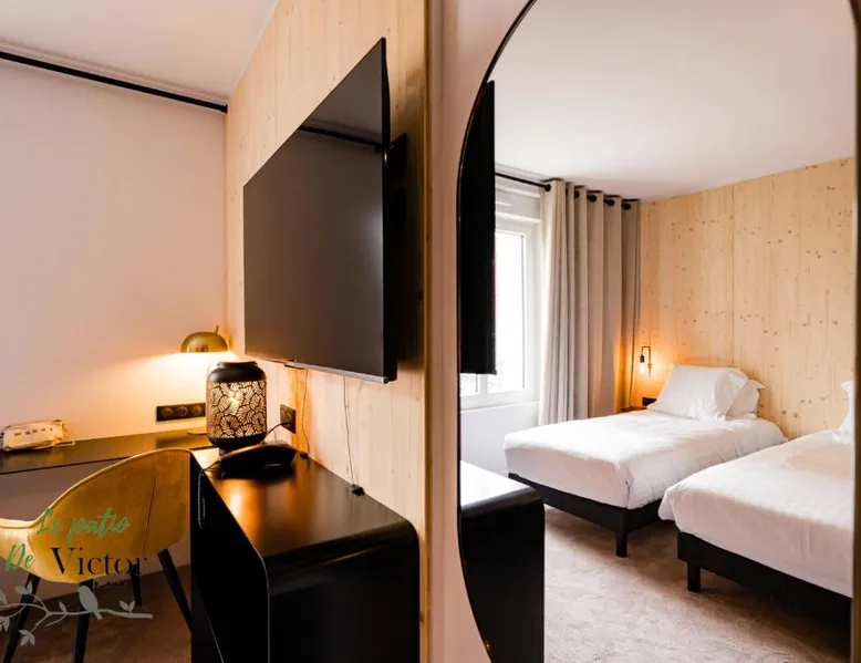This hotel is located within a short walk from Lorient city center, 0.9 mi from the Cité de la Voile and 3.1 mi from Larmor Beach. Provided with free Wi-Fi internet access, guest rooms at Le Patio de Victor includes a TV and a shower. The property is a 15-minute walk from Lorient Train Station and a 10-minute walk from the ferries that lead to Ile d’Groix. The Palais de Congres is 2625 feet away. The twin/double room includes a private bathroom equipped with a walk-in shower and a hairdryer. The twin/double room's kitchenette, which has a microwave, is available for cooking and storing food. This twin/double room is air-conditioned and features a flat-screen TV with streaming services, a mini-bar, a tea and coffee maker and a wardrobe.