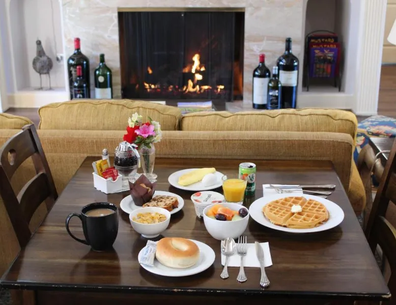 The Elm House Inn is a wonderful destination for weekend getaways, vacations in Napa Valley, and honeymoon escapes. This lovely Wine Country Inn offers the charm of a bed and breakfast with the amenities of a boutique hotel. The property features an elegant and welcoming lobby with chandeliers and an Italian marble fireplace, a luxurious spa, and beautiful gardens. Only a 15 minute walk from downtown Napa you will find dozens of shops, wine tasting rooms and world renowned restaurants. Our front office staff is eager to welcome you and be of any assistance you may require. We offer a fresh continental self-serve breakfast buffet consisting of our famous waffles, fresh fruit, ample bread options, cereals, hard-boiled eggs, our homemade muffins, yogurts, juice, and coffee. Guests are welcome to have a seat at an open table inside, out on the patio, cozy by the lobby fireplace or take it up to their room. Offering free toiletries and bathrobes, this double room includes a private bathroom with a bath, a shower and a hairdryer. This double room has air conditioning, a private entrance, flat-screen TV with cable channels, as well as chocolate for guests. The unit has 3 beds.