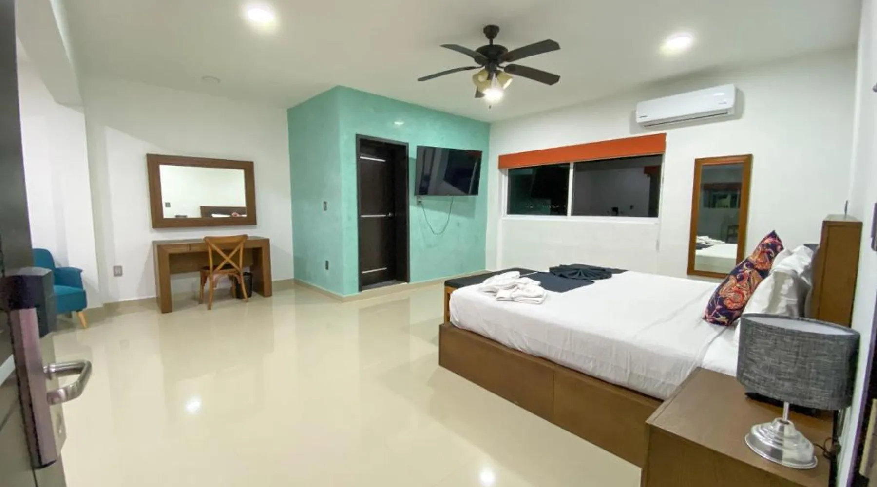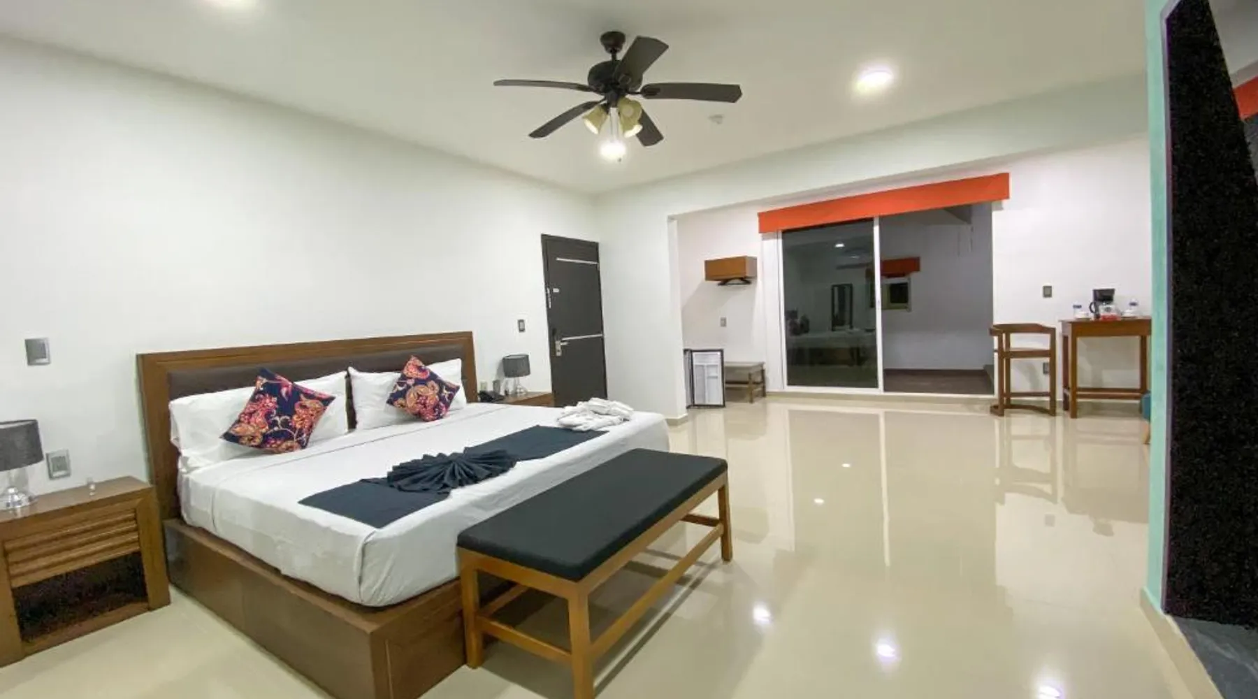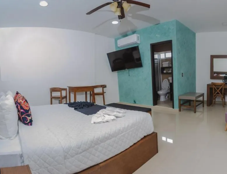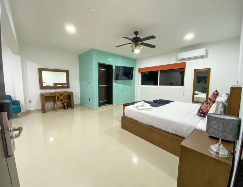 Comfortable Accommodations: Hotel Boketto in Tuxpan de Rodríguez Cano offers family rooms with sea views, balconies, and terraces. Each room includes air-conditioning, a private bathroom, free toiletries, and a TV. Exceptional Facilities: Guests enjoy a rooftop swimming pool, sun terrace, restaurant, and bar. Free WiFi is available in public areas. Additional amenities include a hot tub, spa bath, and pool views. Dining Experience: The family-friendly restaurant serves Mexican and local cuisines for brunch, lunch, and cocktails. Breakfast options include continental and American styles with local specialties, juice, and fruits. Prime Location: Playa de Tuxpan is just a few steps away. The hotel provides a convenient location with easy access to local attractions. Highly rated for its beach access and room comfort. This twin room has a private bathroom and air conditioning. This twin room offers a flat-screen TV. The unit has 3 beds.