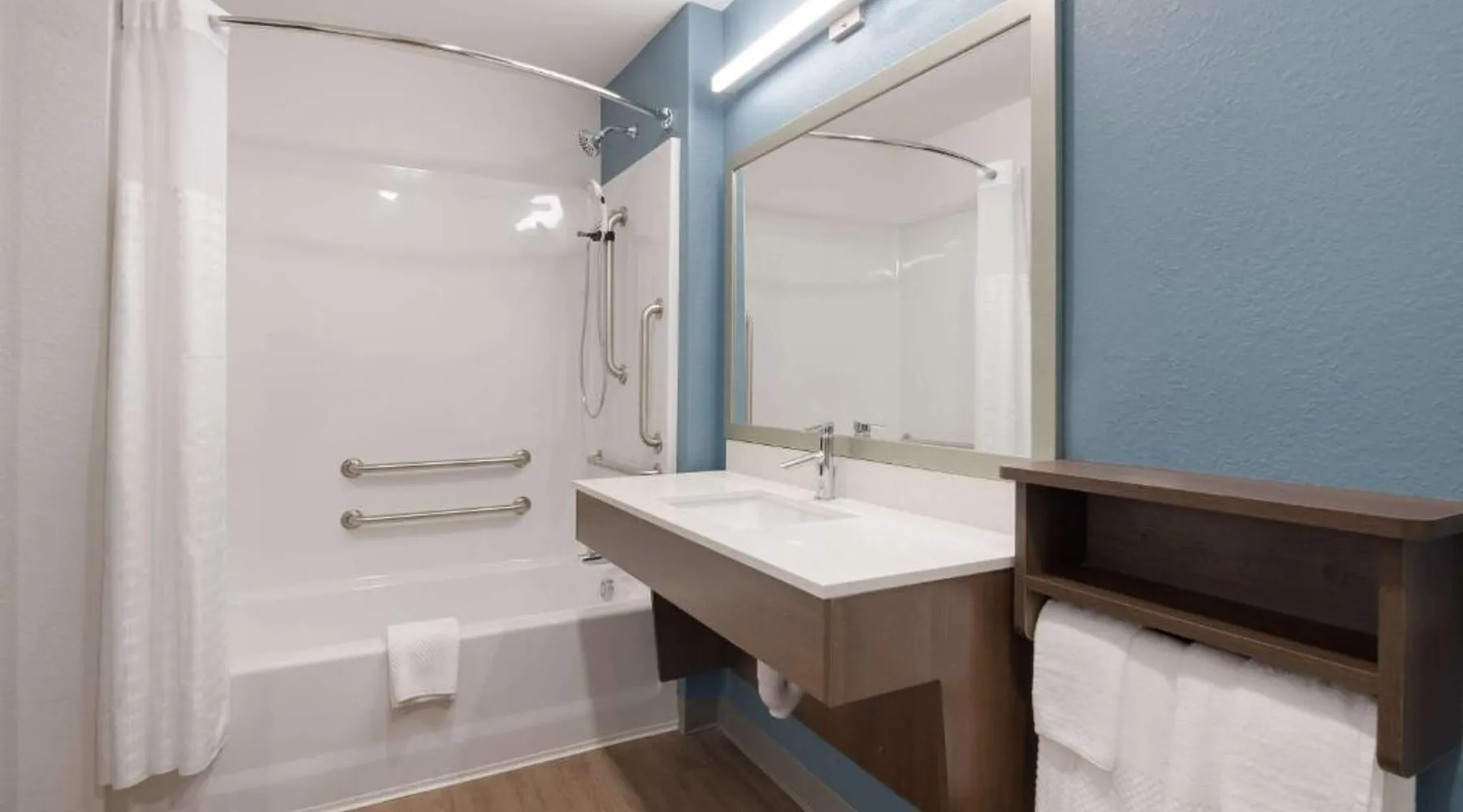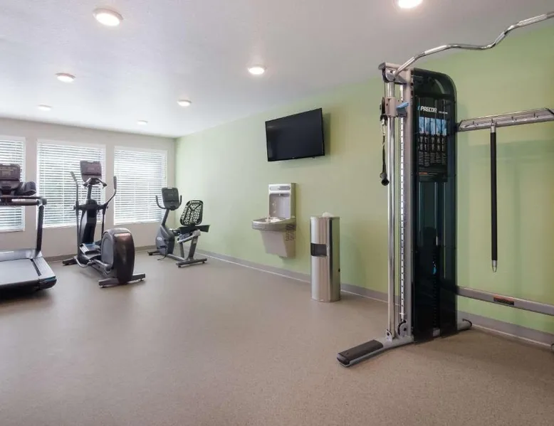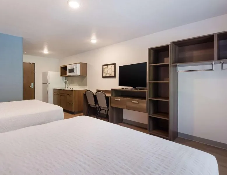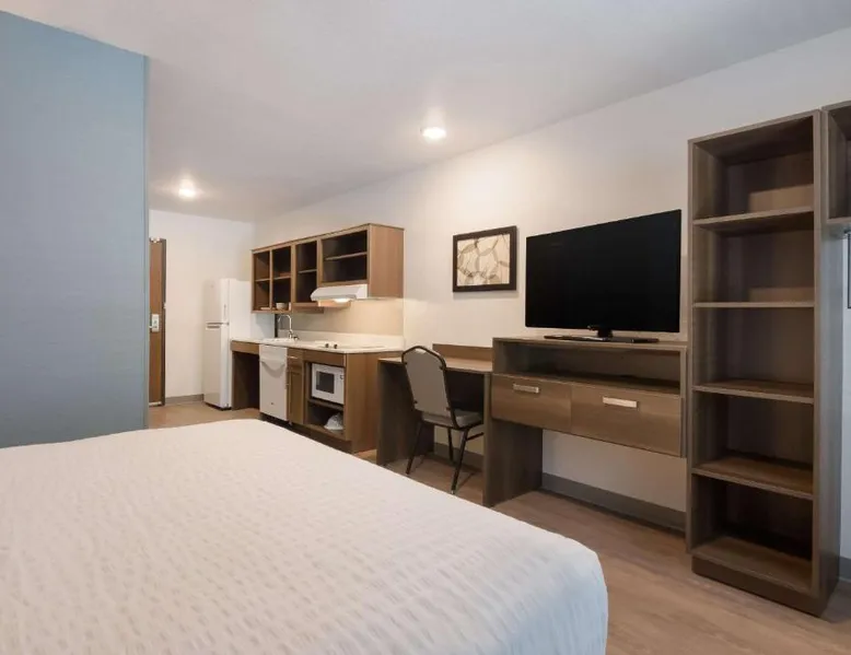 Comfortable Accommodations: WoodSpring Suites Lynchburg VA in Lynchburg offers well-appointed rooms with kitchenettes, private bathrooms, and parquet floors. Each room includes a refrigerator, microwave, stovetop, dishwasher, and TV. Modern Facilities: Guests enjoy a fitness center and free WiFi. The hotel features a elevator, 24-hour front desk, and free on-site private parking. Additional amenities include a sofa bed, bath, and shower. Convenient Location: Located 4.3 mi from Lynchburg Regional Airport, the hotel is close to Liberty University (2.5 mi), Lynchburg Stadium (2.5 mi), Lynchburg College (3.1 mi), and National D Day Memorial (23 mi). Guest Satisfaction: Guests appreciate the room cleanliness, convenient location, and attentive property staff and service support. The spacious double room provides parquet floors, heating, as well as a private bathroom featuring a bath and a shower. The well-equipped kitchenette features a stovetop, a refrigerator and a microwave. This double room features a flat-screen TV. The unit offers 1 bed.