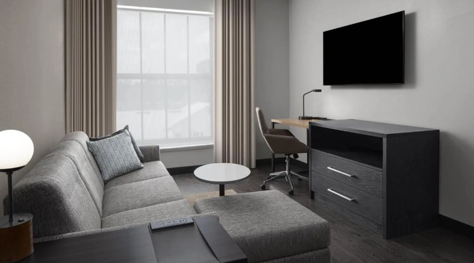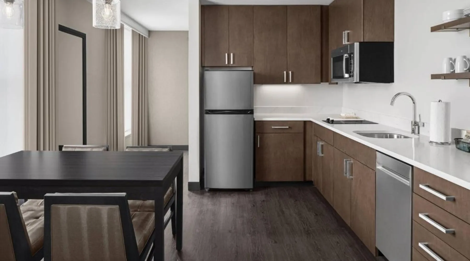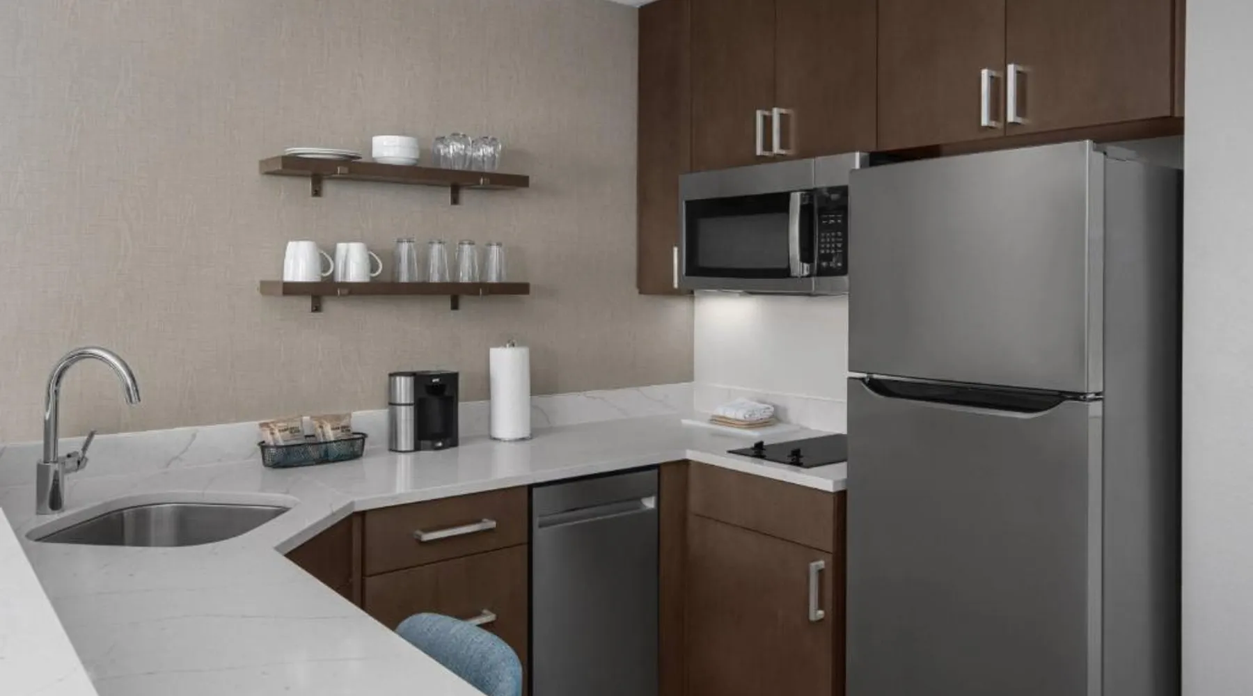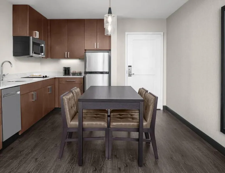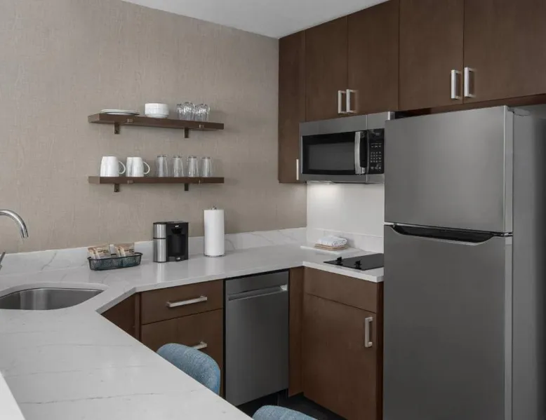 Comfortable Accommodations: Residence Inn By Marriott Jacksonville-Mayo Clinic Area in Jacksonville offers family rooms with air-conditioning, private bathrooms, and modern amenities including free WiFi, TV, and kitchenettes. Exceptional Facilities: Guests enjoy a fitness center, year-round outdoor swimming pool, terrace, bar, and free use of bicycles. Additional facilities include a lounge, outdoor fireplace, and outdoor seating areas. Convenient Location: Located 27 mi from Jacksonville International Airport, the hotel is near attractions such as Jacksonville Beach Golf Club (5 mi) and Kathryn Abbey Hanna Park (11 mi). Free on-site parking and a 24-hour front desk enhance the stay. Guest Satisfaction: Highly rated for room cleanliness, attentive staff, and convenient location, the hotel ensures a pleasant and comfortable experience for all visitors. This spacious suite is consisted of of 1 living room, 1 separate bedroom and 1 bathroom with a bath and free toiletries. In the well-fitted kitchen, guests will find a stovetop, a refrigerator, a dishwasher and kitchenware. The suite features carpeted floors, a seating area with a flat-screen TV with streaming services, air conditioning, a tea and coffee maker, as well as a dining area. The unit offers 2 beds.
