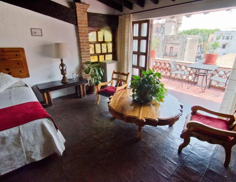 Comfortable Accommodations: Hotel Mi Casita in Taxco De Alarcón offers comfortable rooms with private bathrooms, free toiletries, showers, TVs, and wardrobes. Each room includes a terrace, balcony, or patio with city views. Essential Facilities: Guests enjoy free WiFi, a terrace, and an outdoor seating area. The hotel provides a 24-hour front desk, housekeeping service, full-day security, and a tour desk. Prime Location: Located a 1-minute walk from Santa Prisca de Taxco, the hotel is 81 mi from Lic. Adolfo López Mateos International Airport. Nearby attractions include Cacahuamilpa National Park at 18 mi. Guest Satisfaction: Highly rated for its convenient location, scenic views, and attentive staff, Hotel Mi Casita ensures a pleasant stay for all visitors. This double room includes a flat-screen TV with cable channels and a private bathroom. The unit offers 1 bed.