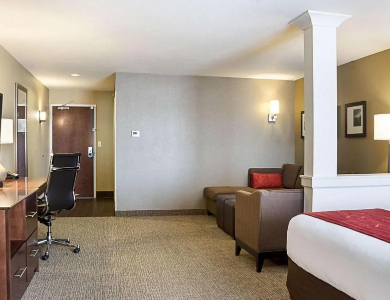 Comfortable Accommodations: Comfort Suites Fargo Medical Center in Fargo offers family rooms with air-conditioning, private bathrooms, and free WiFi. Each room includes a work desk, sofa bed, and TV. Exceptional Facilities: Guests can enjoy an indoor swimming pool, fitness center, and free WiFi. Additional amenities include a fitness room, elevator, 24-hour front desk, minimarket, business area, and express check-in and check-out services. Delicious Breakfast: A continental buffet breakfast is served daily, including warm dishes, fresh pastries, pancakes, cheese, fruits, and juice. Gluten-free options are available. Prime Location: Located 6.8 mi from Hector International Airport, the hotel is a 4-minute walk from Red River Zoo. Nearby attractions include Fargo Civic Center (6.2 mi) and FargoDome (7.5 mi). Providing free toiletries, this suite includes a private bathroom with a shower and a hairdryer. The suite features carpeted floors, a seating area with a TV with cable channels, air conditioning, a tea and coffee maker, as well as a wardrobe.