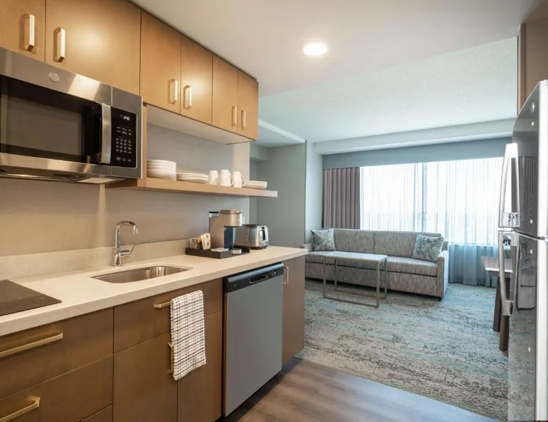 Comfortable Accommodations: Rooms feature air-conditioning, kitchen facilities, and modern amenities. Guests enjoy free toiletries, a work desk, and a seating area. Dining and Leisure: The hotel offers an American restaurant and bar, a fitness center, and a child-friendly buffet. Additional facilities include a minimarket, business area, and bicycle parking. Convenient Location: Located in Toledo, the property is 14 mi from Toledo Express Airport. Nearby attractions include Fifth Third Field (984 feet) and The Valentine Theater (8-minute walk). Guest Satisfaction: Highly rated for room comfort, breakfast provided by the property, and convenient location. In the well-fitted kitchen, guests will find a stovetop, a refrigerator, a dishwasher and kitchenware. The spacious suite offers air conditioning, a tea and coffee maker, a seating area, a safe deposit box, as well as a TV with cable channels. The unit has 2 beds.