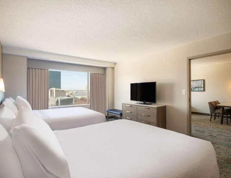 Comfortable Accommodations: Rooms feature air-conditioning, kitchen facilities, and modern amenities. Guests enjoy free toiletries, a work desk, and a seating area. Dining and Leisure: The hotel offers an American restaurant and bar, a fitness center, and a child-friendly buffet. Additional facilities include a minimarket, business area, and bicycle parking. Convenient Location: Located in Toledo, the property is 14 mi from Toledo Express Airport. Nearby attractions include Fifth Third Field (984 feet) and The Valentine Theater (8-minute walk). Guest Satisfaction: Highly rated for room comfort, breakfast provided by the property, and convenient location. The well-fitted kitchen features a stovetop, a refrigerator, a dishwasher and kitchenware. The spacious air-conditioned suite provides a TV with cable channels, a tea and coffee maker, a seating area and a safe deposit box. The unit offers 2 beds.