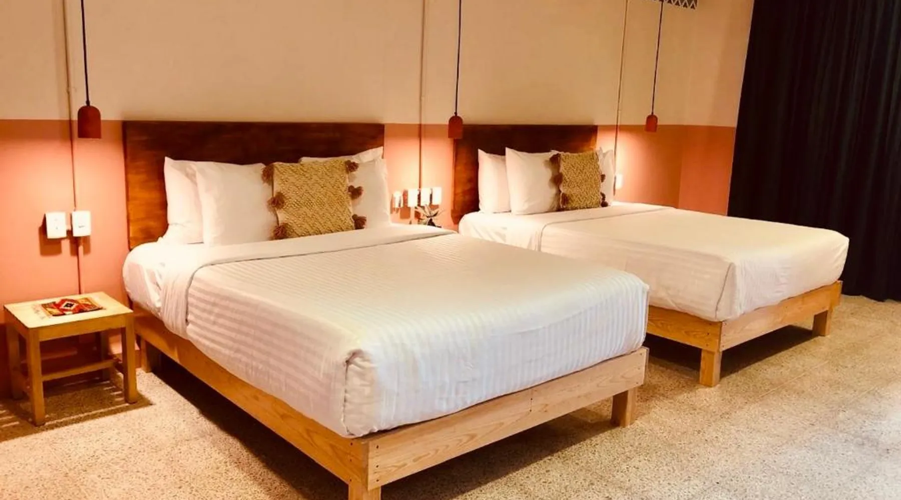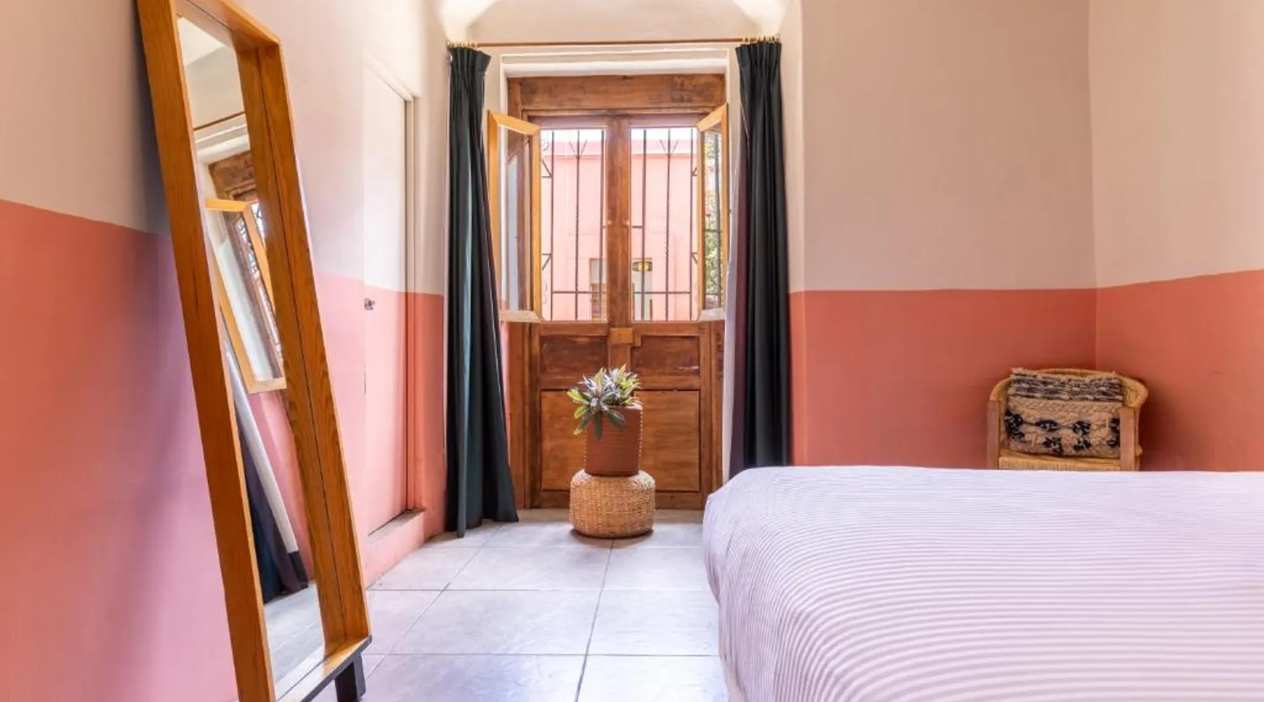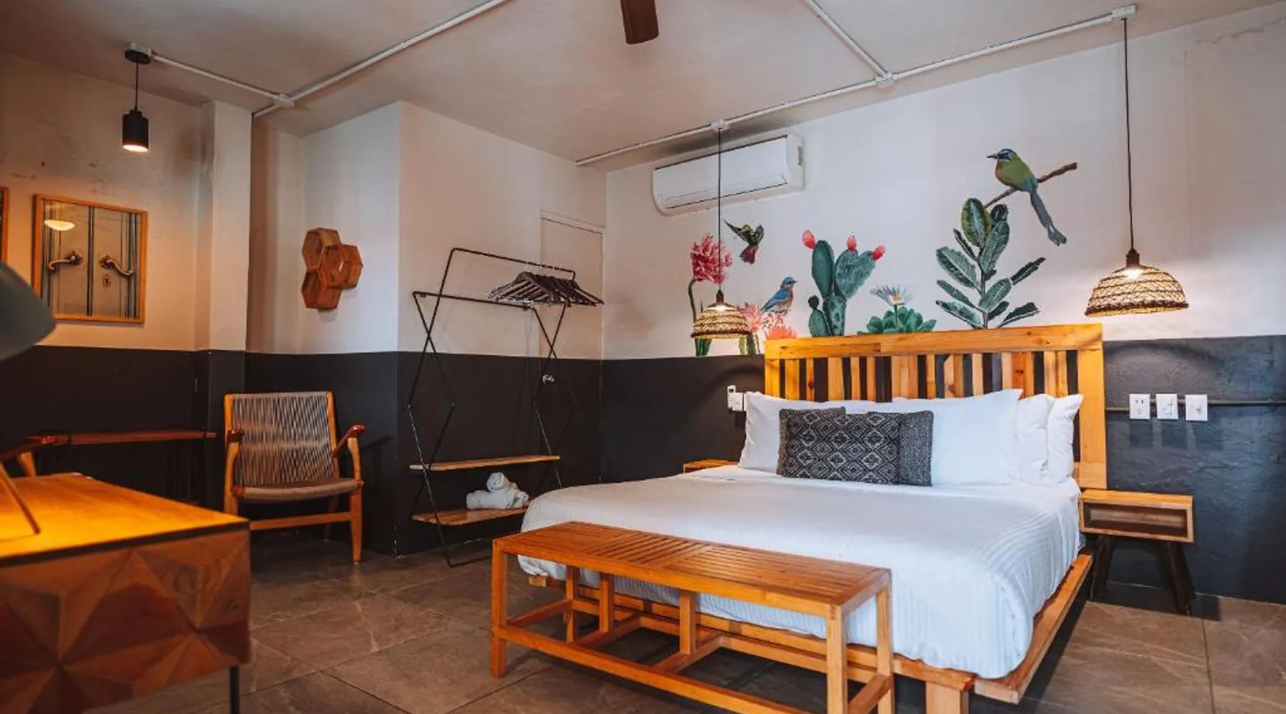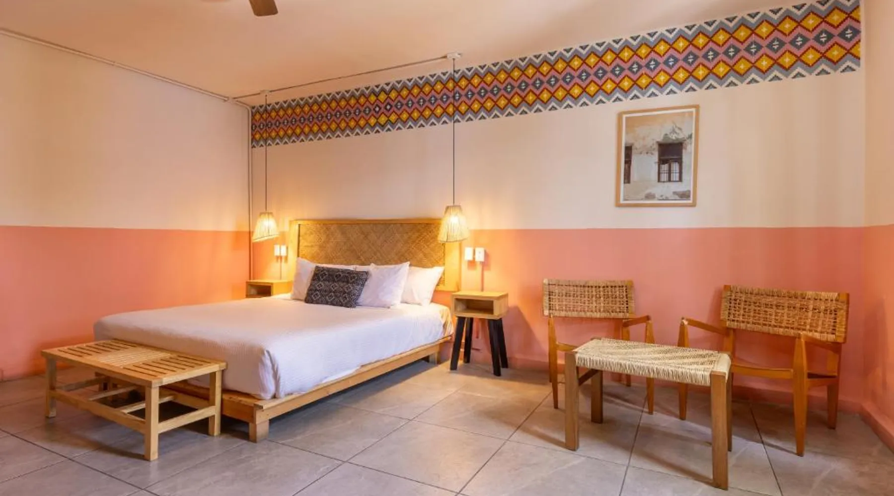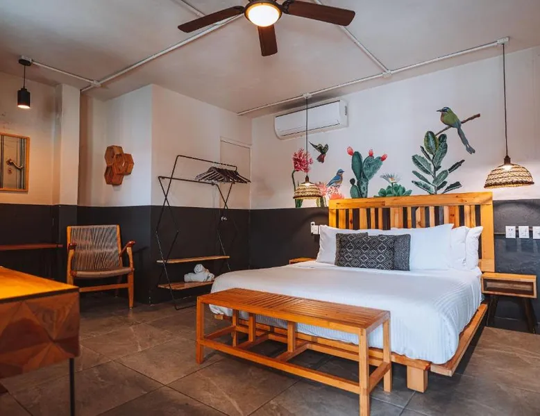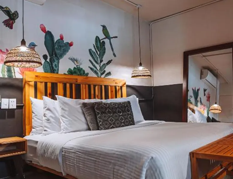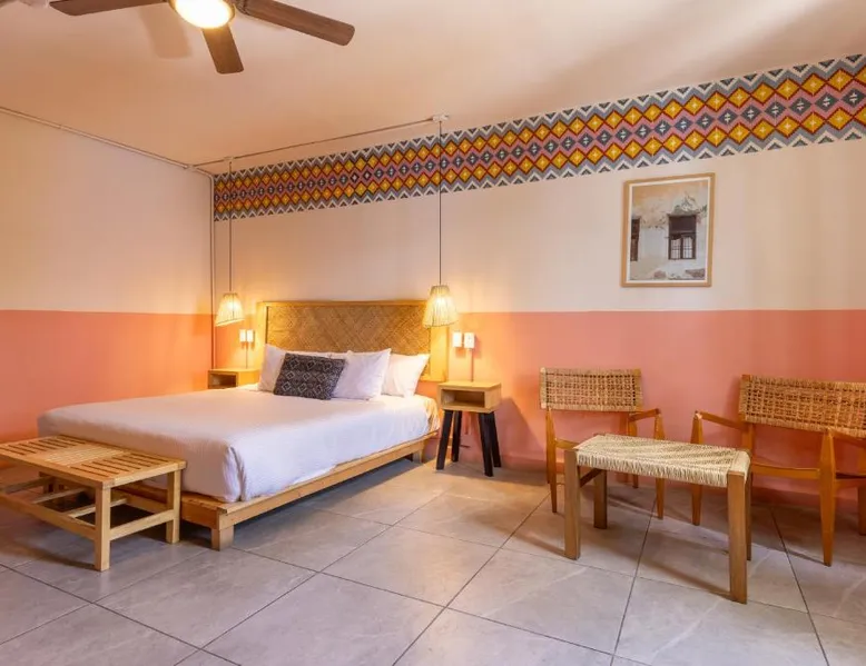 Comfortable Accommodations: Selina Oaxaca in Oaxaca City offers family rooms with air-conditioning, private bathrooms, and soundproofing. Each room includes a work desk, sofa, and free toiletries. Essential Facilities: Guests enjoy a bar and free WiFi. Additional amenities include a tour desk, live music, yoga classes, and luggage storage. Dining Options: A continental breakfast is available, including vegetarian and vegan options. Prime Location: Located 4.3 mi from Oaxaca International Airport, the hotel is an 8-minute walk from Oaxaca Cathedral and 1312 feet from Santo Domingo Temple. Nearby attractions include Monte Alban (5 mi) and Tule Tree (6.8 mi). The suite features 1 bedroom and 1 bathroom with a shower and free toiletries. The suite is furnished with a desk and a seating area and provides air conditioning and soundproof walls. The unit offers 1 bed.