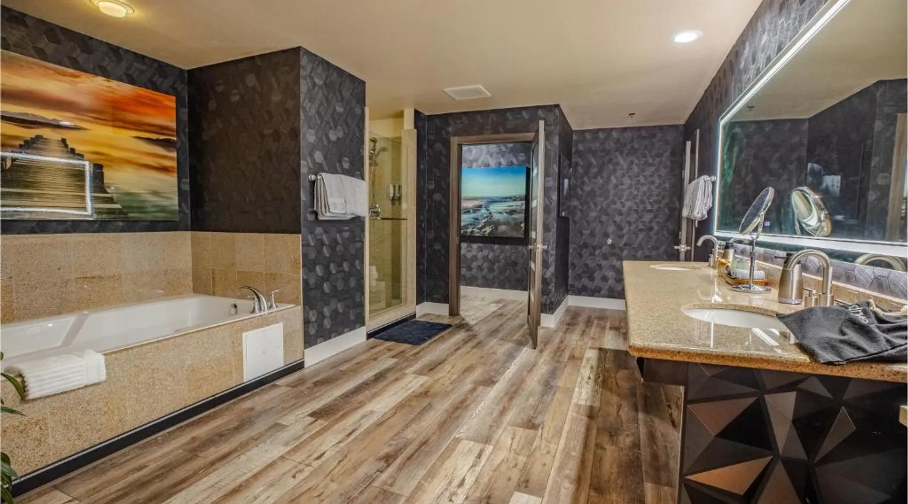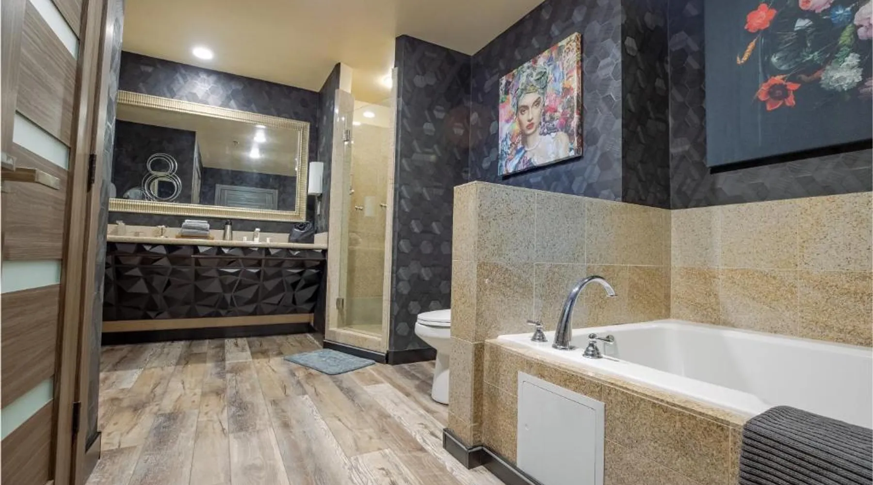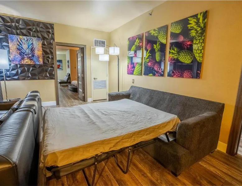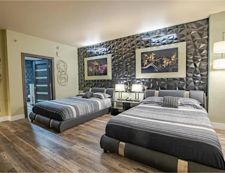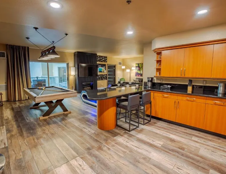 Prime Location: 2100 SqFt Penthouse Suite W/ Strip Views! POOL GYM is located in Las Vegas city center, 1.9 mi from Harry Reid International Airport. Nearby attractions include The Sphere Vegas (12-minute walk), Bellagio Fountains (15-minute walk), and The Shops At Crystals (1.2 mi). Exceptional Facilities: Guests enjoy a rooftop swimming pool, spa facilities, terrace, bar, and free WiFi. Additional amenities include an outdoor fireplace, beauty services, fitness room, hot tub, and 24-hour front desk. Comfortable Accommodations: The aparthotel offers family rooms with private balconies, fully equipped kitchens, and modern amenities. Free on-site parking and full-day security ensure a comfortable stay. Guest Satisfaction: Highly rated for its family-friendly environment and convenient location, the property is praised for its excellent service and comfortable accommodations. This suite features a pool with a view and a hot tub. Featuring a private entrance, this air-conditioned suite consists of 1 living room, 2 separate bedrooms and 2 bathrooms with a bath and a shower. Guests can make meals in the kitchen that comes with a stovetop, a refrigerator, a dishwasher and kitchenware. The spacious suite provides a washing machine, a tea and coffee maker, a seating area, a flat-screen TV with cable channels, as well as pool views. The unit offers 4 beds.