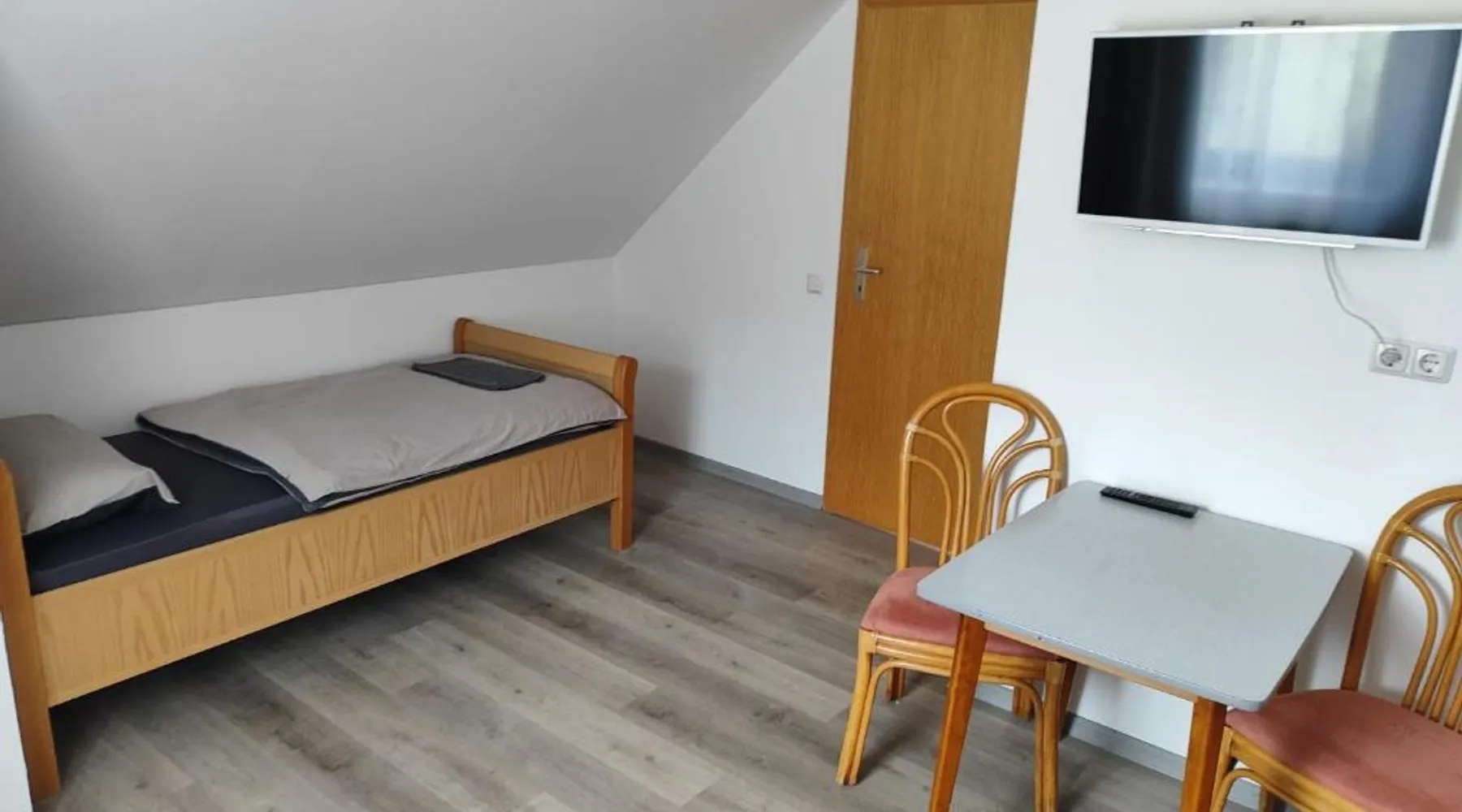 Comfortable Accommodations: Apartments zum stillen Winkel in Niederbreitbach offers family rooms with kitchenettes, private bathrooms, and free WiFi. Each unit includes a washing machine, dining area, and seating space. Convenient Facilities: Guests can enjoy bicycle parking, barbecue facilities, and free on-site private parking. Additional amenities include a walk-in shower, refrigerator, microwave, and TV. Local Attractions: Located 37 mi from Cologne Bonn Airport, the aparthotel is near attractions such as Löhr Center (21 mi), Castle Alte Burg Koblenz (21 mi), and Koblenz Theater (21 mi). Walking, bike, and hiking tours are available. Featuring a private entrance, this apartment also consists of 2 bedrooms, a seating area and 1 bathroom with a shower and a hairdryer. The fully equipped kitchen features a stovetop, a refrigerator, kitchenware and a microwave. The apartment provides a flat-screen TV, a dining area, an electric kettle and heating. The unit offers 4 beds.