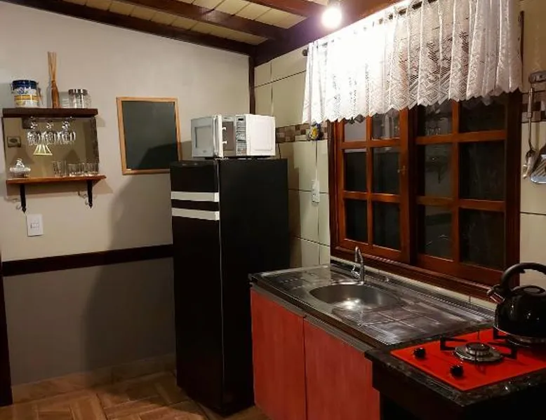 Comfortable Accommodations: Recanto Pôr do Sol in Nova Petrópolis offers a recently renovated apartment with a sun terrace, garden, and free WiFi. Guests enjoy air-conditioning, a kitchenette, balcony, and private bathroom. Exceptional Facilities: The property features a 24-hour front desk, housekeeping service, grocery delivery, outdoor seating area, picnic area, family rooms, full-day security, breakfast in the room, room service, and barbecue facilities. Prime Location: Located 19 mi from Canela Airport, the apartment is near attractions such as Imigrant Valley Park (6.8 mi), Malakoff Mount (3.1 mi), and Gramado Bus Station (14 mi). Guests appreciate the host, room cleanliness, and attentive staff. Featuring a private entrance, this air-conditioned chalet consists of 1 living room, 2 separate bedrooms and 1 bathroom with a shower and a bidet. Guests will find a stovetop, a refrigerator, kitchenware and a microwave in the fully equipped kitchen. The chalet also offers a barbecue. Boasting a terrace with lake views, this chalet also provides soundproof walls and a flat-screen TV with streaming services. The unit offers 3 beds.