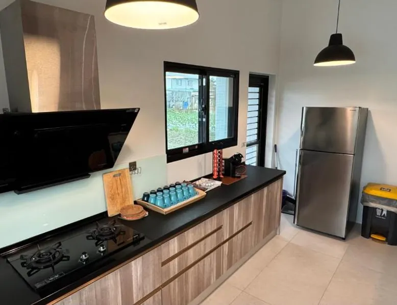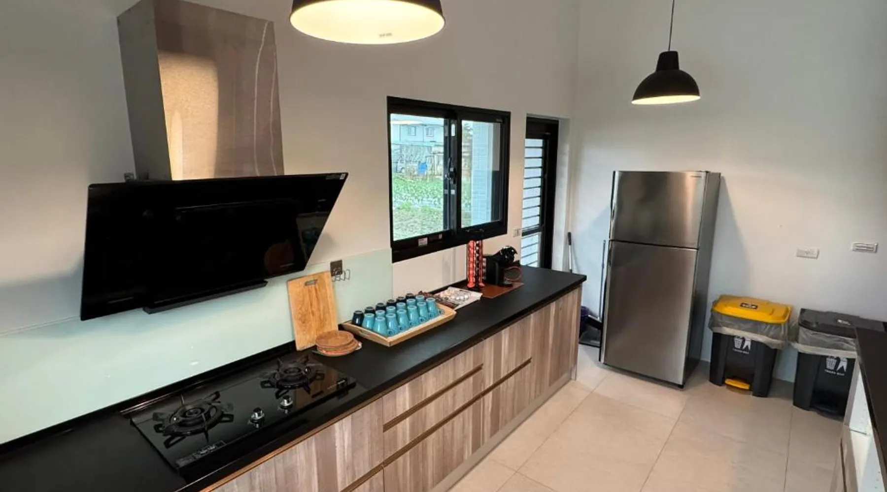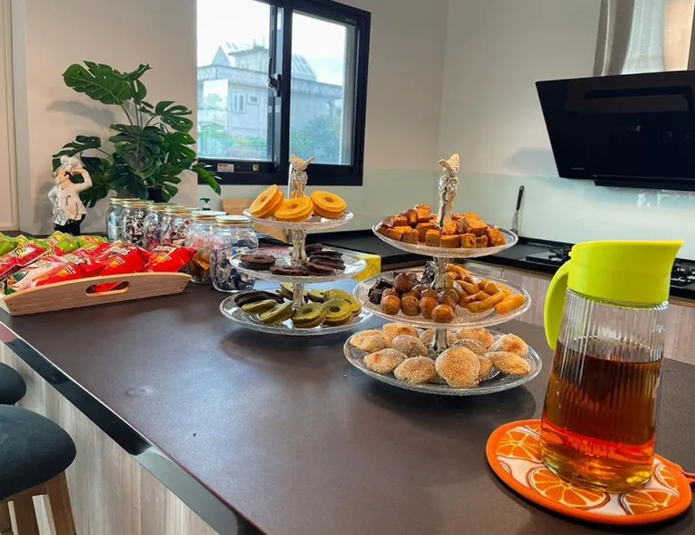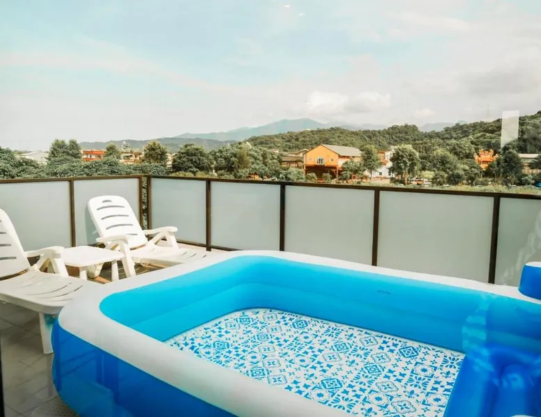 Comfortable Accommodations: The guest house offers family rooms with air-conditioning, private bathrooms, and balconies. Each room includes a TV, soundproofing, and tiled floors. Modern Facilities: Guests enjoy free WiFi, a terrace, and free bicycles. Additional amenities include a lounge, indoor play area, and karaoke. Convenient Services: The property provides a shuttle service, elevator, shared kitchen, and luggage storage. Free on-site private parking is available. Local Attractions: Located 41 mi from Taipei Songshan Airport, the guest house is near Luodong Railway Station (5 mi) and Jiaoxi Railway Station (16 mi). Hiking trails surround the area. This spacious apartment consists of 1 living room, 2 separate bedrooms and 2 bathrooms with a shower and a bidet. Guests will find a stovetop, a refrigerator, kitchenware and an oven in the well-equipped kitchen. The apartment also offers a barbecue. The air-conditioned apartment provides a flat-screen TV with streaming services, soundproof walls, a tea and coffee maker, a seating area as well as river views. The unit offers 4 beds.