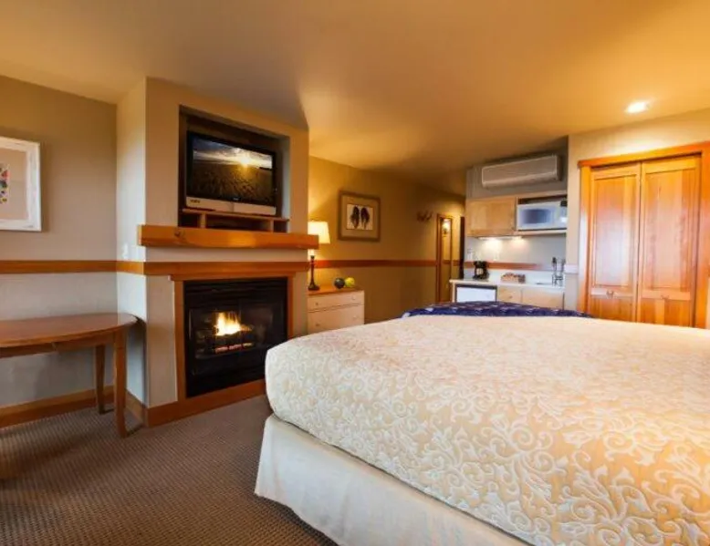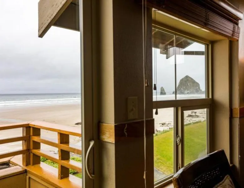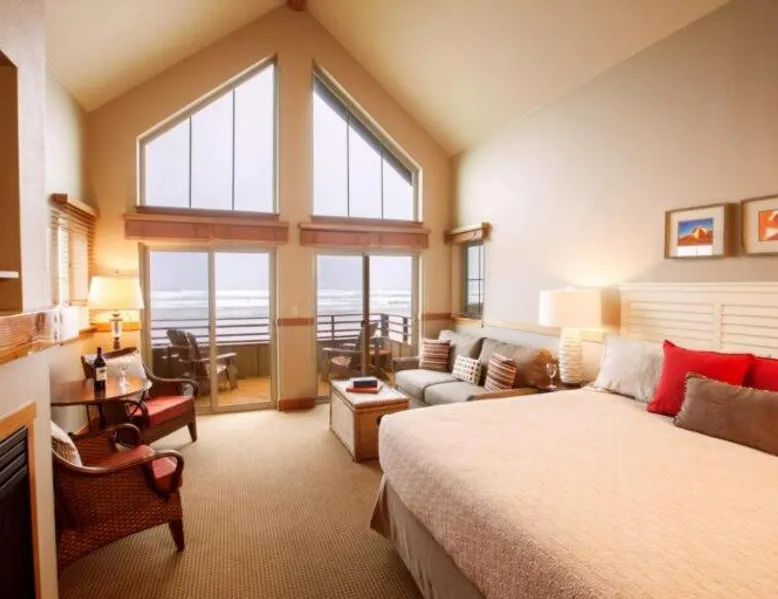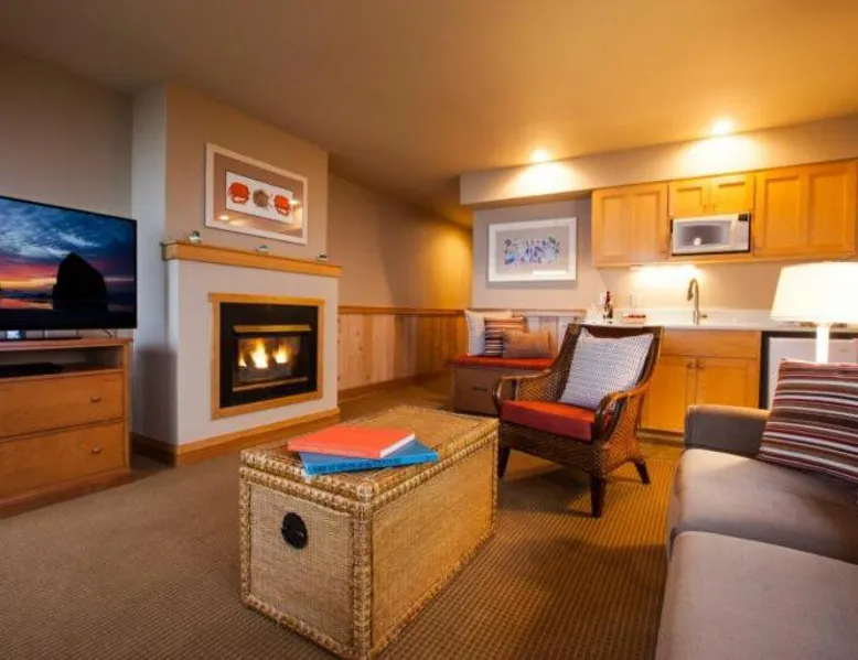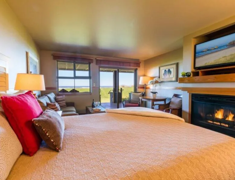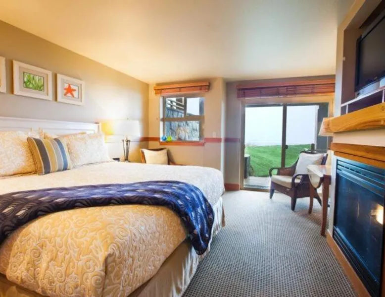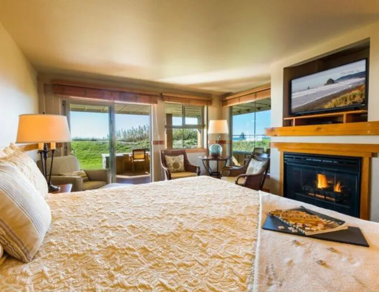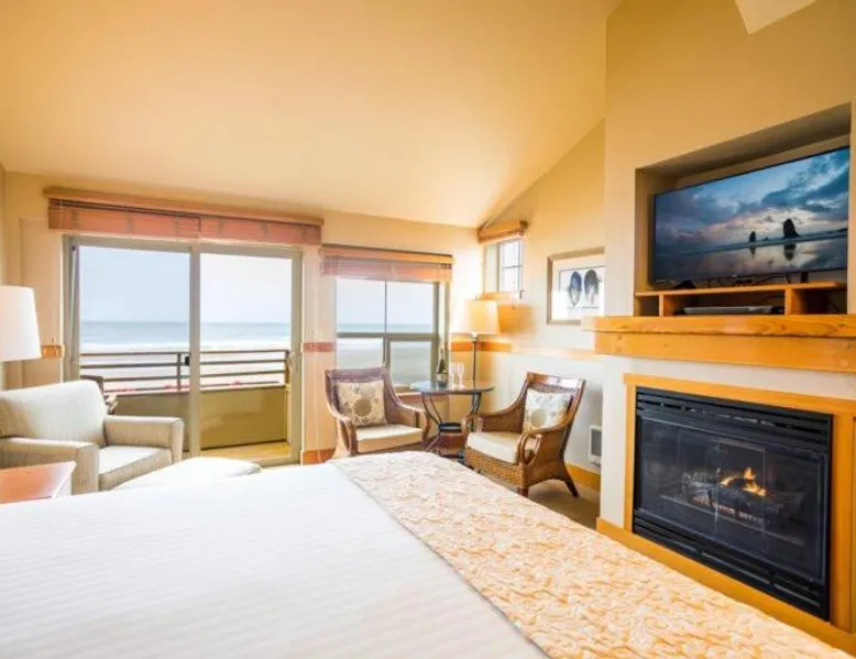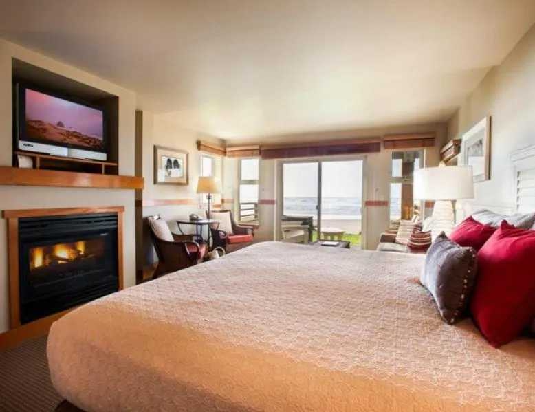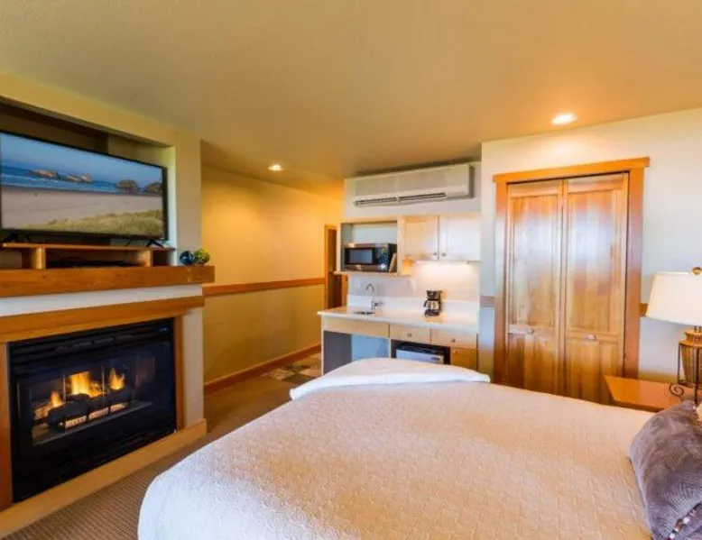 Overlooking the picturesque Oregon coast, The Ocean Lodge is a beachfront property located in Cannon Beach. Free WiFi access available throughout the lodge, and free coffee and cookies can be found 24/7 at the front desk. The warmly decorated rooms here come with a kitchenette, a balcony, and a cable flat-screen TV. A DVD player and a private bathroom are included in each room. Some rooms offer a spa bath, and select rooms have an ocean view. A complimentary continental breakfast is offered daily to guests, with an assortment of pastries, fruit, cereal, and more. Vending machines, a 24-hour front desk, and a daily maid service can all be found on site for added convenience. Guests also have access to a free DVD library. The Ocean Lodge is a 12-minute walk from Haystack Rock, 10 mi from Seaside Aquarium, and the Seaside Factory Outlet Mall is 15 minutes’ drive from the lodge. The fireplace is the standout feature of this studio. Featuring free toiletries and bathrobes, this studio includes a private bathroom with a walk-in shower, a bath and a hairdryer. The studio's kitchenette, which has a refrigerator and a microwave, is available for cooking and storing food. The air-conditioned studio features a flat-screen TV with cable channels, a tea and coffee maker, a wardrobe, a carpeted floor as well as sea views. The unit has 2 beds.