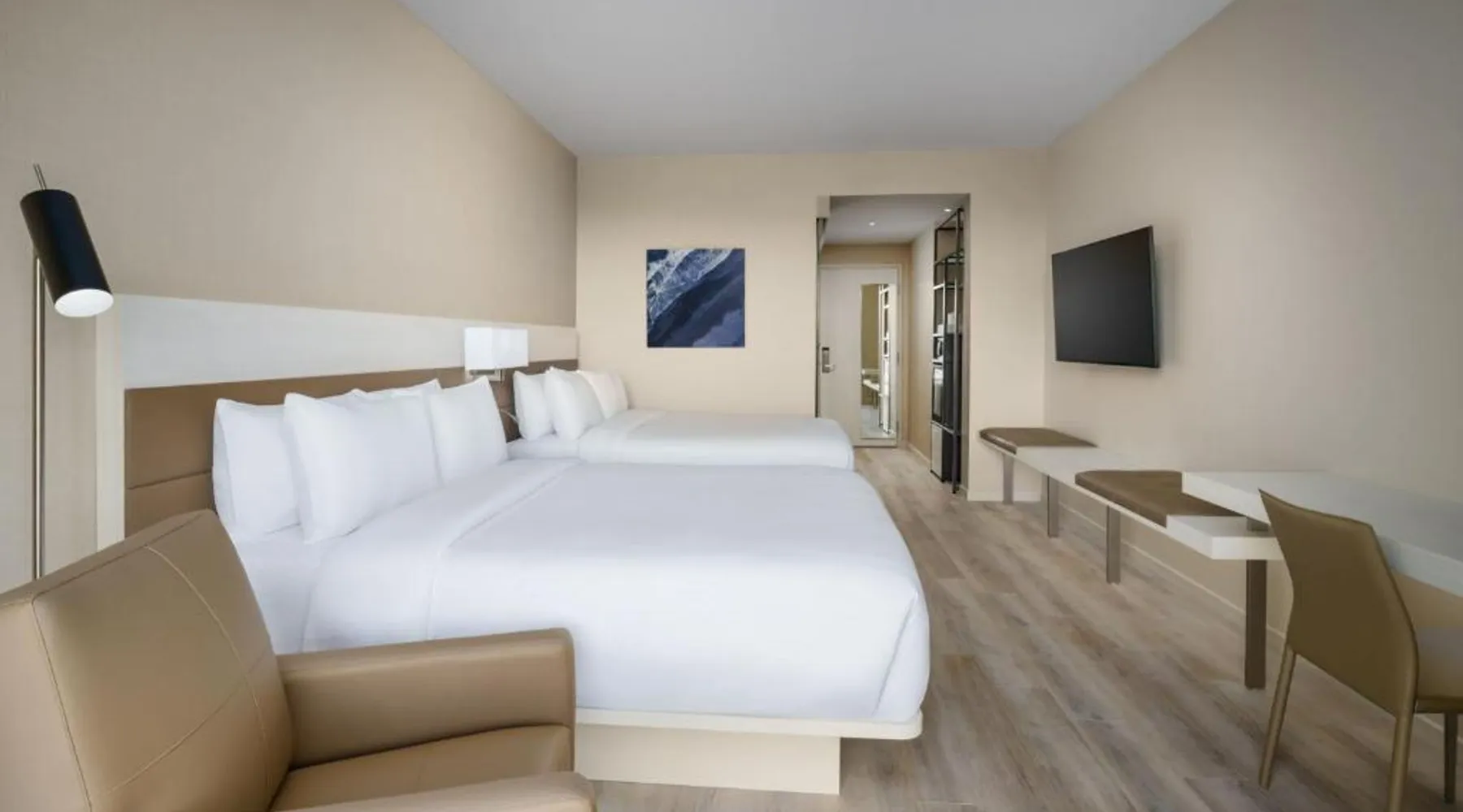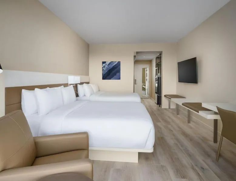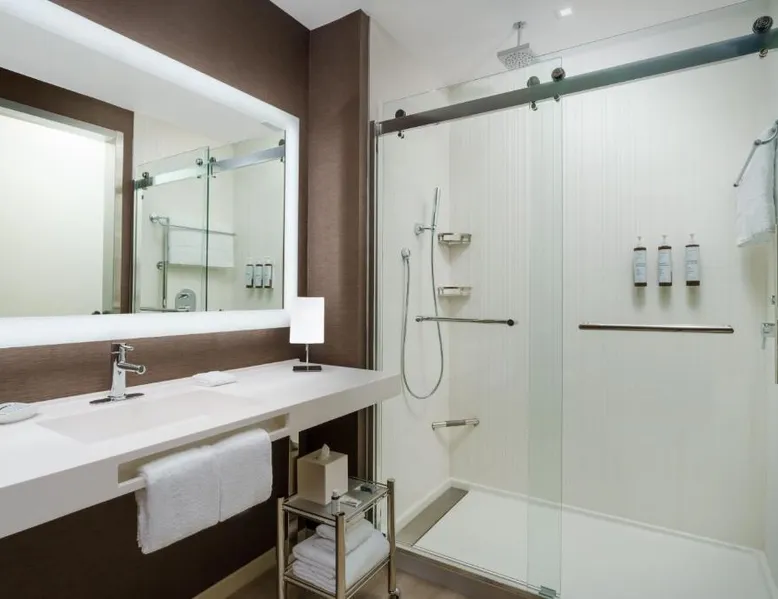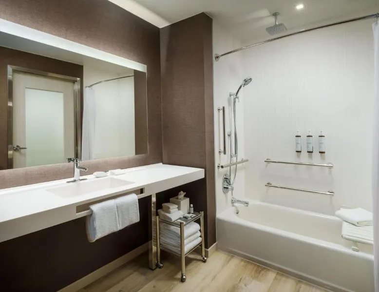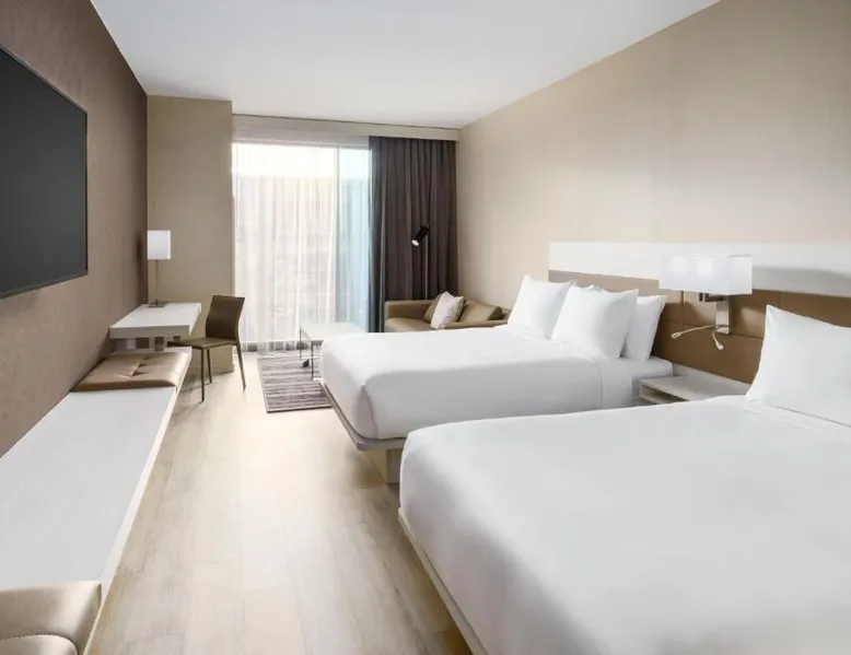Comfortable Accommodations: Rooms feature air-conditioning, private bathrooms, city views, and modern amenities including free WiFi, streaming services, and work desks. Exceptional Facilities: Guests enjoy a saltwater swimming pool, fitness center, terrace, restaurant, and bar. Additional facilities include a fitness room, 24-hour front desk, minimarket, and free on-site private parking. Dining Experience: The on-site restaurant serves European cuisine for dinner, complemented by a bar offering a variety of beverages. Prime Location: Located in Jacksonville, the hotel is 22 mi from Jacksonville International Airport and near attractions such as EverBank Field and Veterans Memorial Wall, each 9.9 mi away. Guests appreciate the convenient location, room cleanliness, and attentive staff. Providing free toiletries, this double room includes a private bathroom with a bath, a shower and a hairdryer. The spacious double room provides air conditioning, a tea and coffee maker, a wardrobe, a safe deposit box and a flat-screen TV with streaming services. The unit offers 2 beds.