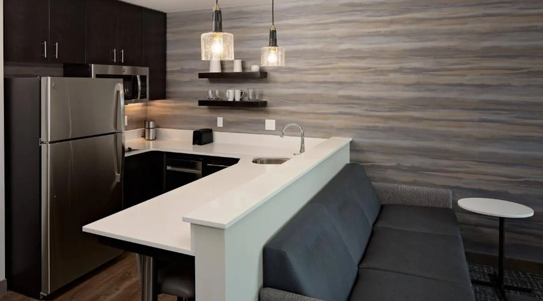Comfortable Accommodations: Residence Inn by Marriott Detroit Farmington Hills in Farmington Hills offers family rooms with air-conditioning, private bathrooms, and fully equipped kitchens. Each room includes a work desk, sofa bed, and free WiFi. Exceptional Facilities: Guests can enjoy a fitness center, sun terrace, indoor swimming pool, and outdoor fireplace. Additional amenities include a lounge, minimarket, grocery delivery, and electric vehicle charging station. Convenient Location: Located 30 mi from Detroit Metro Airport, the hotel is near attractions such as Royal Oak Music Theater (14 mi) and Detroit Golf Club (16 mi). Free on-site private parking is available. Guest Satisfaction: Guests appreciate the room cleanliness and excellent service. The air-conditioned suite features 1 bedroom and 1 bathroom with a bath or a shower and a hairdryer. Guests can make meals in the kitchen that is fitted with a stovetop, a refrigerator, a dishwasher and kitchenware. The suite has carpeted floors, a seating area with a flat-screen TV with cable channels, a tea and coffee maker, a dining area, as well as a sofa. The unit offers 2 beds.