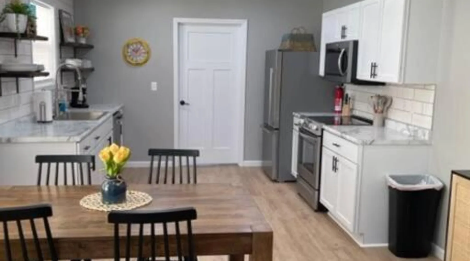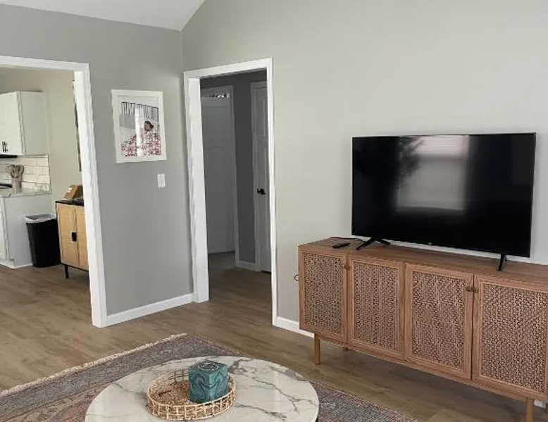 Comfortable Living: Birdie Mae in Hamilton offers a two-bedroom apartment with a fully equipped kitchen, dishwasher, washing machine, and air-conditioning. Guests enjoy free WiFi and a TV for entertainment. Convenient Location: Located 65 mi from Kansas City International Airport, the property is highly rated for its convenient location and room cleanliness. Reception staff speak English. Modern Amenities: The apartment includes free on-site private parking, ensuring convenience for all visitors. The apartment's kitchen, which has a dishwasher, is available for cooking and storing food. This apartment is air-conditioned and features a flat-screen TV, a washing machine and heating. The unit offers 3 beds.