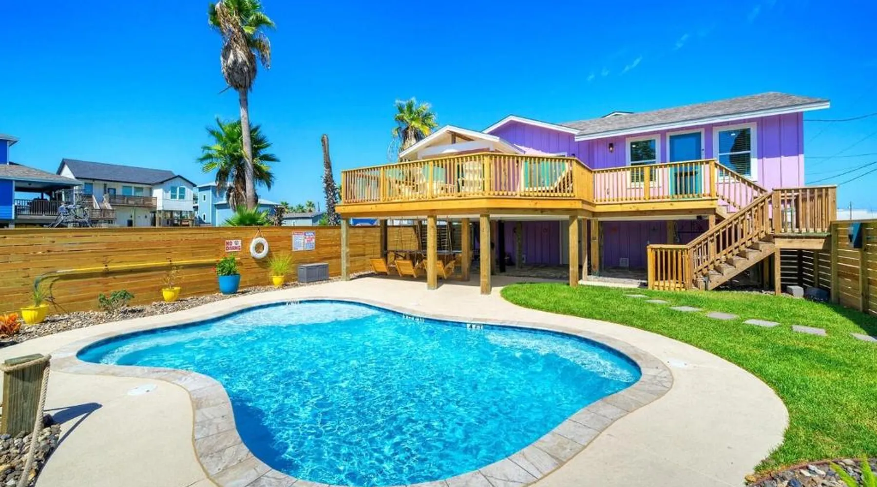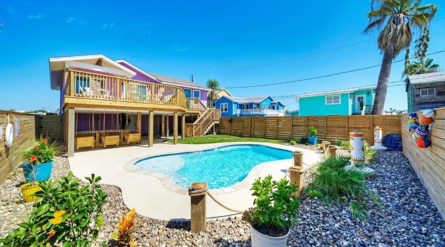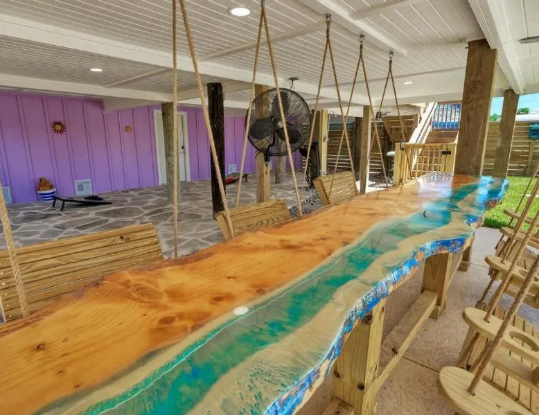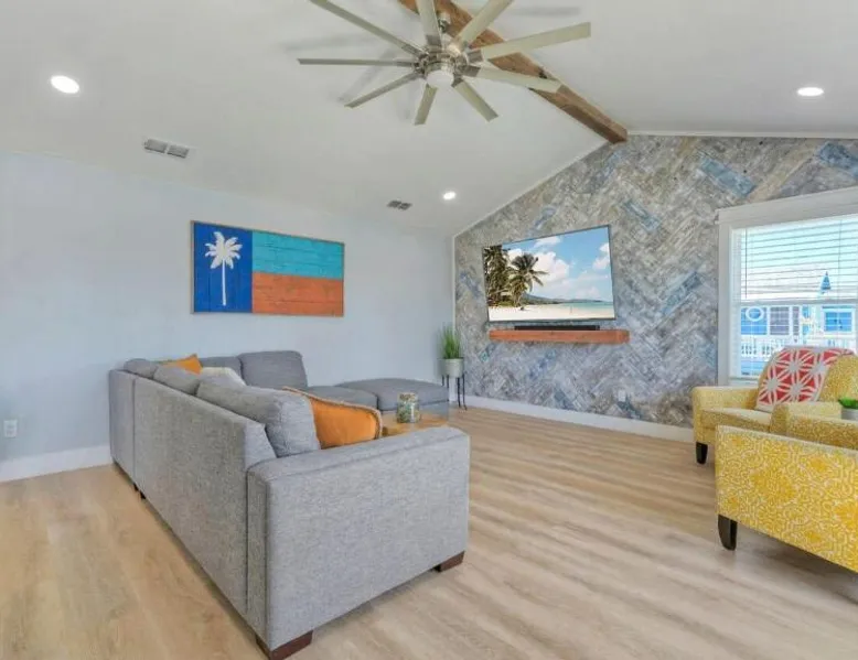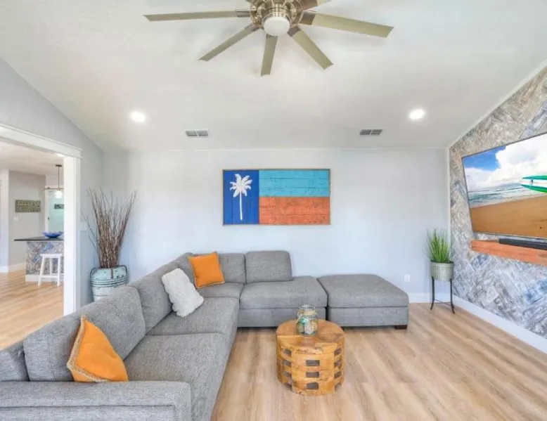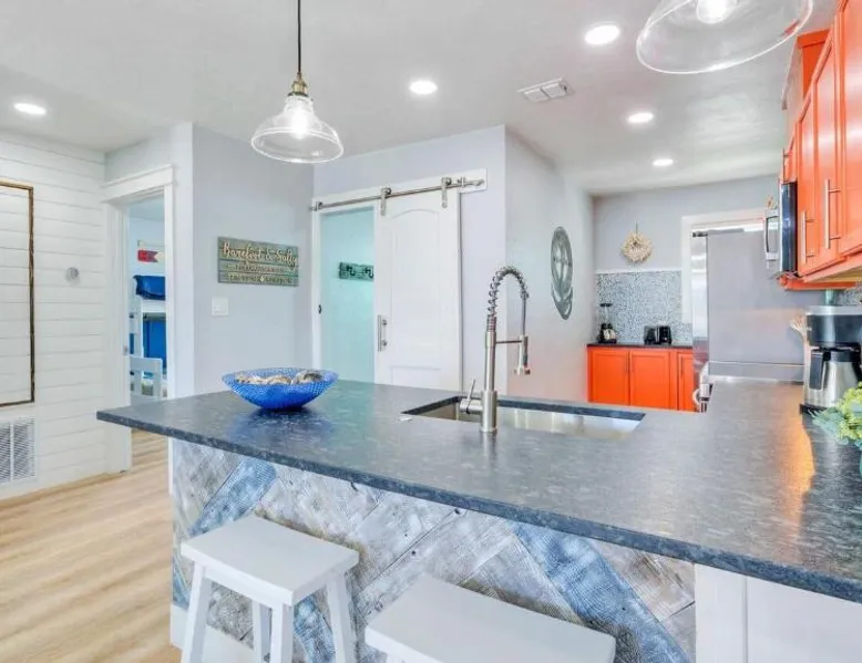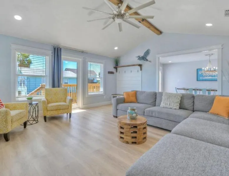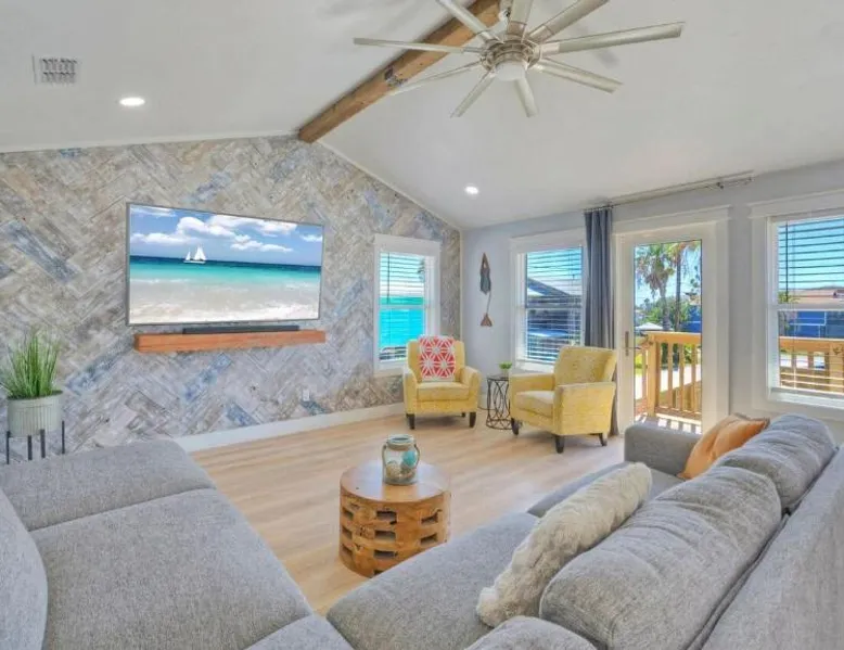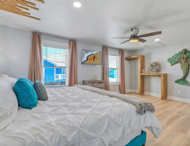 Elegant Accommodations: Barefoot Salty by AvantStay Private Pool in Port Aransas offers a holiday home with a terrace, outdoor swimming pool, and free WiFi. Guests enjoy free on-site private parking and a private entrance. Comfortable Amenities: The property features air-conditioning, a balcony, washing machine, patio, and a fully equipped kitchen with modern appliances. Additional amenities include a barbecue, tea and coffee maker, pool views, and a work desk. Prime Location: Located 1.2 mi from Port Aransas Beach and 39 mi from Corpus Christi International Airport, the holiday home is near attractions such as Port Aransas Marina and The University of Texas Marine Science Institute. Highly rated by guests. Guests will find a stovetop, a refrigerator, a dishwasher and kitchenware in the well-fitted kitchen. The holiday home also includes a barbecue. The holiday home features air conditioning, a washing machine, a terrace with pool views as well as a private bathroom boasting a bath.