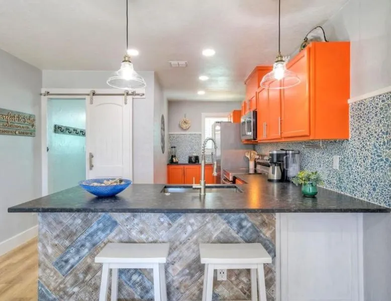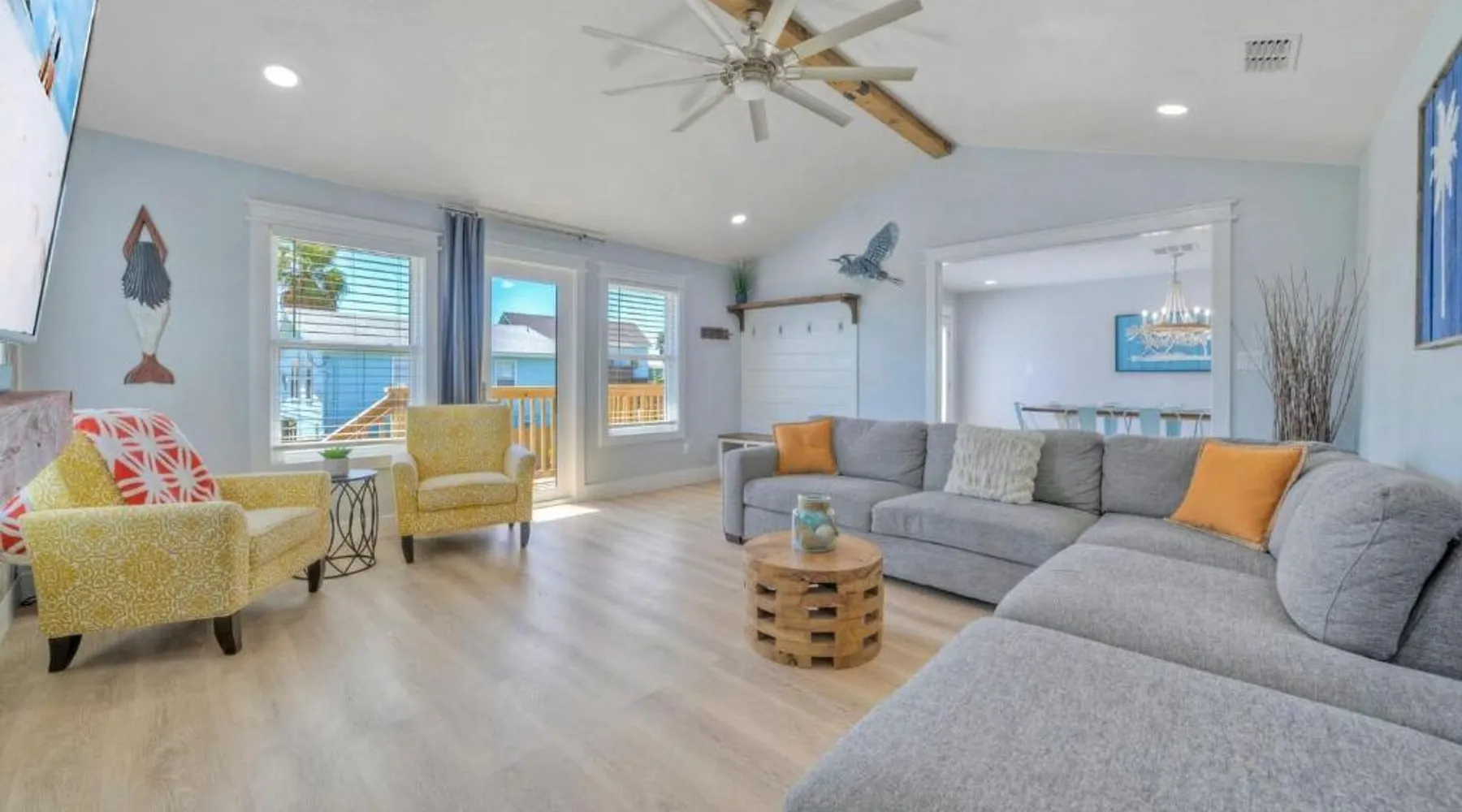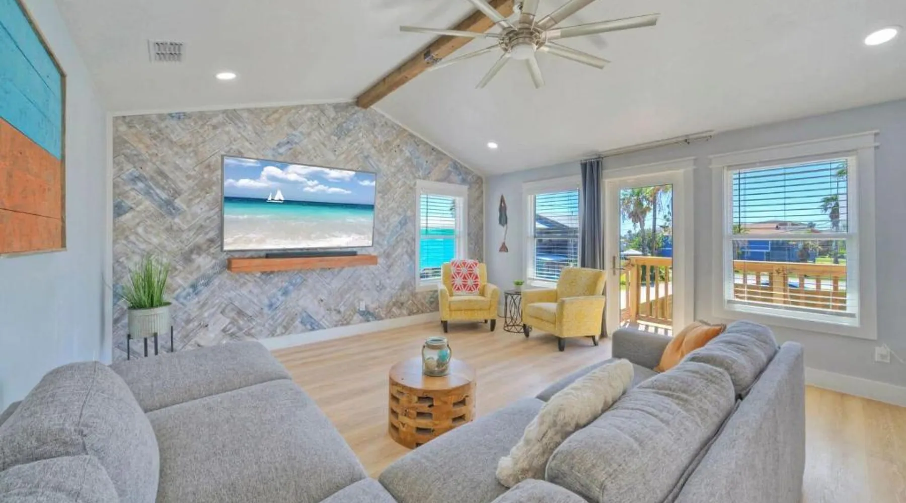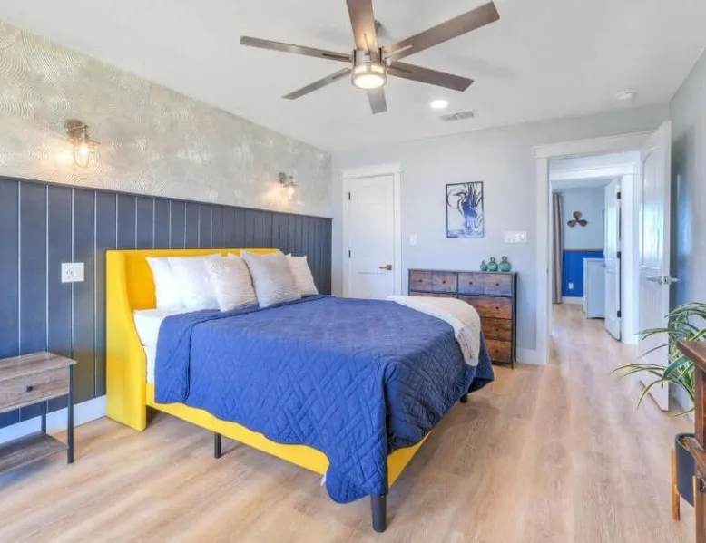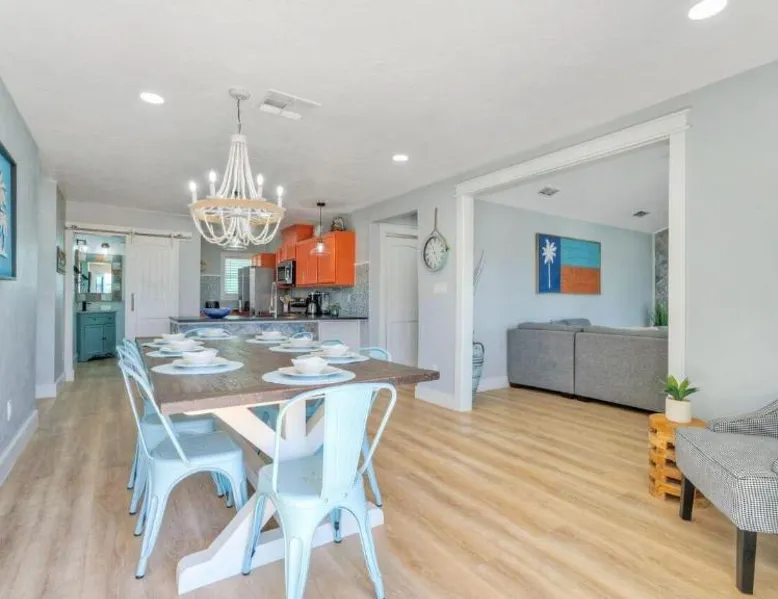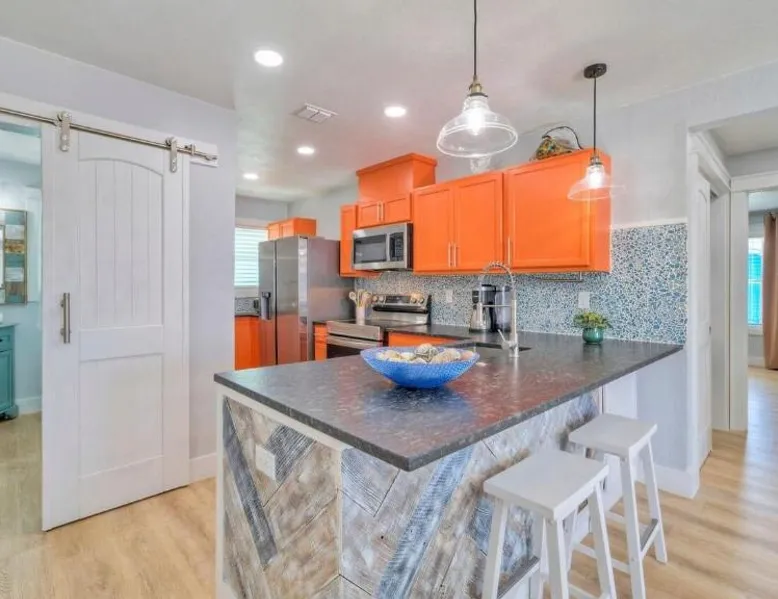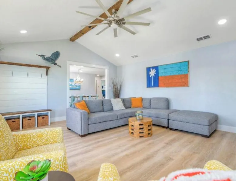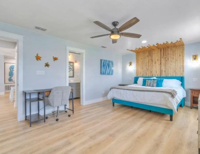 Elegant Accommodations: Barefoot Salty by AvantStay Private Pool in Port Aransas offers a holiday home with a terrace, outdoor swimming pool, and free WiFi. Guests enjoy free on-site private parking and a private entrance. Comfortable Amenities: The property features air-conditioning, a balcony, washing machine, patio, and a fully equipped kitchen with modern appliances. Additional amenities include a barbecue, tea and coffee maker, pool views, and a work desk. Prime Location: Located 1.2 mi from Port Aransas Beach and 39 mi from Corpus Christi International Airport, the holiday home is near attractions such as Port Aransas Marina and The University of Texas Marine Science Institute. Highly rated by guests. Guests will find a stovetop, a refrigerator, a dishwasher and kitchenware in the well-fitted kitchen. The holiday home also includes a barbecue. The holiday home features air conditioning, a washing machine, a terrace with pool views as well as a private bathroom boasting a bath.