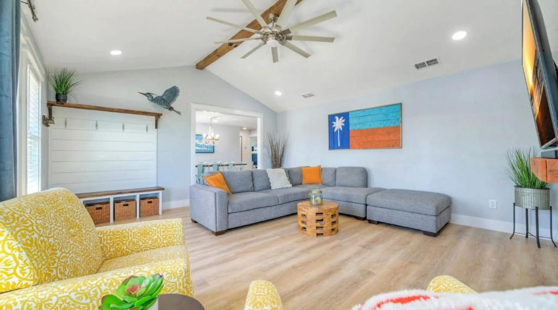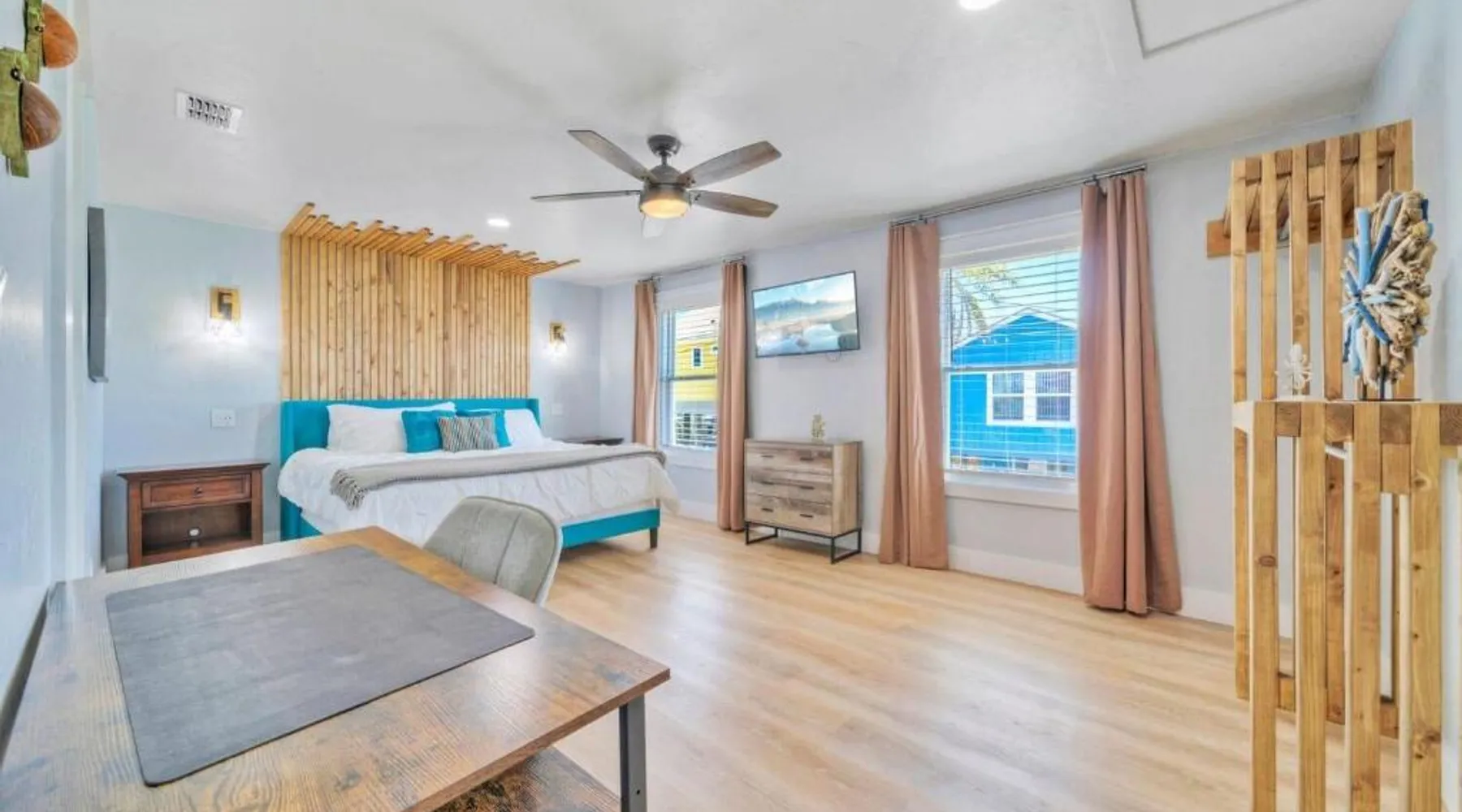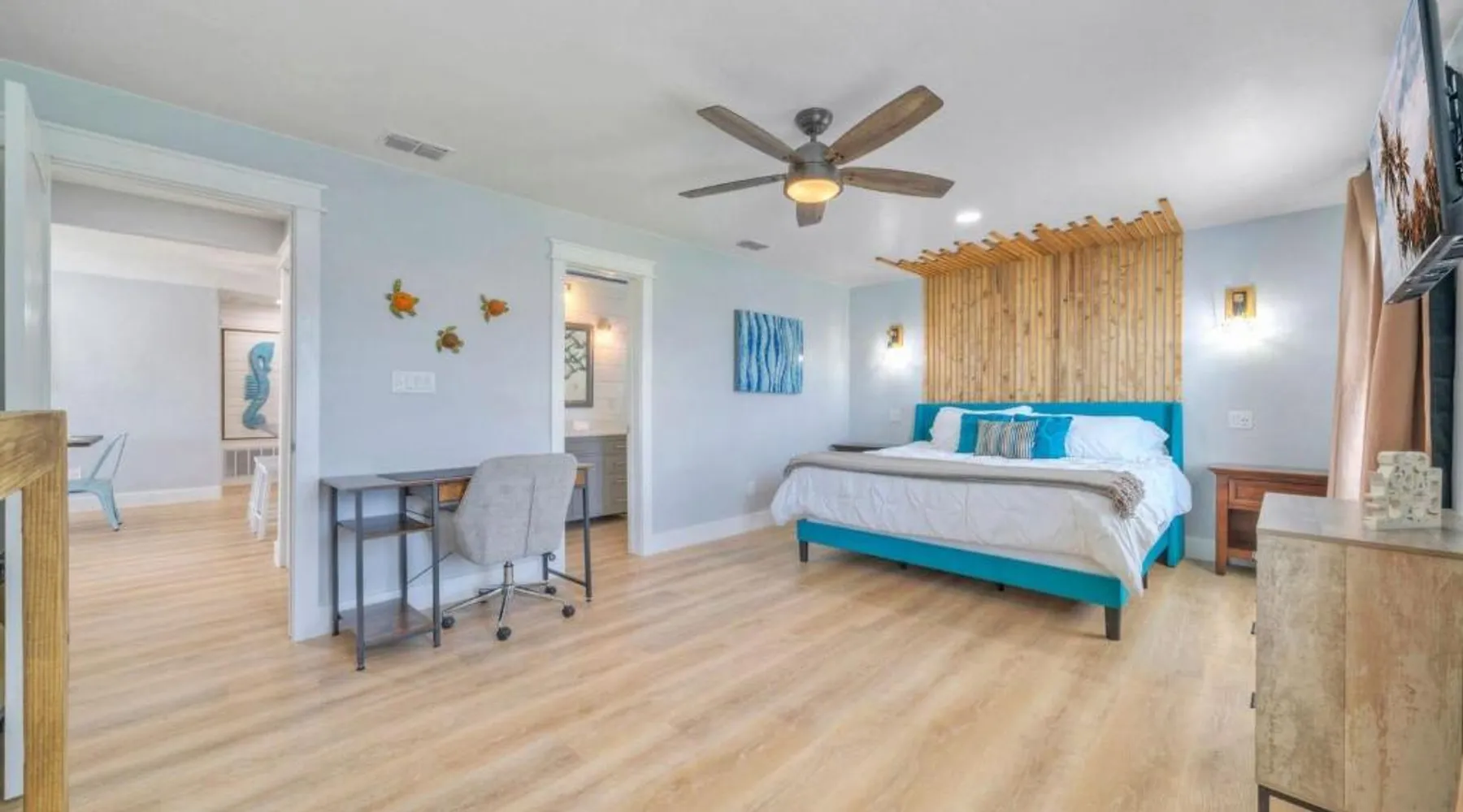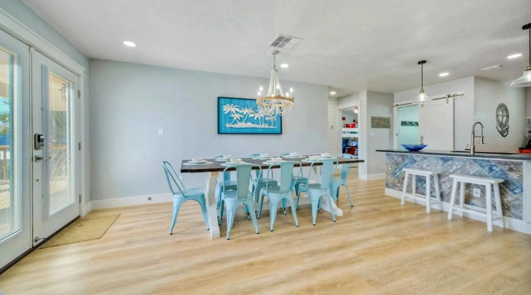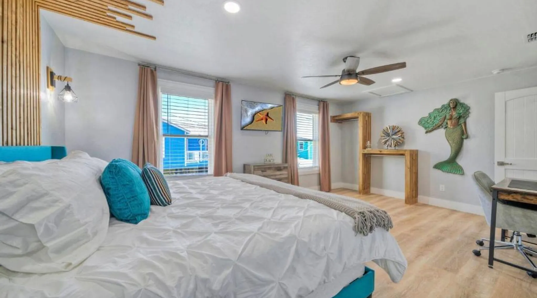 Elegant Accommodations: Barefoot Salty by AvantStay Private Pool in Port Aransas offers a holiday home with a terrace, outdoor swimming pool, and free WiFi. Guests enjoy free on-site private parking and a private entrance. Comfortable Amenities: The property features air-conditioning, a balcony, washing machine, patio, and a fully equipped kitchen with modern appliances. Additional amenities include a barbecue, tea and coffee maker, pool views, and a work desk. Prime Location: Located 1.2 mi from Port Aransas Beach and 39 mi from Corpus Christi International Airport, the holiday home is near attractions such as Port Aransas Marina and The University of Texas Marine Science Institute. Highly rated by guests. Guests will find a stovetop, a refrigerator, a dishwasher and kitchenware in the well-fitted kitchen. The holiday home also includes a barbecue. The holiday home features air conditioning, a washing machine, a terrace with pool views as well as a private bathroom boasting a bath.