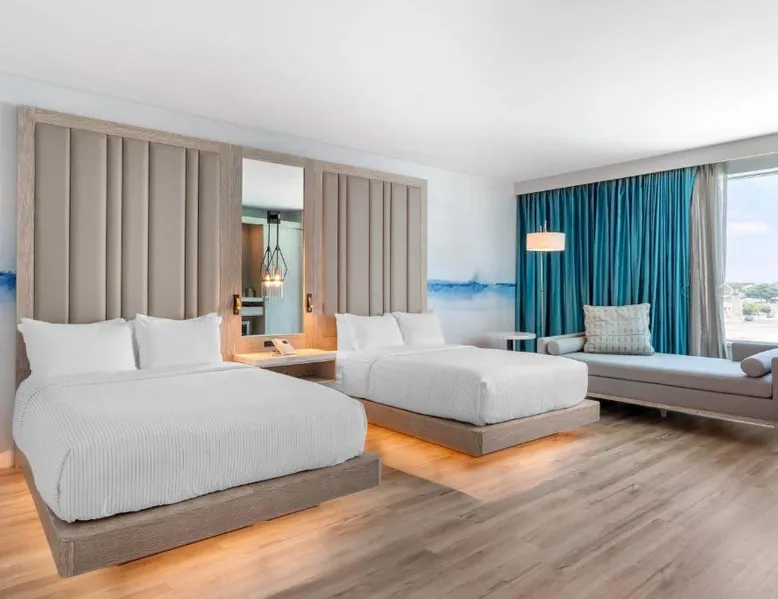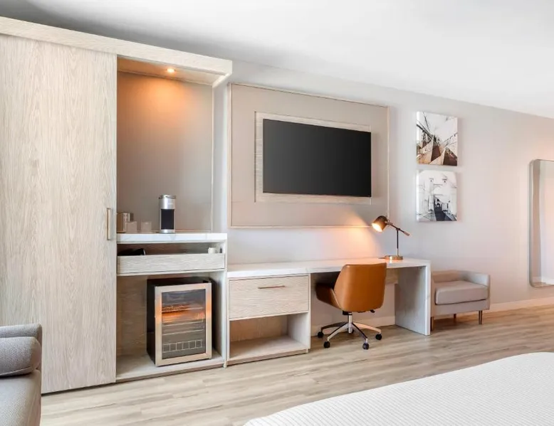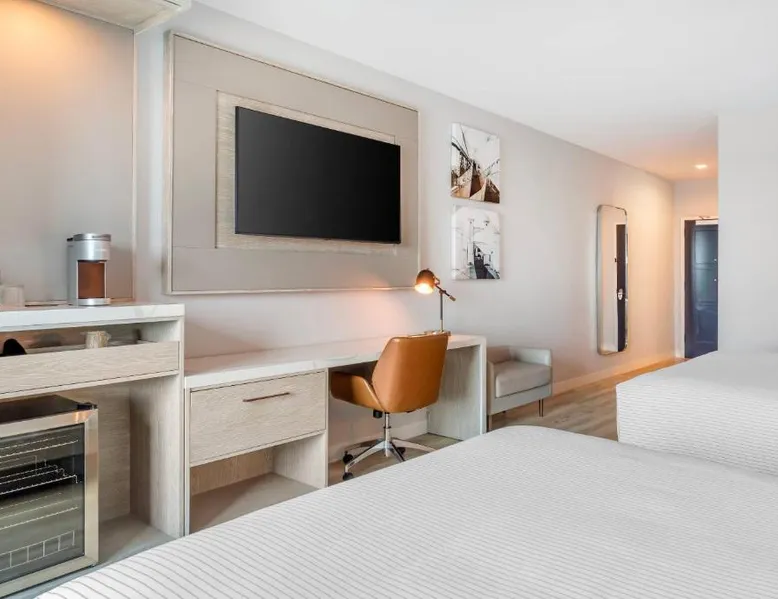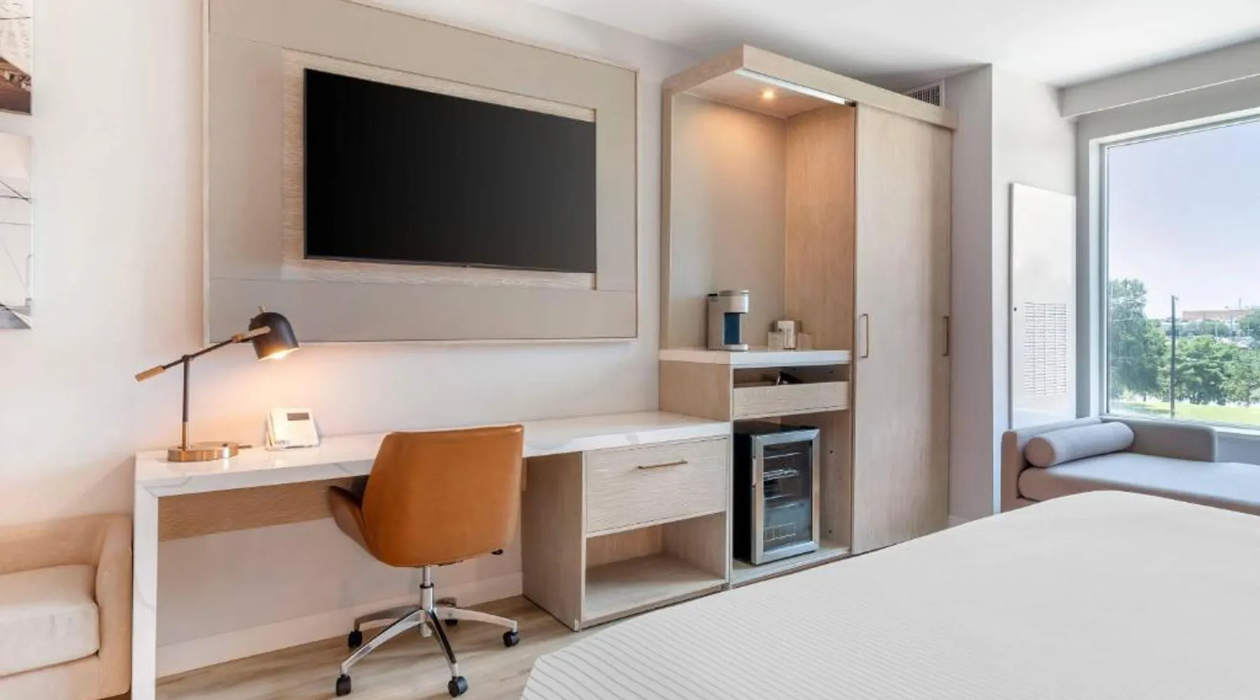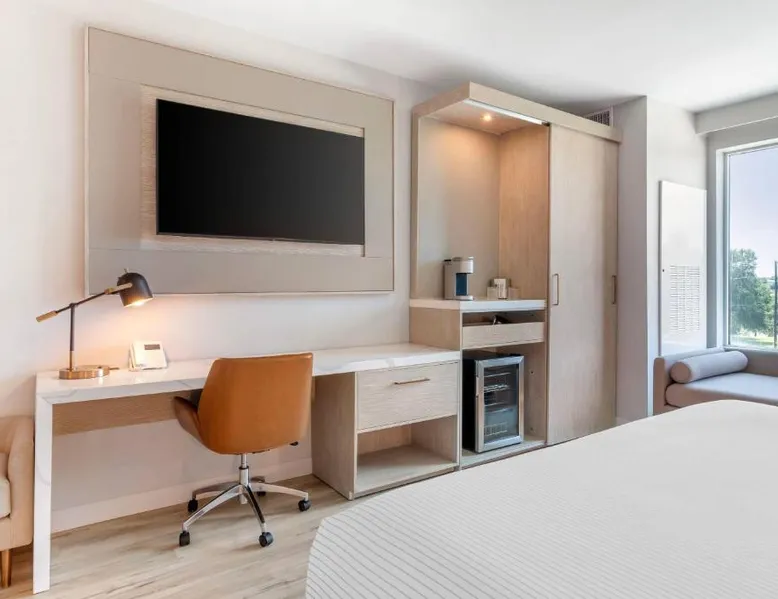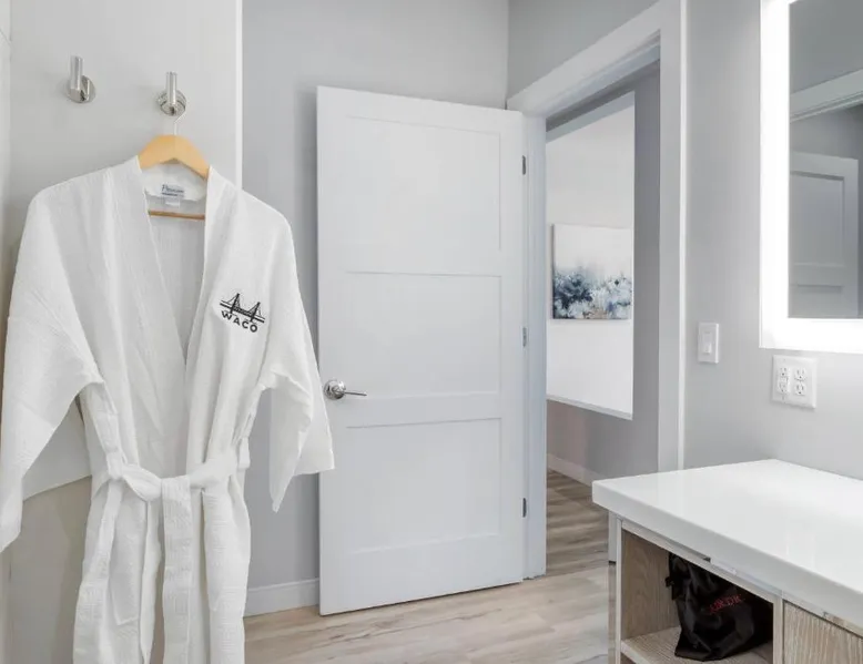 Comfortable Accommodations: Cambria Hotel Waco University Riverfront in Waco offers family rooms with kitchenettes, bathrobes, and free WiFi. Each room includes a work desk, mini-bar, and seating area. Dining and Leisure: Guests can enjoy an à la carte breakfast, lunch, and dinner at the on-site restaurant serving American cuisine. The hotel features a fitness center, seasonal outdoor swimming pool, and bar. Convenient Location: Located 7.5 mi from Waco Regional Airport, the hotel is a 7-minute walk from Waco Convention Center and 1.1 mi from McLane Stadium. Nearby attractions include the Texas Ranger Hall Of Fame And Museum and Studio Gallery. Guest Services: The hotel offers a fitness room, 24-hour front desk, minimarket, daily housekeeping, business area, outdoor seating, live music, and room service. Free on-site private parking is available. The suite's kitchenette, which features a refrigerator and a microwave, is available for cooking and storing food. The suite is furnished with a desk and a seating area and offers a mini-bar and a tea and coffee maker. The unit offers 1 bed.