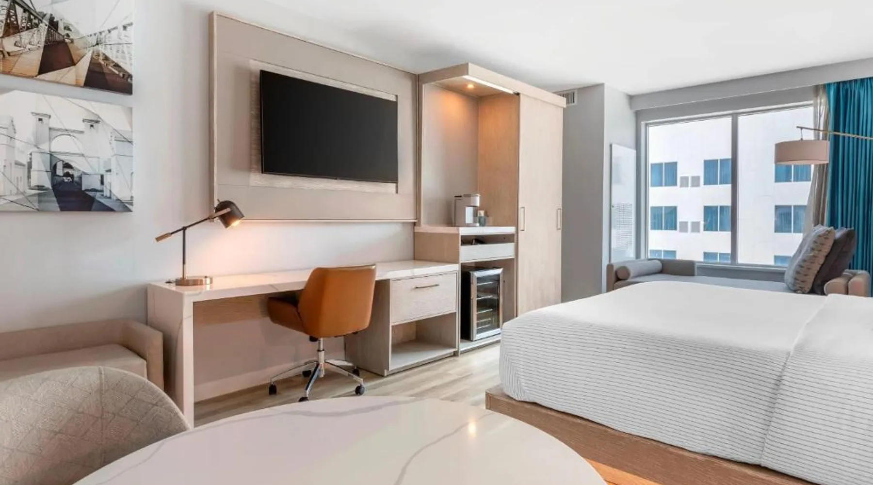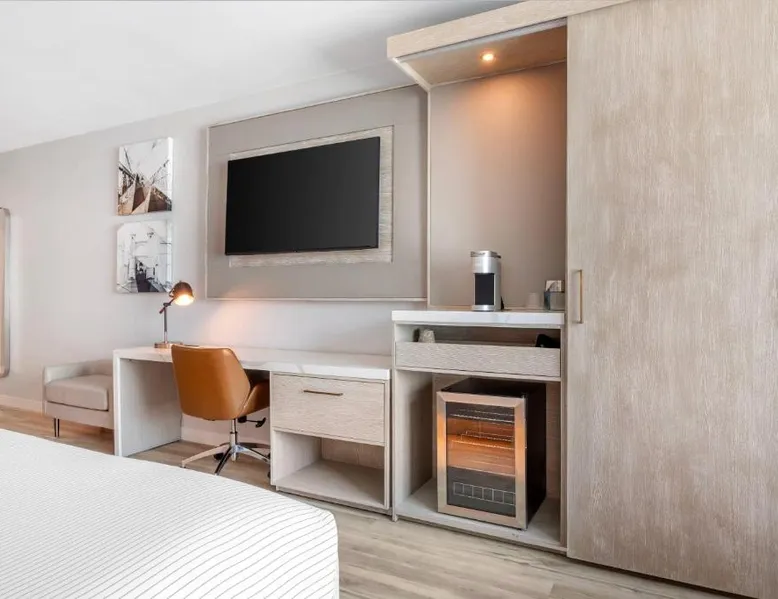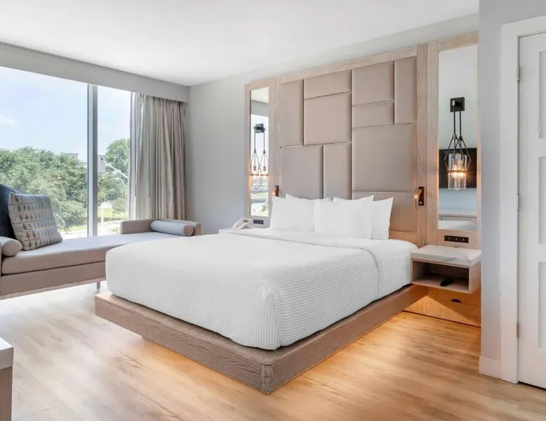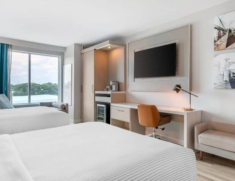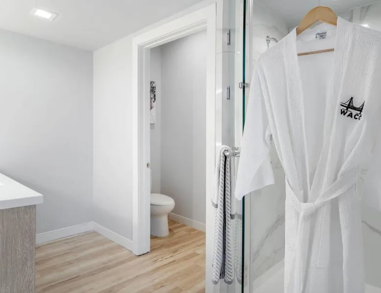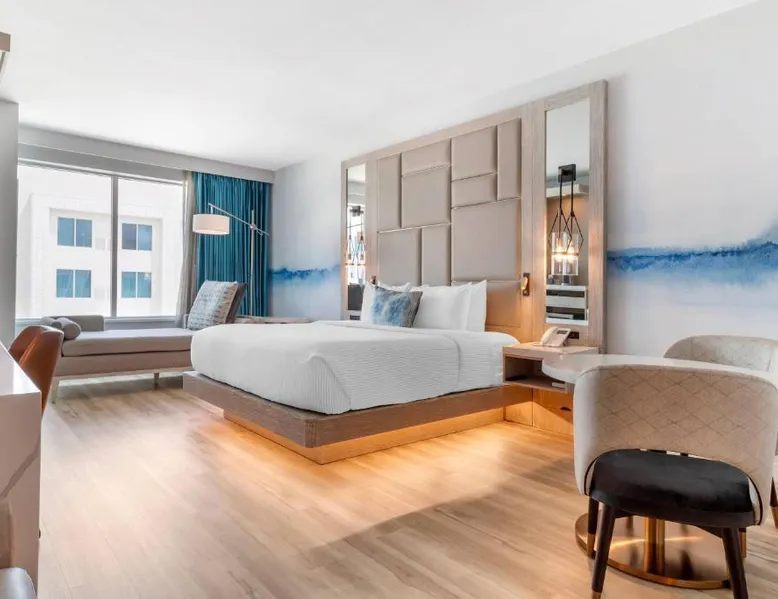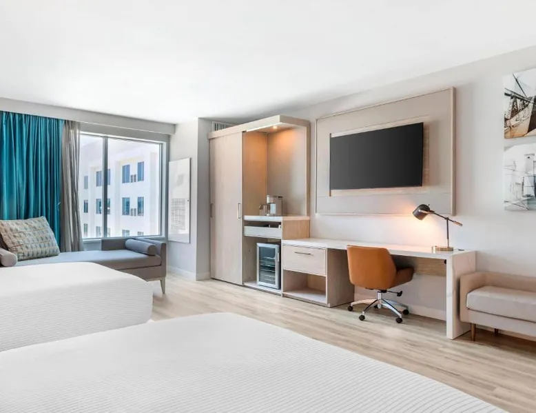 Comfortable Accommodations: Cambria Hotel Waco University Riverfront in Waco offers family rooms with kitchenettes, bathrobes, and free WiFi. Each room includes a work desk, mini-bar, and seating area. Dining and Leisure: Guests can enjoy an à la carte breakfast, lunch, and dinner at the on-site restaurant serving American cuisine. The hotel features a fitness center, seasonal outdoor swimming pool, and bar. Convenient Location: Located 7.5 mi from Waco Regional Airport, the hotel is a 7-minute walk from Waco Convention Center and 1.1 mi from McLane Stadium. Nearby attractions include the Texas Ranger Hall Of Fame And Museum and Studio Gallery. Guest Services: The hotel offers a fitness room, 24-hour front desk, minimarket, daily housekeeping, business area, outdoor seating, live music, and room service. Free on-site private parking is available. The suite's kitchenette, which features a refrigerator and a microwave, is available for cooking and storing food. The suite is furnished with a desk and a seating area and offers a mini-bar and a tea and coffee maker. The unit offers 1 bed.