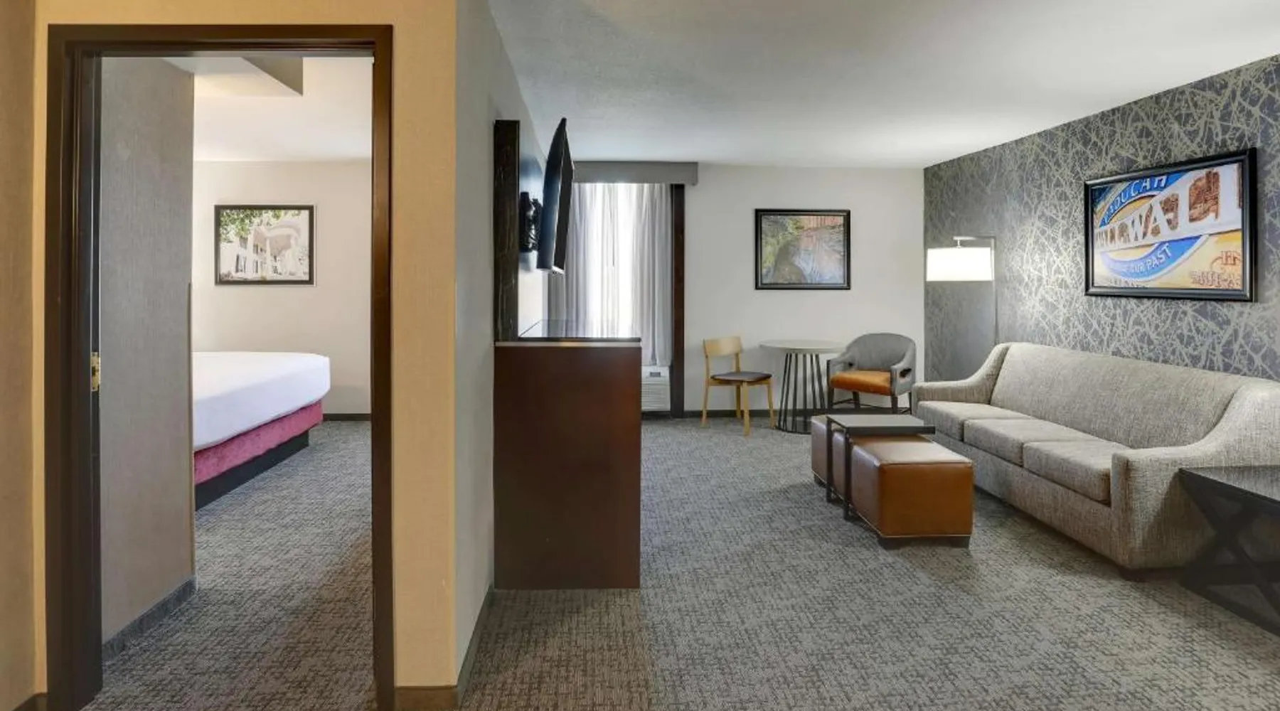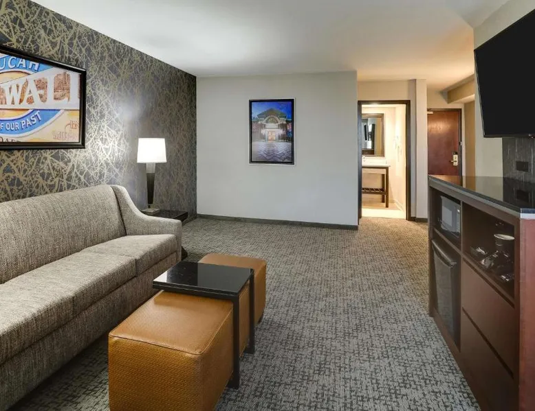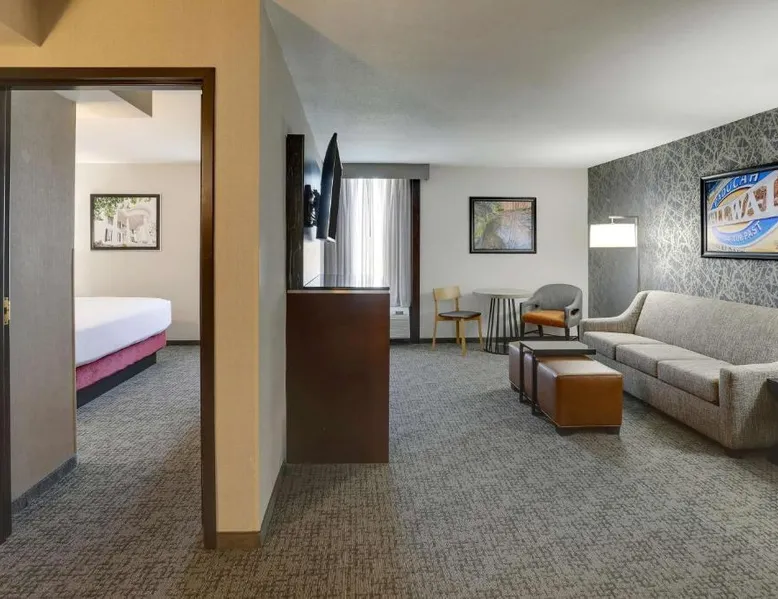Conveniently located at the intersection of Interstate 24 and US 60, this hotel is located just 5 miles outside of downtown Paducah and features free hot breakfast, complimentary evening food buffet and free popcorn and soda. Free WiFi access is available. Every room at Drury Inn Paducah provides a flat-screen LCD TV, microwave and small refrigerator. Suites also offer a separate living room area with a sofa bed. An indoor pool, 24-hour fitness center and 24-hour business center are offered at the hotel. An on-site snack shop and laundry facilities are also available for guest convenience. The property offers free parking. The National Quilt Museum and LowerTown Arts District are both 5 miles away. The hotel is less than a mile away from Kentucky Oaks Mall and a 5-minute drive away from Bluegrass Downs Quarterhorse Racetrack. The spacious double room features air conditioning, a coffee machine, as well as a private bathroom boasting a bath or a shower and a hairdryer. The double room provides a seating area, a wardrobe, a sofa, heating and a TV with cable channels. The unit has 2 beds.