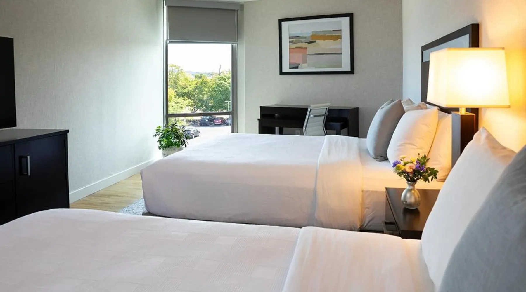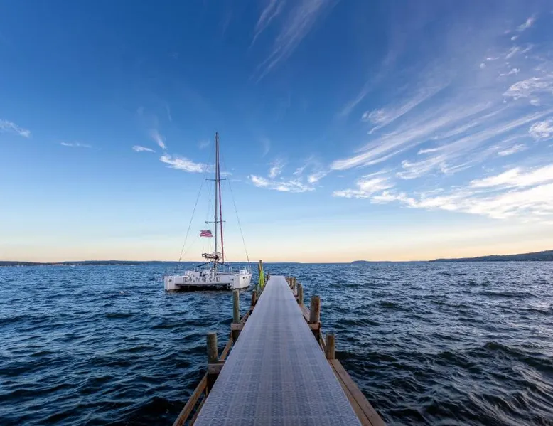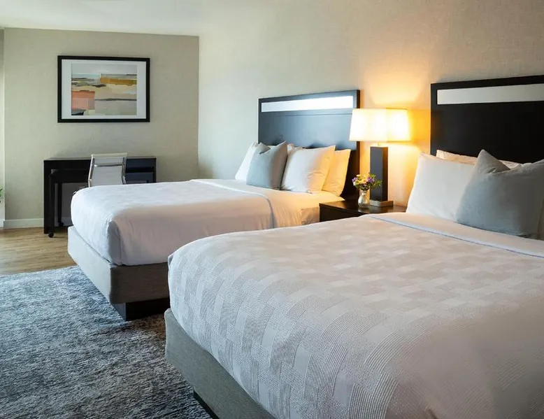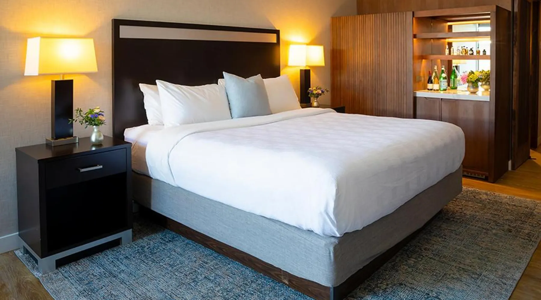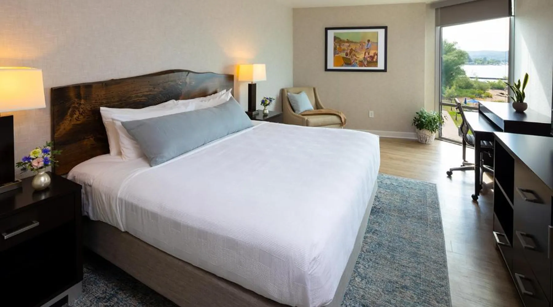 Beachfront Location: Delamar Traverse City in Traverse City offers a private beach area and beachfront access. Guests can relax by the year-round outdoor swimming pool or indoor pool, enjoy the sauna, and stay active in the fitness center. Comfortable Accommodations: Rooms feature private balconies, free WiFi, and modern amenities such as flat-screen TVs and mini-bars. Additional facilities include a hot tub, fitness room, and electric vehicle charging station. Dining Experience: The family-friendly restaurant serves American cuisine with kosher, vegetarian, vegan, gluten-free, and dairy-free options. Breakfast includes continental, American, and à la carte selections. Live music enhances the dining experience. Nearby Attractions: Sunset Park Beach is just a few steps away, while Clinch Park is a 13-minute walk. Other points of interest include Dennos Museum Center (1.3 mi) and Great Wolf Lodge Traverse City (3.7 mi). Cherry Capital Airport is 1.9 mi from the hotel. The unit has 2 beds.
