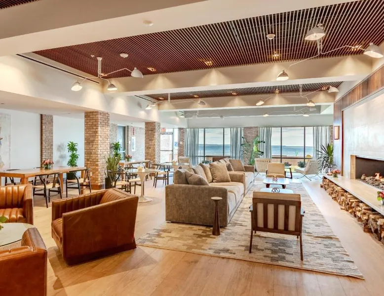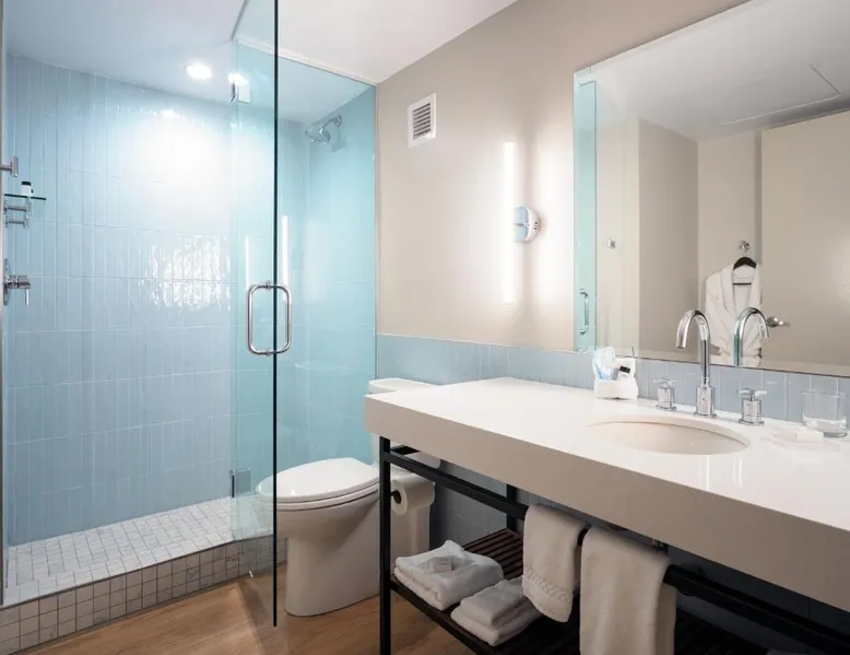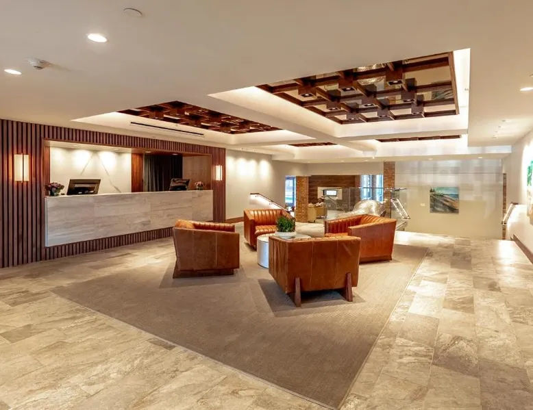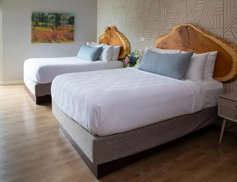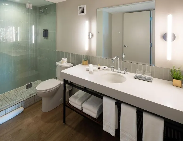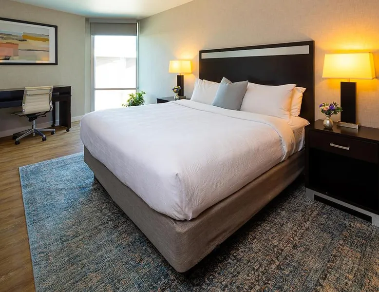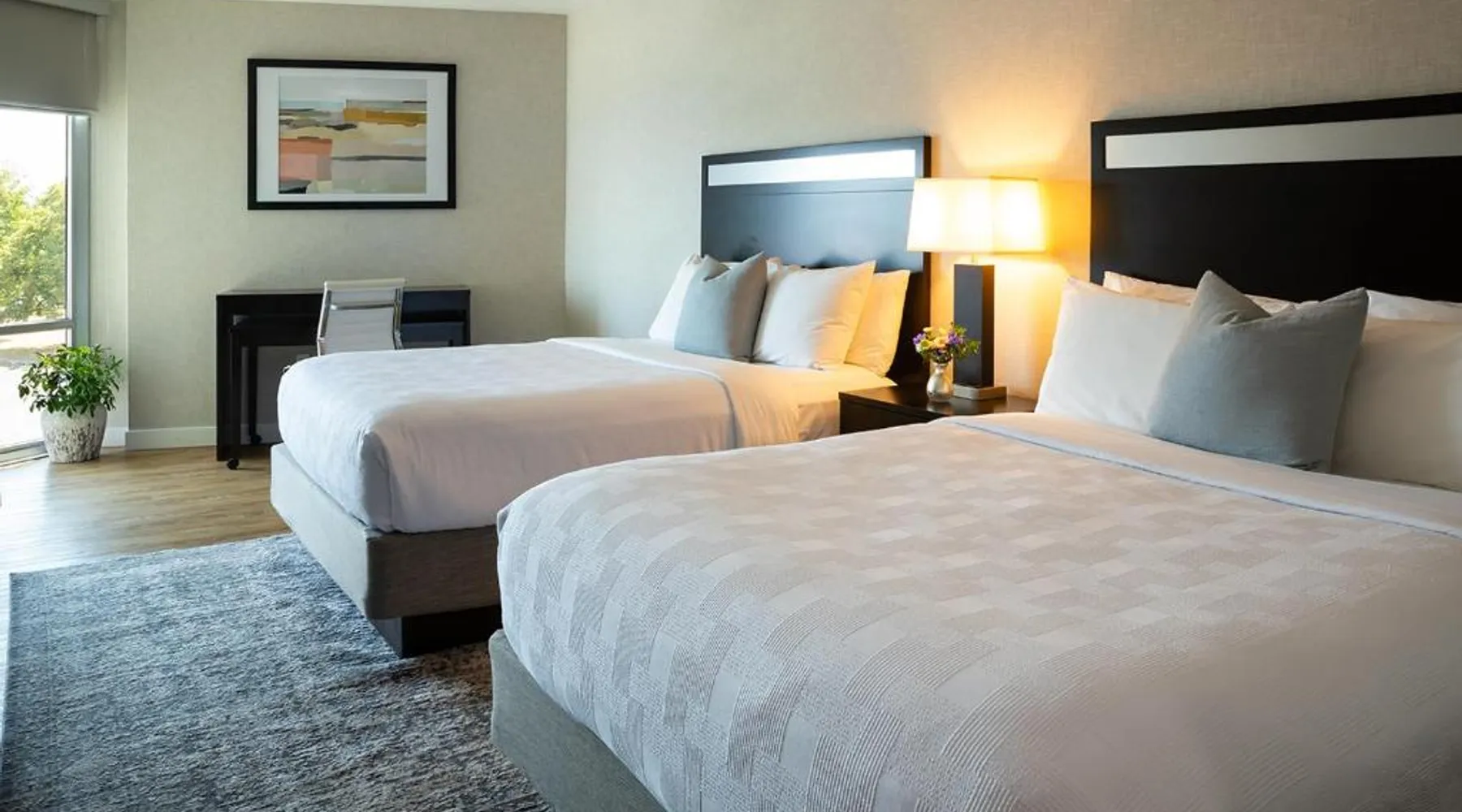 Beachfront Location: Delamar Traverse City in Traverse City offers a private beach area and beachfront access. Guests can relax by the year-round outdoor swimming pool or indoor pool, enjoy the sauna, and stay active in the fitness center. Comfortable Accommodations: Rooms feature private balconies, free WiFi, and modern amenities such as flat-screen TVs and mini-bars. Additional facilities include a hot tub, fitness room, and electric vehicle charging station. Dining Experience: The family-friendly restaurant serves American cuisine with kosher, vegetarian, vegan, gluten-free, and dairy-free options. Breakfast includes continental, American, and à la carte selections. Live music enhances the dining experience. Nearby Attractions: Sunset Park Beach is just a few steps away, while Clinch Park is a 13-minute walk. Other points of interest include Dennos Museum Center (1.3 mi) and Great Wolf Lodge Traverse City (3.7 mi). Cherry Capital Airport is 1.9 mi from the hotel. The unit has 2 beds.