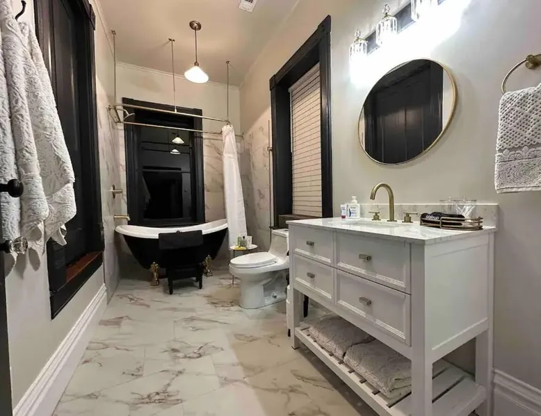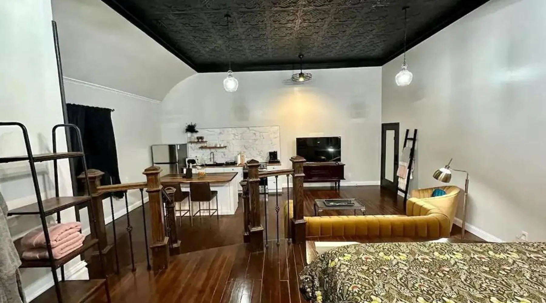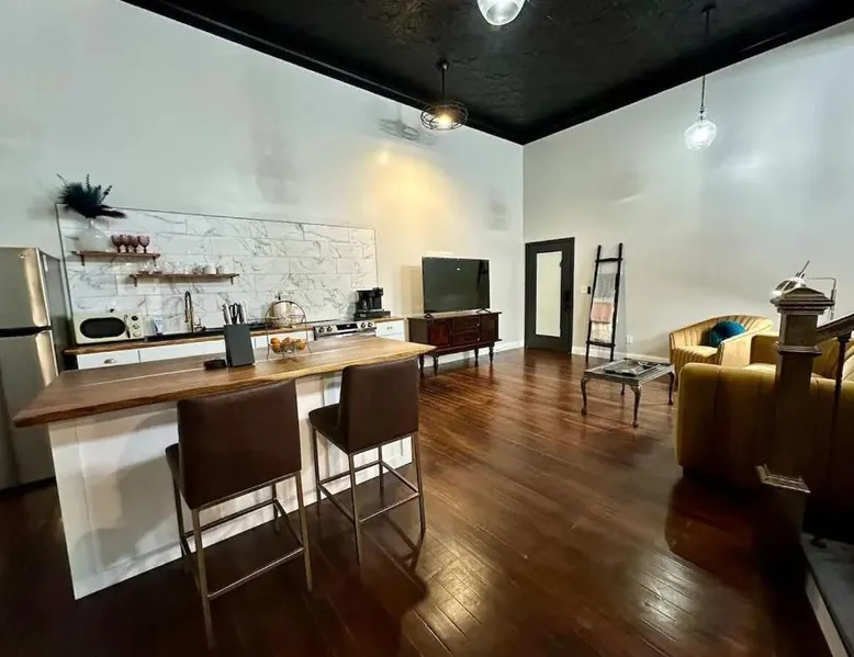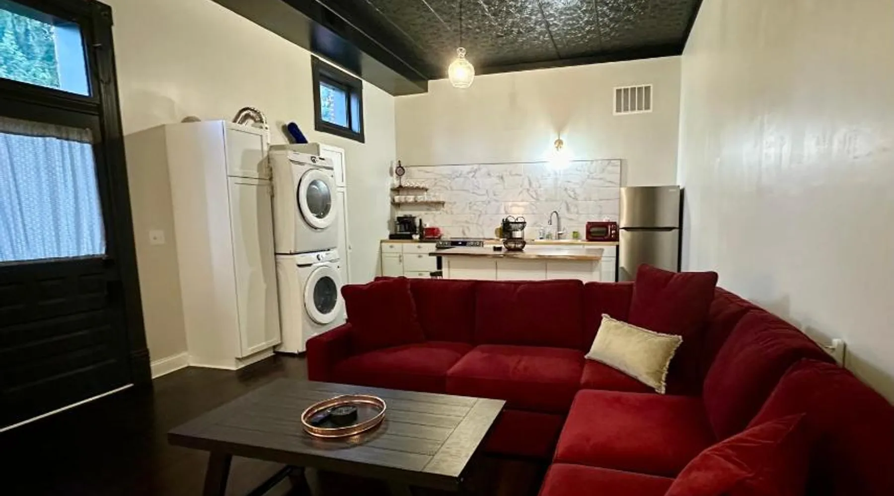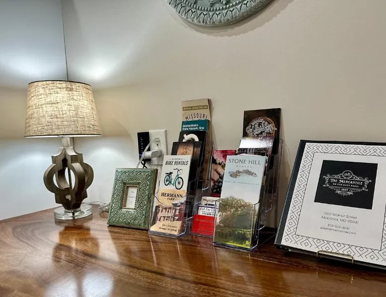 Comfortable Accommodations: The Mercantile on the Katy Trail in Hermann offers private bathrooms with garden or landmark views. Each room includes air-conditioning, a washing machine, and a kitchen equipped with a refrigerator, oven, and stovetop. Outdoor Amenities: Guests can relax in the garden or outdoor seating area. The property features an outdoor fireplace, picnic area, and bicycle parking. Free WiFi is available throughout the hotel. Convenient Services: The hotel provides free on-site private parking, express check-in and check-out, and a shuttle service. Additional services include bike hire and bicycle maintenance. Activities and Location: Cycling enthusiasts appreciate the hotel’s proximity to the Katy Trail. Guests enjoy garden views and a quiet street setting. The property is highly rated for its bike facilities and convenient location. Featuring a private entrance, this air-conditioned suite consists of 1 living room, 1 separate bedroom and 1 bathroom with a walk-in shower and a hairdryer. Meals can be prepared in the kitchen, which comes with a stovetop, a refrigerator, kitchenware and an oven. The suite features parquet floors, a seating area with a flat-screen TV, a washing machine, a tea and coffee maker, as well as a dining area. The unit offers 2 beds.