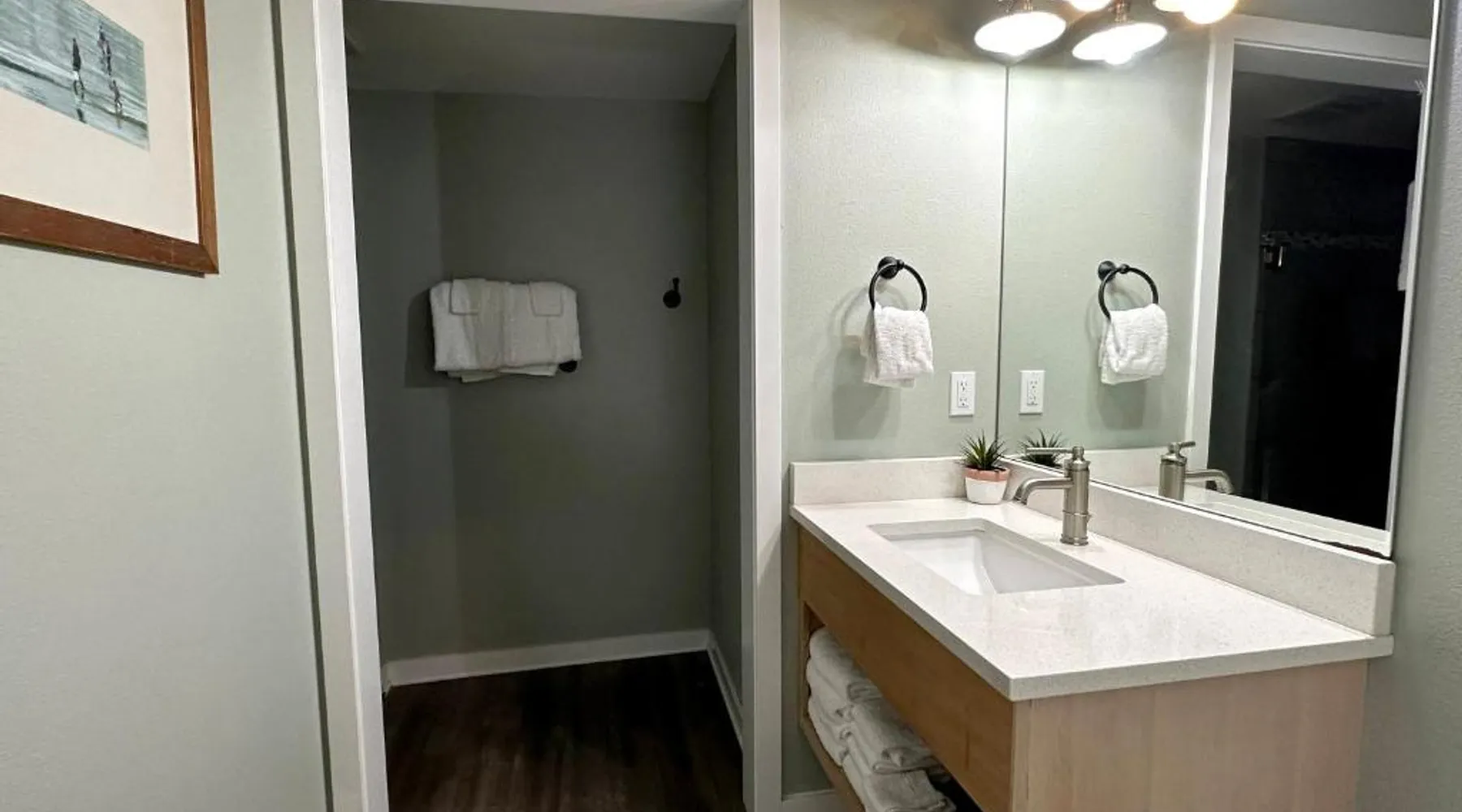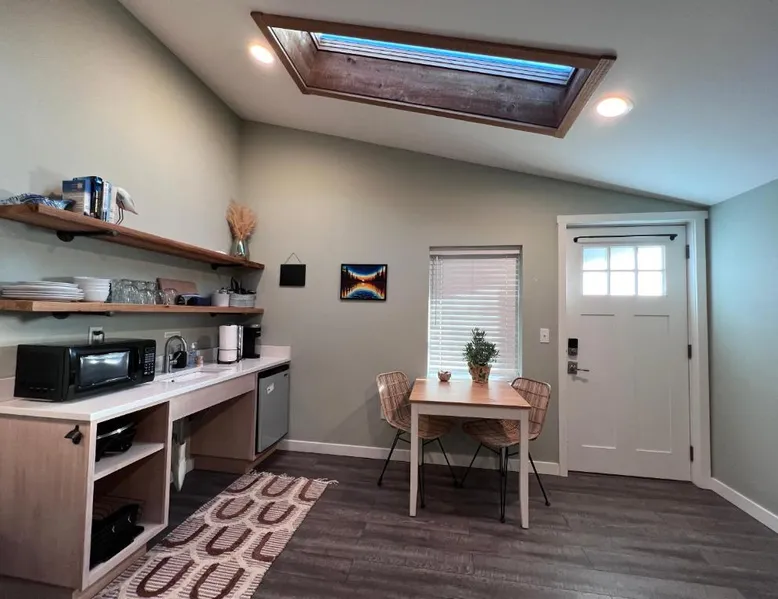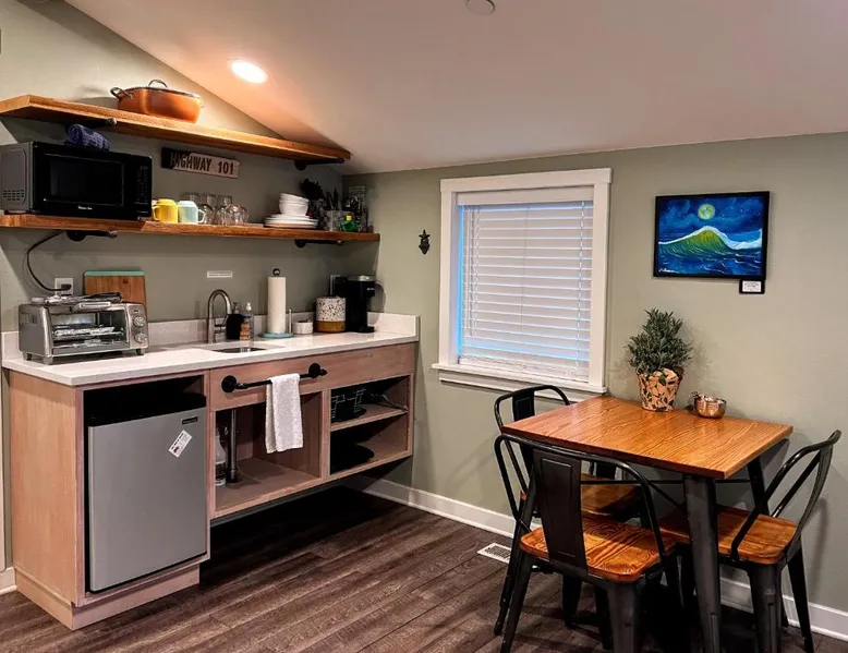 Comfortable Accommodations: Sea Glass Inn in Seaside offers highly rated rooms with comfortable beds and bathrooms. Guests enjoy free WiFi, private check-in and check-out services, and free on-site parking. Outdoor Amenities: The inn features an outdoor fireplace, outdoor seating area, and picnic area. Additional facilities include a terrace and patio, ideal for relaxation. Local Attractions: Seaside Beach is an 8-minute walk away, Seaside Aquarium a 7-minute stroll, and Seaside Civic Convention Center 984 feet nearby. Portland International Airport is 86 mi from the property. This suite consists of 1 living room, 2 separate bedrooms and 1 bathroom with a shower and free toiletries. The well-fitted kitchenette features a refrigerator, kitchenware and a microwave. This suite includes a dining area, a flat-screen TV with streaming services a tea and coffee maker and a terrace. The unit offers 2 beds.
