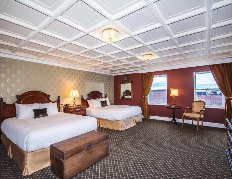 Comfortable Accommodations: The Pollard Hotel in Red Lodge offers family rooms with air-conditioning, private bathrooms, and modern amenities. Each room includes a balcony, spa bath, and free WiFi. Exceptional Facilities: Guests can enjoy a sauna, fitness center, and outdoor seating area. Additional facilities include a fitness room, elevator, 24-hour front desk, and free on-site private parking. Dining Experience: The family-friendly restaurant serves American cuisine with vegetarian and dairy-free options. Brunch and lunch are available in a traditional and modern ambiance. Activities and Surroundings: Located 63 mi from Billings Logan International Airport, the hotel is near skiing, hiking, and cycling. Highly rated for its history, culture, and friendly staff. The spacious double room provides air conditioning, a wardrobe, as well as a private bathroom featuring a shower and a hairdryer. This double room features a carpeted floor, heating and a flat-screen TV with cable channels. The unit offers 2 beds.