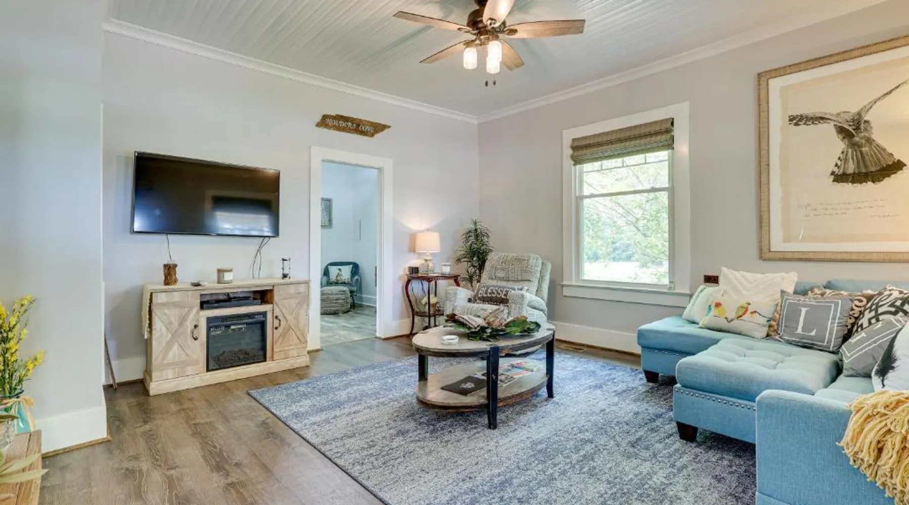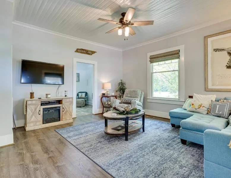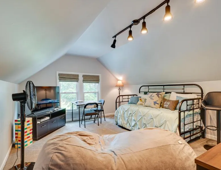 Comfortable Living: Cozy Tennessee Abode with Private Hot Tub and Fire Pit in Winchester offers a cozy holiday home with one bedroom and a living room. The ground-floor unit features a private entrance and a fully equipped kitchen with modern appliances. Relaxing Amenities: Guests can unwind in the private hot tub or enjoy the outdoor fire pit. The property includes air-conditioning, a washing machine, and a work desk. Free WiFi is available throughout the stay. Leisure Activities: The holiday home features a games room with a variety of games, ensuring entertainment for all ages. A TV and hairdryer provide additional comfort. Convenient Location: Huntsville International Airport is 58 mi away, offering easy access for travelers. This holiday home's standout feature is the hot tub. Boasting a private entrance, this air-conditioned holiday home includes 2 living rooms, 1 separate bedroom and 1 bathroom with a bath and a hairdryer. The holiday home's kitchen, which has kitchenware, is available for cooking and storing food. The holiday home offers a washing machine, tumble dryer, a game console, video games, as well as a TV with cable channels. The unit has 3 beds.