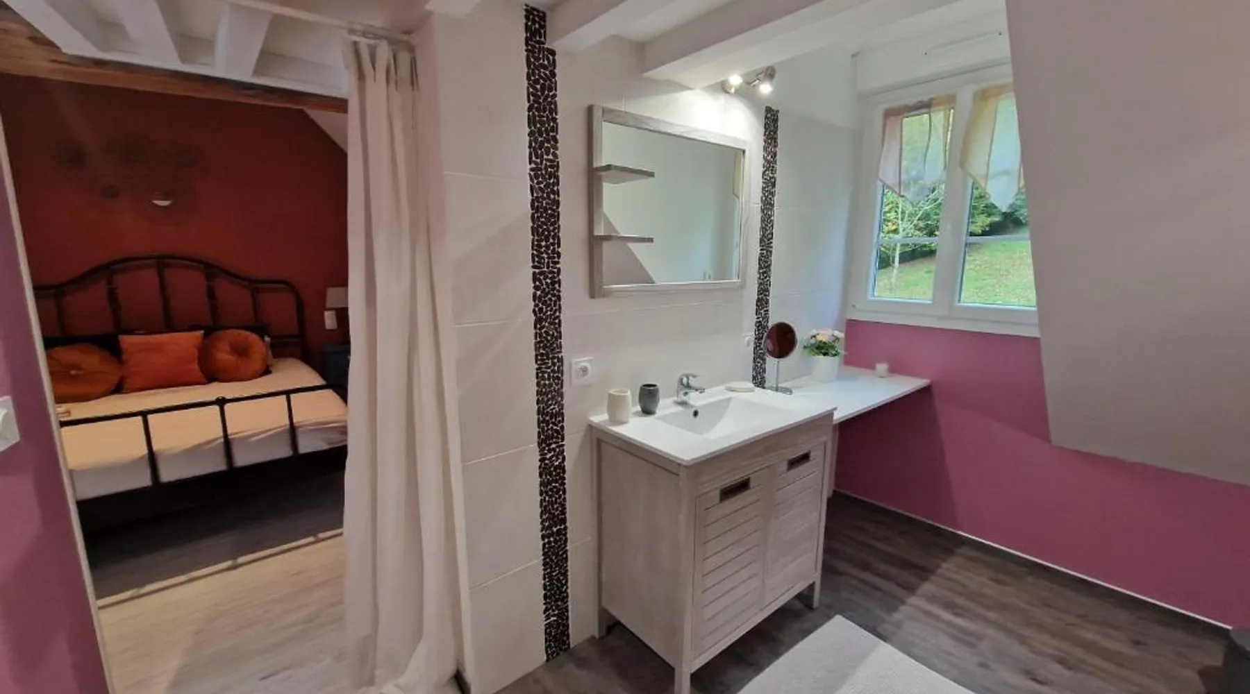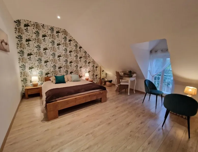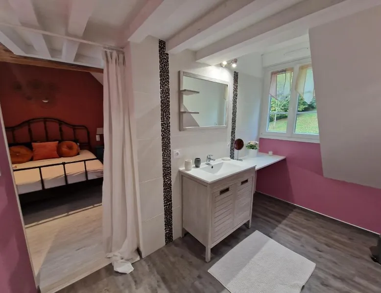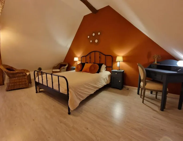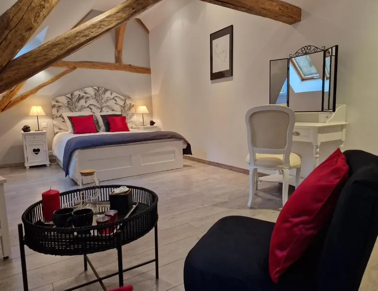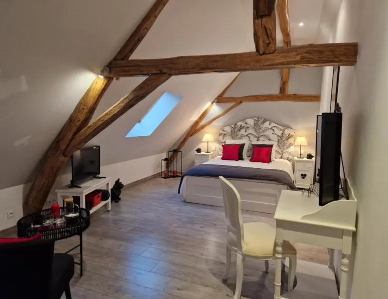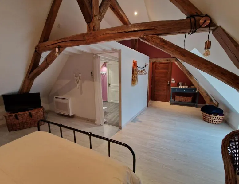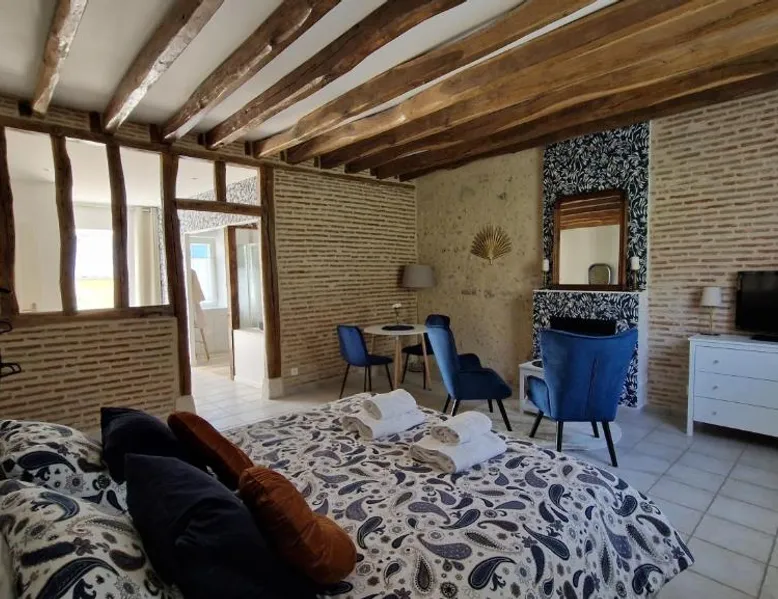Comfortable Accommodations: La Maison Pas'Chaaxe in Onzain offers adults-only bed and breakfast rooms with private bathrooms, air-conditioning, and garden views. Each room includes a work desk, soundproofing, and free WiFi. Relaxing Facilities: Guests can enjoy a sun terrace, garden, and outdoor seating area. Additional amenities include a hot tub, spa bath, and private bathrobes. Free on-site private parking is available. Delicious Breakfast: A continental breakfast is served daily, featuring fresh pastries, cheese, fruits, and juice. The property also offers bicycle parking for active travelers. Prime Location: Located 29 mi from Tours Val de Loire Airport, the bed and breakfast is near Château de Chaumont sur Loire (2.5 mi) and Château d'Amboise (11 mi). Highly rated for room comfort and breakfast. Guests will have a special experience as this double room provides a hot tub and a spa bath. The spacious double room offers a private entrance, soundproof walls, a terrace with garden views as well as a private bathroom featuring a walk-in shower. The unit offers 1 bed.