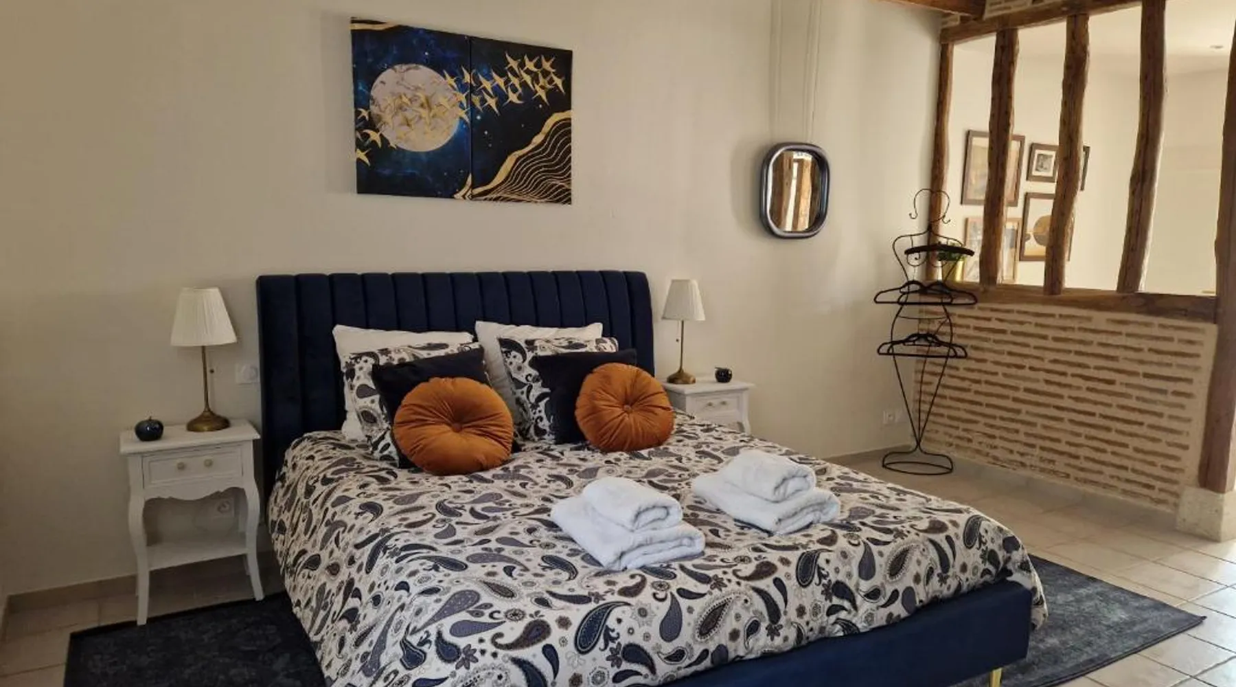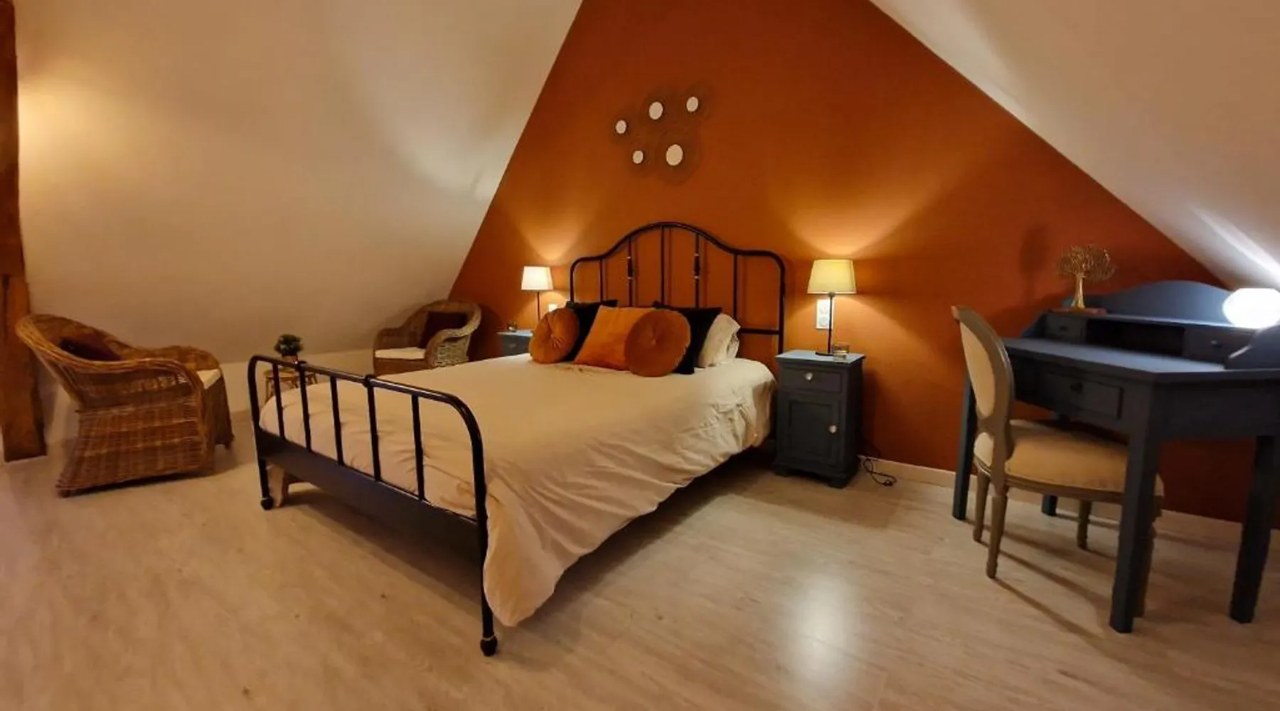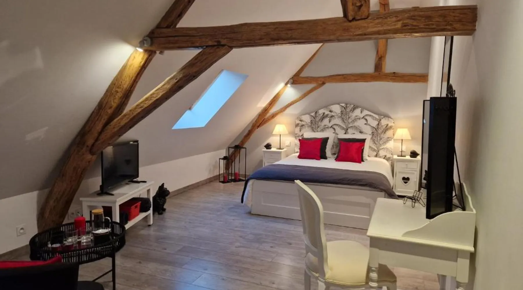Comfortable Accommodations: La Maison Pas'Chaaxe in Onzain offers adults-only bed and breakfast rooms with private bathrooms, air-conditioning, and garden views. Each room includes a work desk, soundproofing, and free WiFi. Relaxing Facilities: Guests can enjoy a sun terrace, garden, and outdoor seating area. Additional amenities include a hot tub, spa bath, and private bathrobes. Free on-site private parking is available. Delicious Breakfast: A continental breakfast is served daily, featuring fresh pastries, cheese, fruits, and juice. The property also offers bicycle parking for active travelers. Prime Location: Located 29 mi from Tours Val de Loire Airport, the bed and breakfast is near Château de Chaumont sur Loire (2.5 mi) and Château d'Amboise (11 mi). Highly rated for room comfort and breakfast. Guests will have a special experience as this double room provides a hot tub and a spa bath. The spacious double room offers a private entrance, soundproof walls, a terrace with garden views as well as a private bathroom featuring a walk-in shower. The unit offers 1 bed.