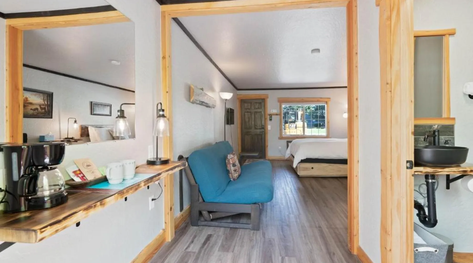 Comfortable Accommodations: Lake Village Lodge in Coeur d'Alene offers family rooms with private bathrooms, air-conditioning, and garden views. Each room includes a tea and coffee maker, refrigerator, microwave, and TV. Essential Facilities: Guests enjoy free WiFi, private check-in and check-out services, an outdoor seating area, and a picnic area. Free on-site private parking is available. Convenient Location: Located 39 mi from Spokane International Airport, the hotel is near Silverwood Theme Park (19 mi) and MeadowWood Golf Course (20 mi). Highly rated for room cleanliness, bed comfort, and room comfort. The apartment features 1 bedroom and 1 bathroom with a shower and free toiletries. Featuring a balcony, this apartment also provides air conditioning, a tea and coffee maker and a flat-screen TV. The unit offers 1 bed and 1 futon.