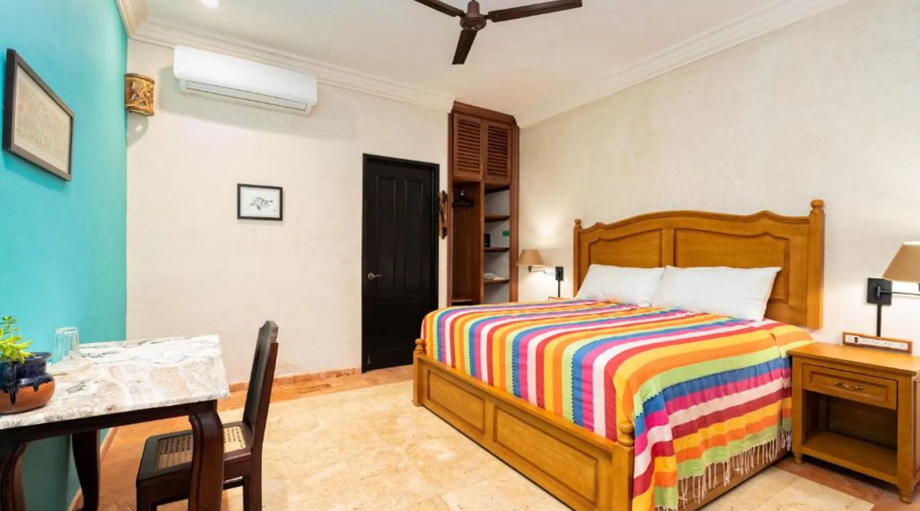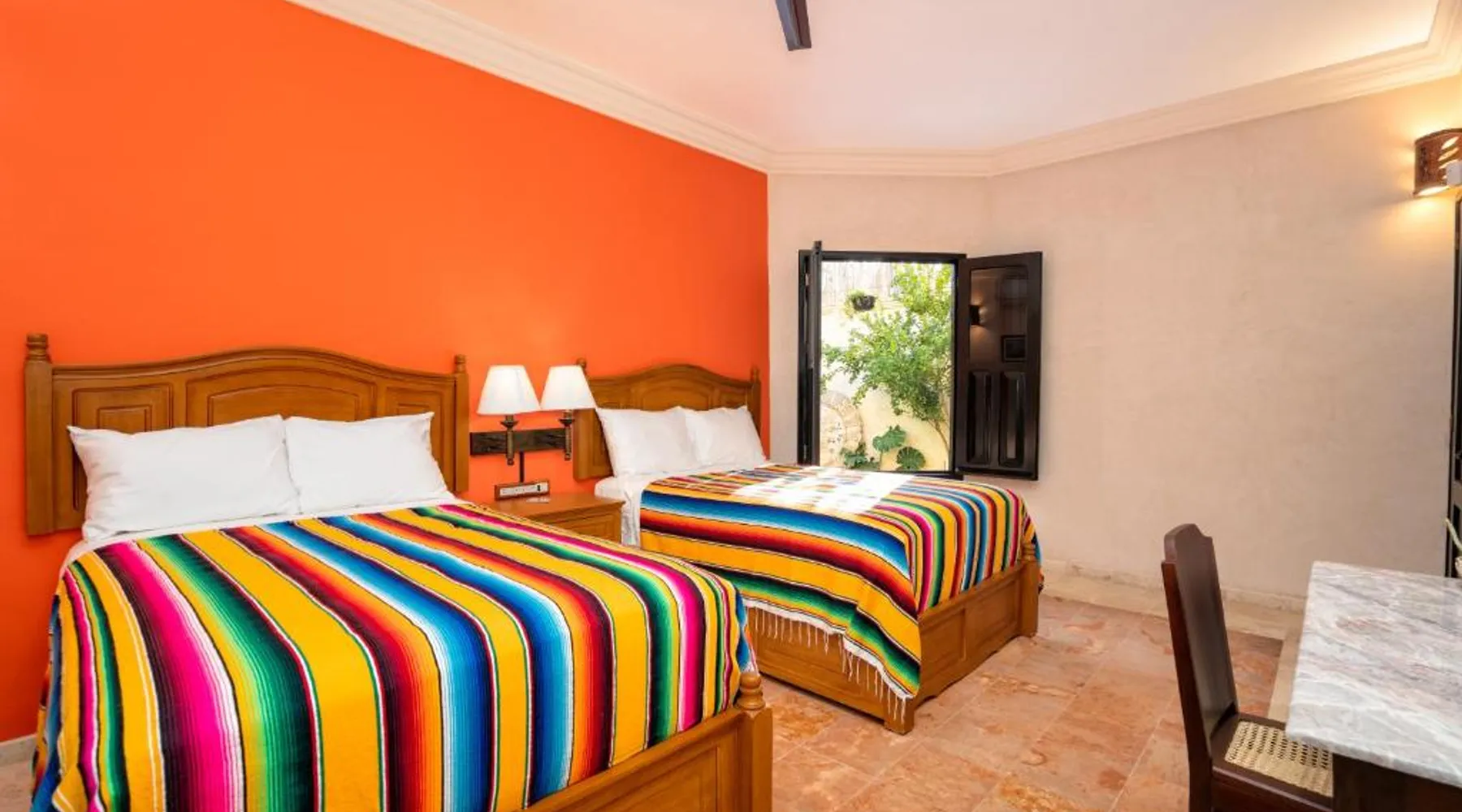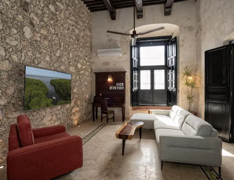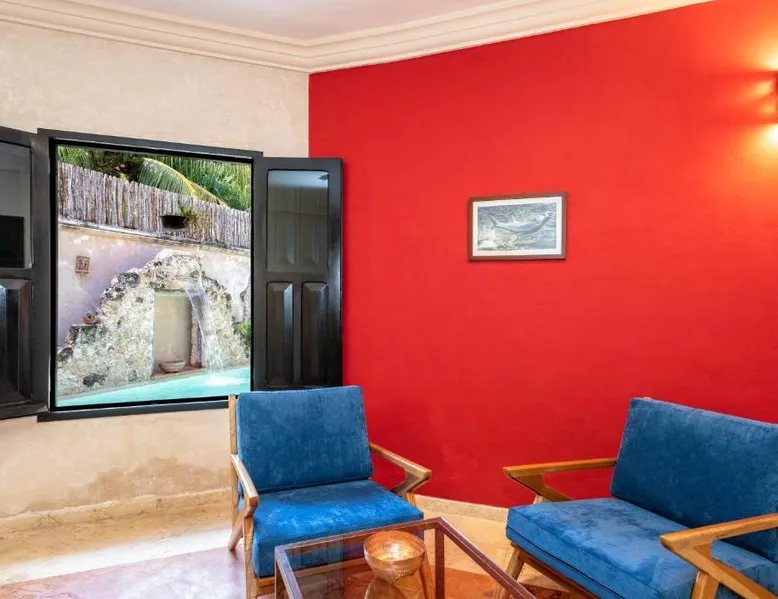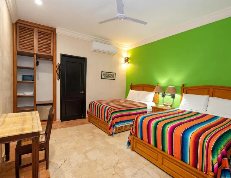 Elegant Accommodations: Casa Clorinda in Campeche offers adults-only bed and breakfast accommodations with private bathrooms, air-conditioning, and garden views. Each room includes a walk-in shower, refrigerator, and wardrobe. Relaxing Facilities: Guests can enjoy a saltwater swimming pool, lush garden, and spacious terrace. The property features a private check-in and check-out service, paid shuttle, lounge, concierge, and outdoor seating area. Convenient Location: Located 1.9 mi from Ing. Alberto Acuña Ongay International Airport, the property is a 14-minute walk from Campeche XXI Convention Center. Free WiFi is available throughout the property. The spacious double room provides air conditioning, a seating area, a terrace with garden views as well as a private bathroom featuring a walk-in shower. The unit offers 2 beds.