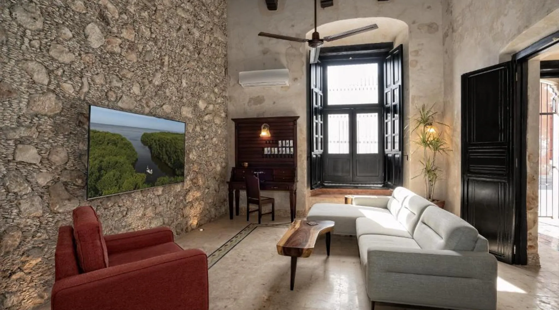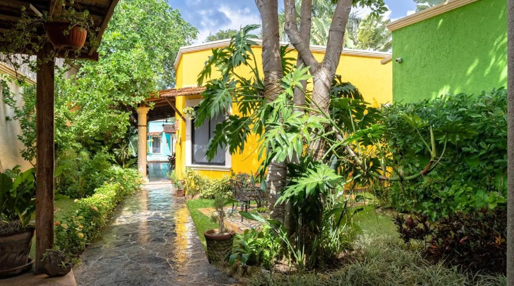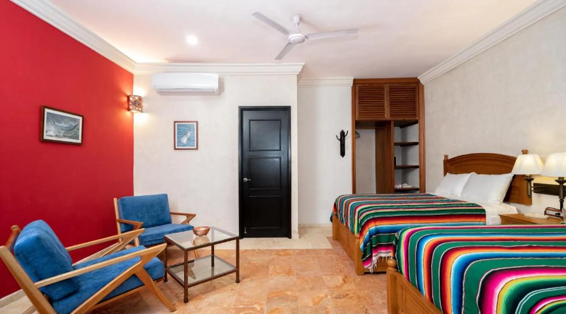 Elegant Accommodations: Casa Clorinda in Campeche offers adults-only bed and breakfast accommodations with private bathrooms, air-conditioning, and garden views. Each room includes a walk-in shower, refrigerator, and wardrobe. Relaxing Facilities: Guests can enjoy a saltwater swimming pool, lush garden, and spacious terrace. The property features a private check-in and check-out service, paid shuttle, lounge, concierge, and outdoor seating area. Convenient Location: Located 1.9 mi from Ing. Alberto Acuña Ongay International Airport, the property is a 14-minute walk from Campeche XXI Convention Center. Free WiFi is available throughout the property. The spacious double room provides air conditioning, a seating area, a terrace with garden views as well as a private bathroom featuring a walk-in shower. The unit offers 2 beds.