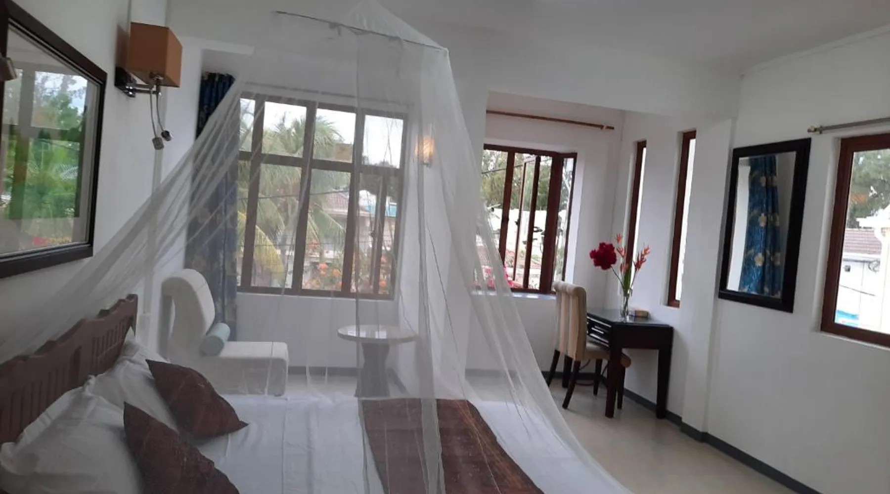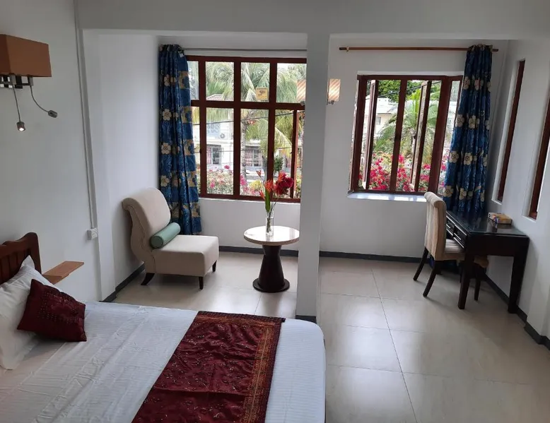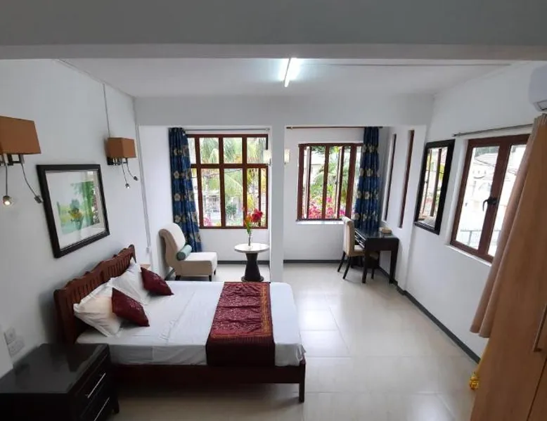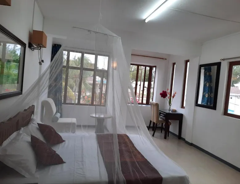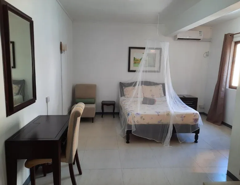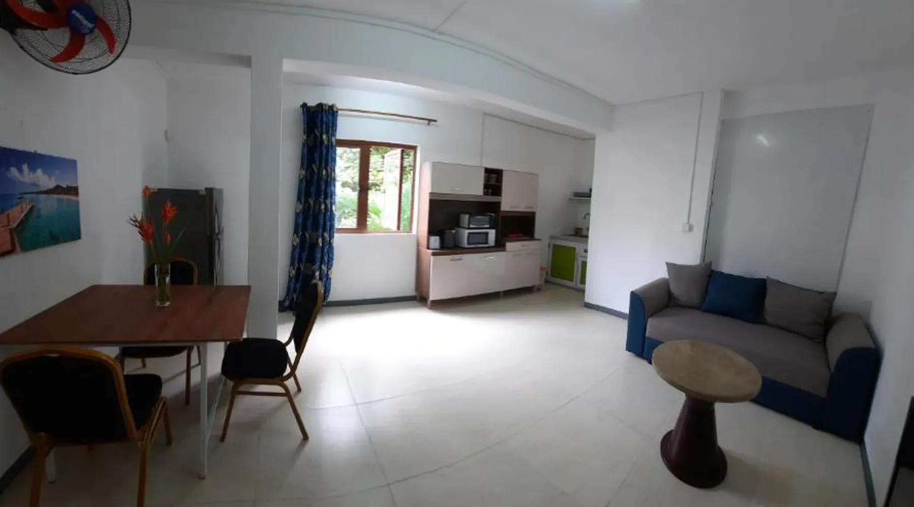 Beachfront Location: Jasmin Apartments flic en flac in Flic en Flac offers direct beachfront access and stunning sea views. Guests enjoy free WiFi throughout the property. Comfortable Accommodations: The apartment features family rooms with air-conditioning, a kitchenette, and a private bathroom. Additional amenities include a washing machine, dining area, and a work desk. Convenient Facilities: Free on-site private parking is available. The property includes a mini-bar, sofa, and kitchenware, ensuring a comfortable stay. Nearby Attractions: Flic en Flac Beach is just a few steps away. Other attractions include Tamarina Golf Course (5.6 mi) and Domaine Les Pailles (13 mi). Scuba diving is available in the surroundings. Guest Satisfaction: Highly rated for its beachfront access, convenient location, and room comfort. This apartment comes with 1 living room, 1 separate bedroom and 1 bathroom with a bath and free toiletries. Meals can be prepared in the well-fitted kitchen, which features a refrigerator, kitchenware, an oven and a microwave. This apartment is air-conditioned and has a seating area with a flat-screen TV, a washing machine, a tea and coffee maker, a dining area, as well as a wardrobe. The unit has 2 beds.