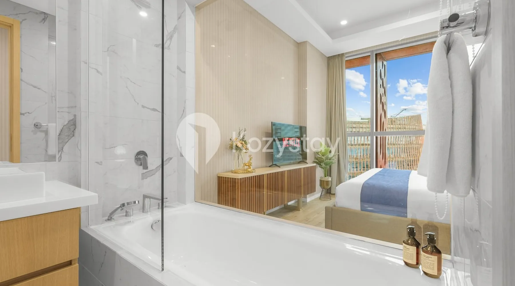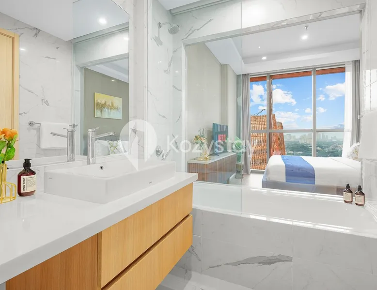 Professionally Managed by Kozystay Experience contemporary luxury in South Jakarta with this sophisticated 2-bedroom apartment. Enjoy modern comfort and top-tier amenities like an outdoor pool and gym. Perfectly located near attractions for a memorable urban getaway. Reserve your stay today! AVAILABLE TO GUESTS: + Digital Check-in + Professionally Cleaned (disinfect) + Hotel Grade Amenities & Fresh Linens + Free High-Speed Wi-Fi & Cable TV + Free Access to Netflix The space BEST FOR: Business Travelers, Staycation NON-SMOKING General + 2 bedrooms (86m2) or 4 guests + 2 bathroom (1 En suite bathroom with bathtub) + Amenities & linens; towels & toiletries + High-speed Wi-Fi + Free access to streaming services: Netflix + Dining table for 4 persons + Mid -zone (between 11th - 25th floor) + In-room laundry (washer) Master Bedroom + King size bed + En suite bathroom with bathtub + 50'' Smart TV + Wardrobe + Hair dryer + Iron & ironing board Guest Bedroom + Queen Bedroom + Wardrobe Living Space + 55'' Smart TV + Access to Netflix Kitchen + Fully equipped kitchen + Microwave + Induction stove: 3 burners + Rice cooker + Refrigerator & freezer + Water dispenser + No condiments available (salt, pepper, oil, etc) Guest access BUILDING FACILITIES: + Fitness center + Outdoor swimming pool + Outdoor children's playground Other things to note *** IMPORTANT INFORMATION *** + Kozystay is not a hotel but individually managed apartments. We do not provide a front desk for check-in or reservations. The building management is separate from Kozystay management and therefore all communication during guest stay and check-in & check-out process must be via Kozystay personnel + Guests must ensure contact details listed on Airbnb is valid and reachable SECURITY & COMMUNICATION + Each guests are strictly required to provide a form of identification (ID/passport) prior to check-in. + Communication throughout stay will be via web-based app or WA BUILDING + Bus/ Truck Parking: IDR 6,000/hour + Car Parking: IDR 4,000/hour + Motorcycle Parking: IDR 2,000/hour SERVICE + We are always on hand to make your visit as enjoyable as possible and we pride ourselves on going the extra mile so please don't hesitate to contact us. Whether you need help with the apartment, a recommendation or somewhere to leave your suitcase, we are here to assist + Extra cleaning is available with extra charge (400k/cleaning), this includes change of linens, amenities, and 2-3 hour cleaning LONG TERM STAYS Stay longer and save up to 45% on your stay + Weekly : 5% + >1 month : Contact us directly