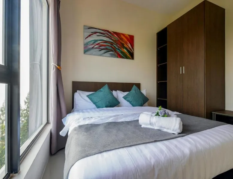 Comfortable Accommodations: SG Residence By THM in Kuantan offers apartment-style living with family rooms. Each unit features air-conditioning, a private bathroom, and a fully equipped kitchen with a refrigerator, microwave, and stovetop. Exceptional Facilities: Guests can enjoy a fitness center, a year-round outdoor swimming pool, and free WiFi. Additional amenities include a balcony, washing machine, and free on-site private parking. Prime Location: Located 16 mi from Sultan Haji Ahmad Shah Airport, the property is a 5-minute walk from Batu Hitam Beach. Nearby attractions include Kuantan 188 Tower (8.1 mi) and Sultan Ahmad Shah International Convention Center (7.5 mi). Guest Satisfaction: Highly rated for its convenient location, beach access, and room cleanliness. This spacious apartment consists of 1 living room, 2 separate bedrooms and 2 bathrooms with a bidet and a hairdryer. In the well-equipped kitchen, guests will find a stovetop, a refrigerator, kitchenware and a microwave. Featuring a balcony, this apartment also provides air conditioning, a safe deposit box and a flat-screen TV. The unit offers 2 beds and 2 futons.