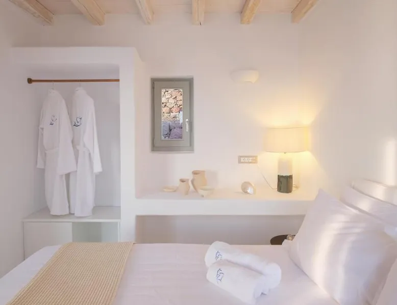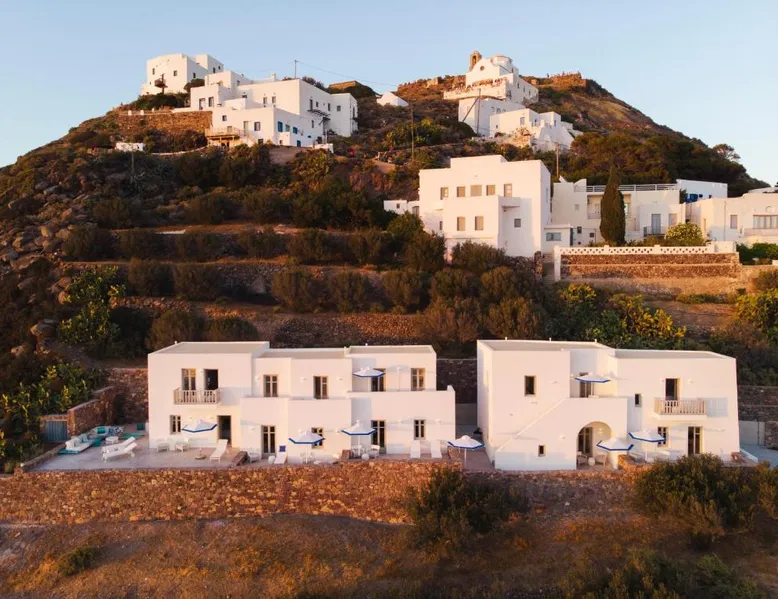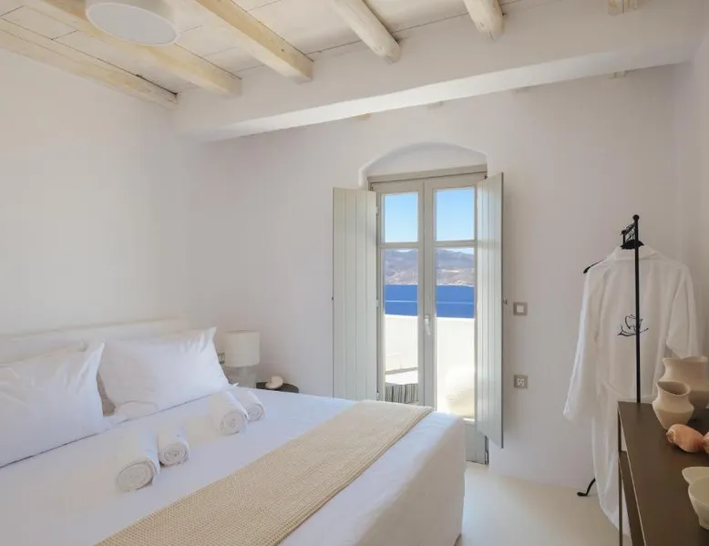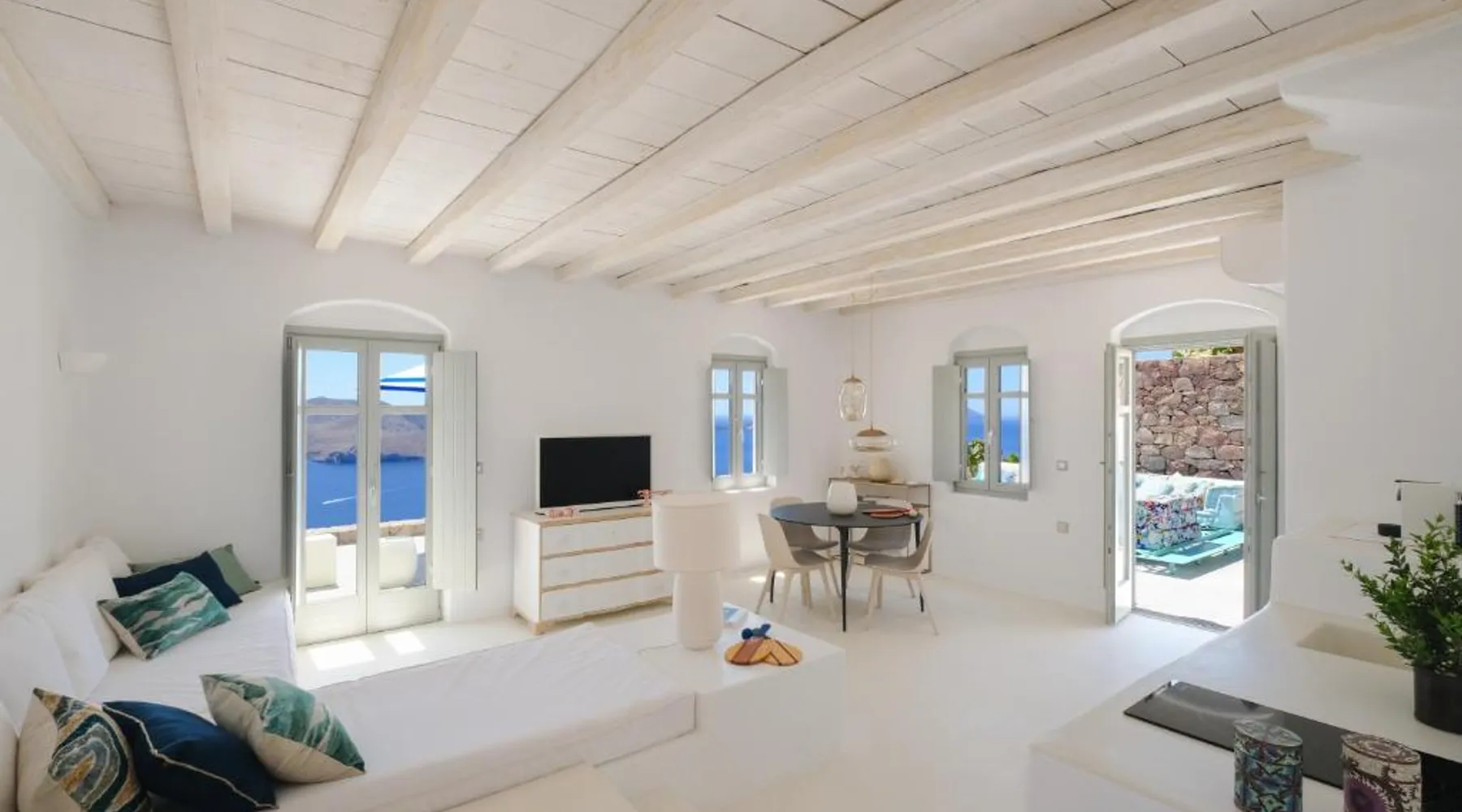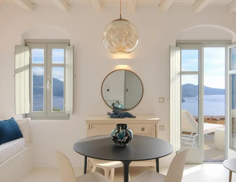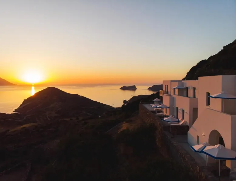 Elegant Accommodations: Odyssey Rock Milos Sunset Suites in Plaka offers a terrace and free WiFi. Guests enjoy sea and mountain views, air-conditioning, and a private bathroom with free toiletries. Comfortable Amenities: The apartment features a fully equipped kitchen with a coffee machine, oven, and stovetop. Additional amenities include bathrobes, streaming services, and a work desk. Prime Location: Located 5.6 mi from Milos Island National Airport, the property is an 18-minute walk from Klima Beach and 1.2 mi from the Catacombs of Milos. Nearby attractions include Panagia Faneromeni and the Ecclesiastical Museum of Milos. Guest Satisfaction: Highly rated for its scenic location, convenient position, and attentive staff, Odyssey Rock Milos Sunset Suites ensures a pleasant stay. Featuring a private entrance, this air-conditioned suite consists of 1 living room, 1 separate bedroom and 1 bathroom with a shower and a hairdryer. Meals can be prepared in the well-fitted kitchen, which comes with a stovetop, kitchenware, an oven and a tea and coffee maker. Boasting a terrace with sea views, this suite also provides soundproof walls and a flat-screen TV with streaming services. The unit offers 2 beds.