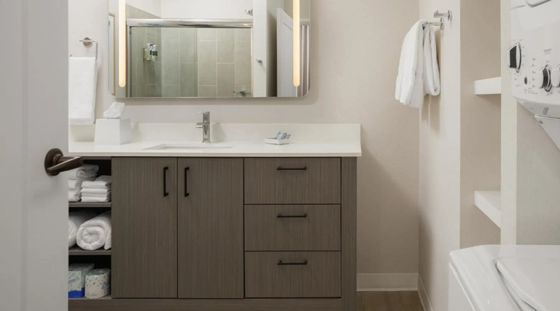 Comfortable Accommodations: WaterWalk Extended Stay by Wyndham Boise Meridian in Meridian offers rooms with air-conditioning, private bathrooms, and modern amenities. Each room includes a kitchen, washing machine, sofa, and wardrobe, ensuring a pleasant stay. Exceptional Facilities: Guests can enjoy a fitness center, terrace, and free WiFi. Additional facilities include an outdoor fireplace, elevator, 24-hour front desk, concierge service, business area, outdoor seating, and picnic area. Free on-site private parking is available. Prime Location: Located 8.1 mi from Boise Airport, the hotel is near attractions such as Roaring Springs Water Park (3.1 mi) and Extramile Arena (11 mi). Boise Center, Boise Art Museum, and Zoo Boise are within 9.9 mi. Highly rated for its kitchen, room cleanliness, and attentive staff. The spacious suite offers air conditioning and a washing machine, as well as a private bathroom featuring a bath or a shower.