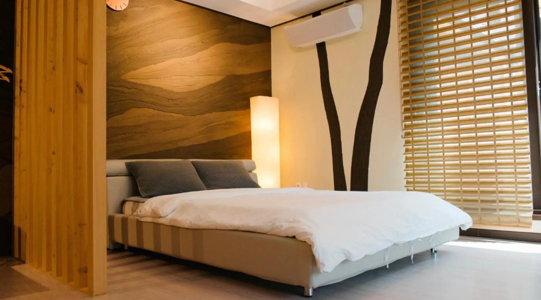 Comfortable Accommodations: Byeoldeul-ui Gichim Pension in Inje offers a guest house experience with free WiFi and free on-site private parking. Each room features air-conditioning, a private bathroom, hairdryer, refrigerator, electric kettle, TV, bidet, dining table, free toiletries, microwave, sofa, and stovetop. Convenient Amenities: Guests can enjoy amenities such as a dining table, sofa, and stovetop, providing a comfortable and relaxing stay. Local Attractions: Located 39 mi from Yangyang International Airport, the guest house is near Naerinchon, Inje Mountain Village Folk Museum, Park In-hwan Munhakwan, Inje Holy Church, Inje Methodist Church, Inje Cathedral, Inje Hyanggyo, and Sandongri Three Story Pagoda, each 16-12 mi away. The spacious twin/double room features air conditioning, an electric kettle, as well as a private bathroom boasting a bidet and a hairdryer. This twin/double room provides a sofa and a TV. The unit has 1 bed.
