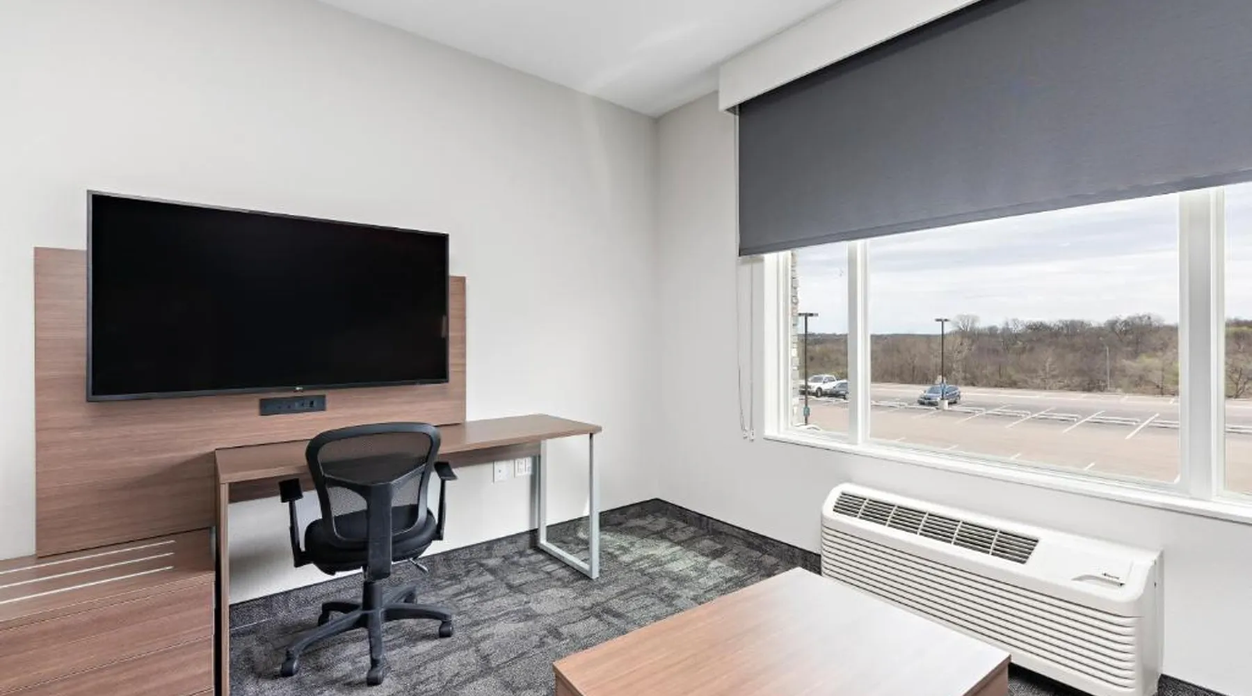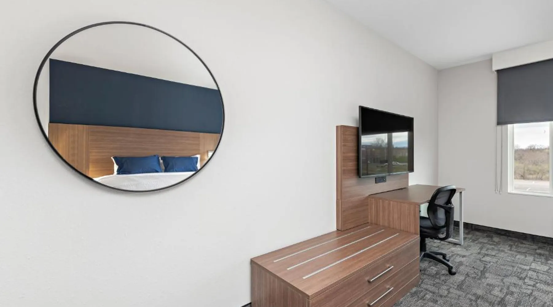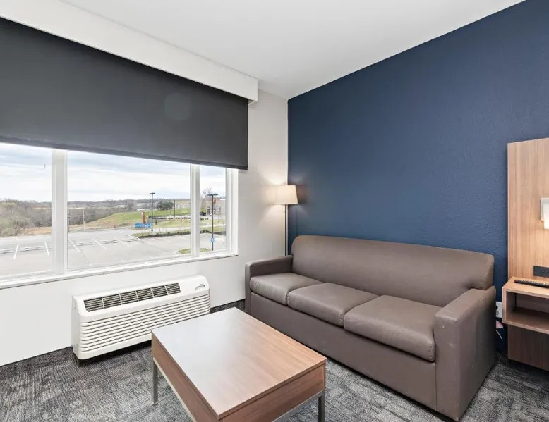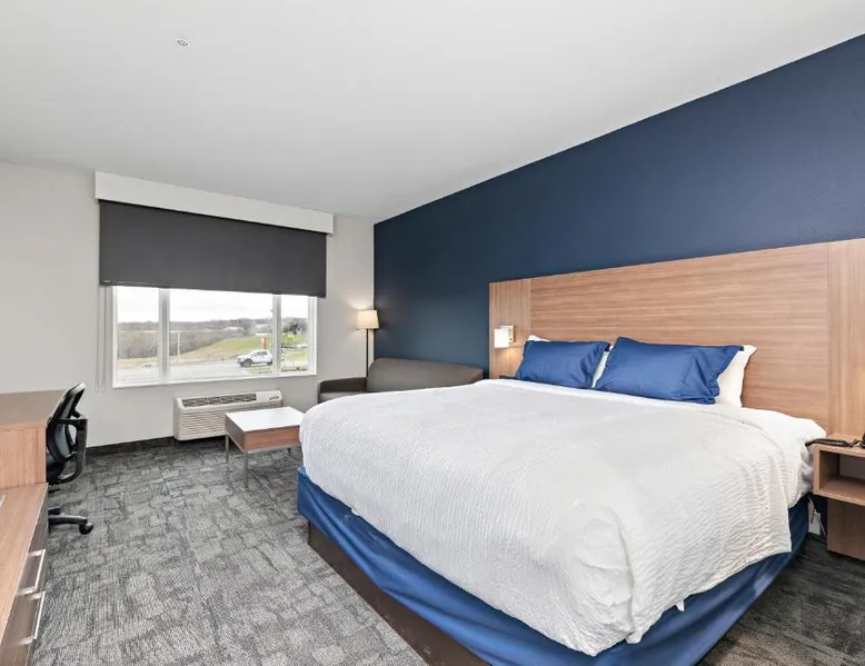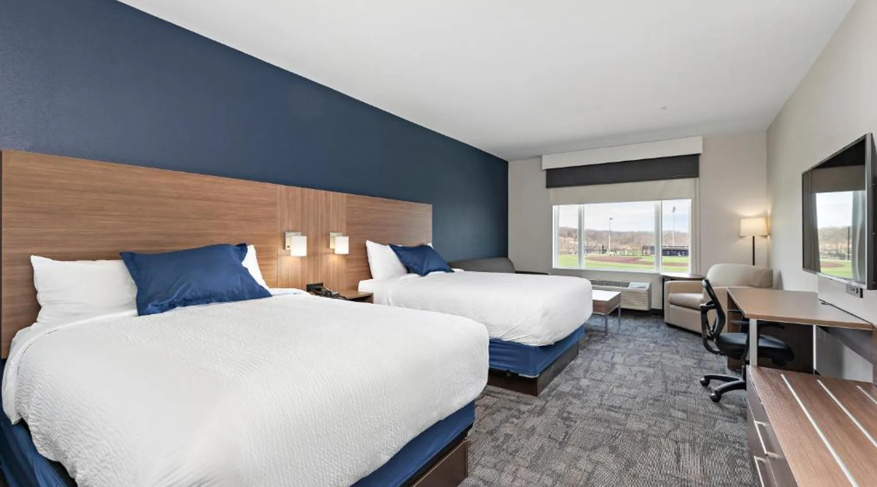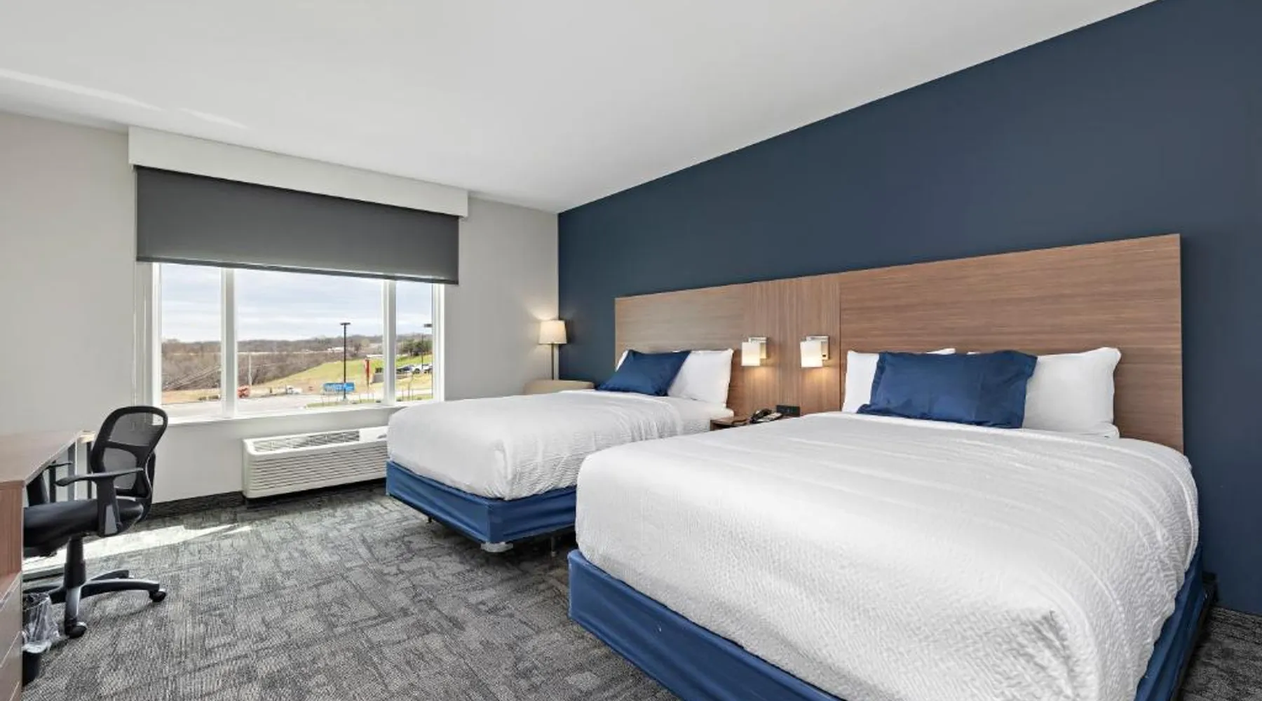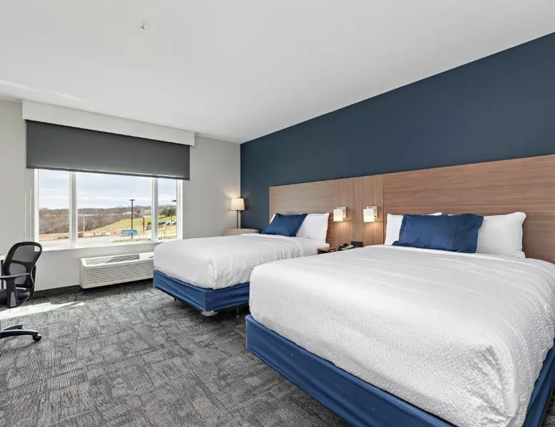 Comfortable Accommodations: Holiday Inn Express Kansas City North Parkville by IHG in Parkville offers air-conditioned rooms with private bathrooms, free WiFi, and modern amenities. Each room includes a work desk, TV, and wardrobe, ensuring a pleasant stay. Leisure Facilities: Guests can enjoy a fitness center, sun terrace, and a seasonal outdoor swimming pool. Additional facilities include an outdoor fireplace, fitness room, and electric vehicle charging station. Free on-site parking is available for convenience. Dining Options: A continental, American, and buffet breakfast is served daily. The property also features an outdoor seating area and a business area, catering to both leisure and business travelers. Prime Location: Located 5.6 mi from Kansas City International Airport, the hotel is near attractions such as Lake Waukomis (11 mi) and Downtown Kansas City (18 mi). Highly rated for its convenient location, room cleanliness, and breakfast provided by the property. The double room offers air conditioning, a wardrobe, as well as a private bathroom featuring a shower and a hairdryer. The double room provides a flat-screen TV, a safe deposit box, tumble dryer and a carpeted floor. The unit offers 2 beds.