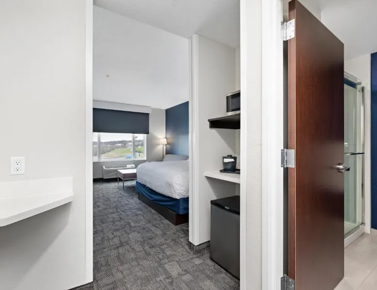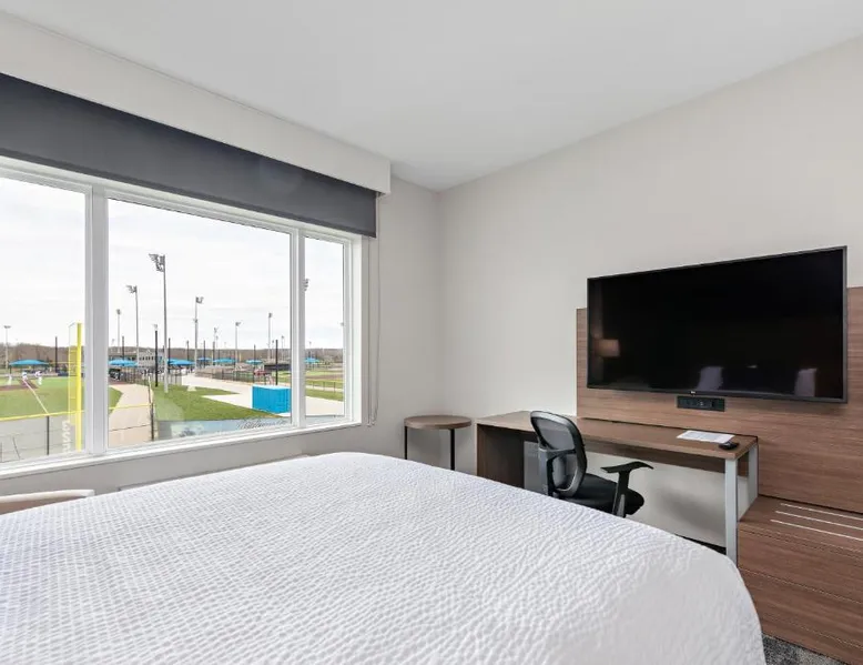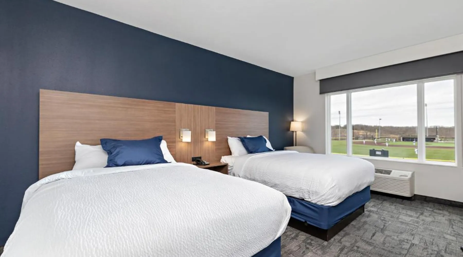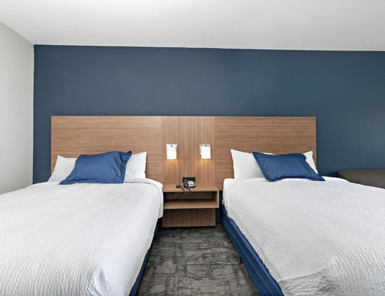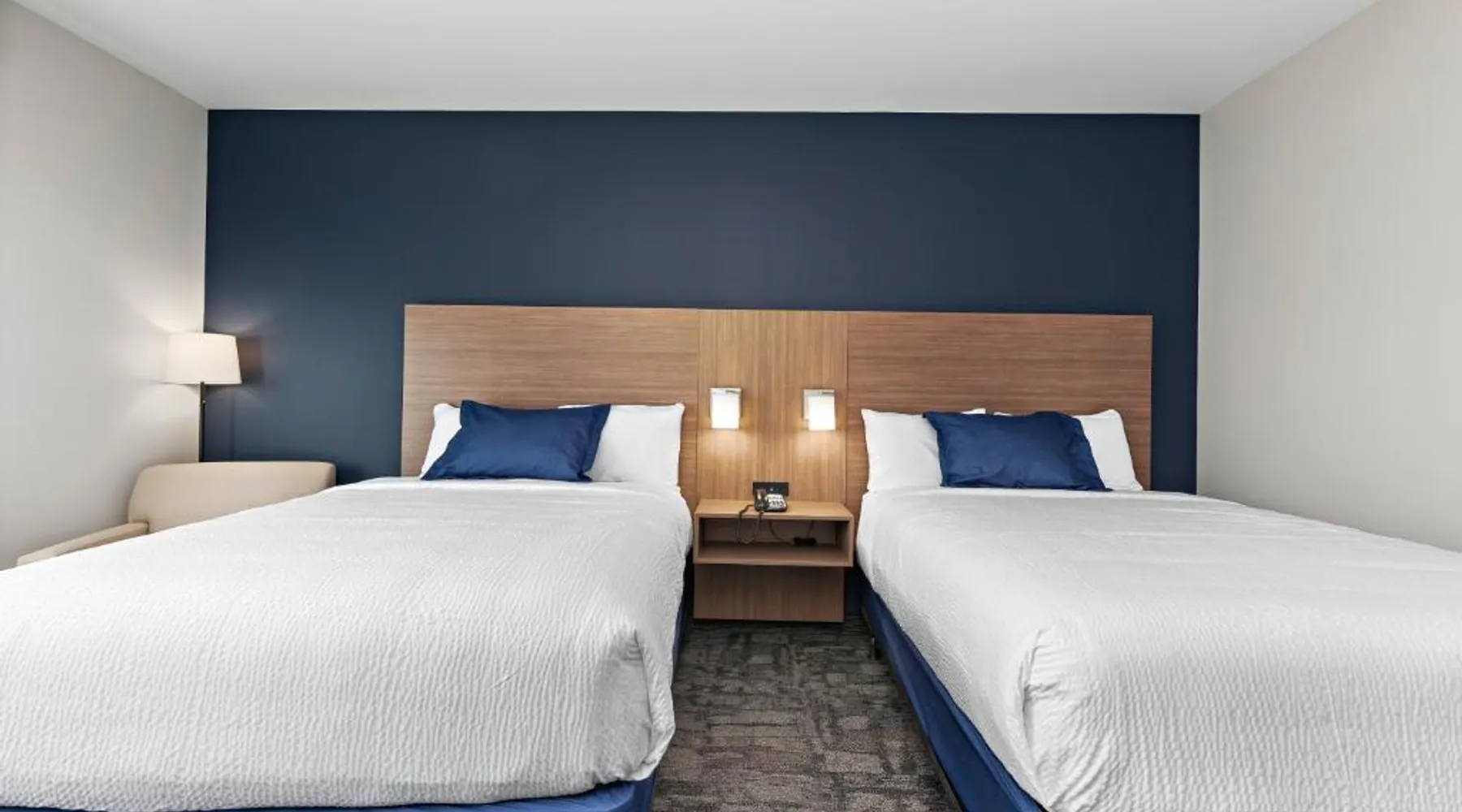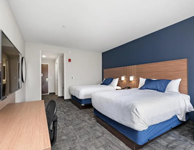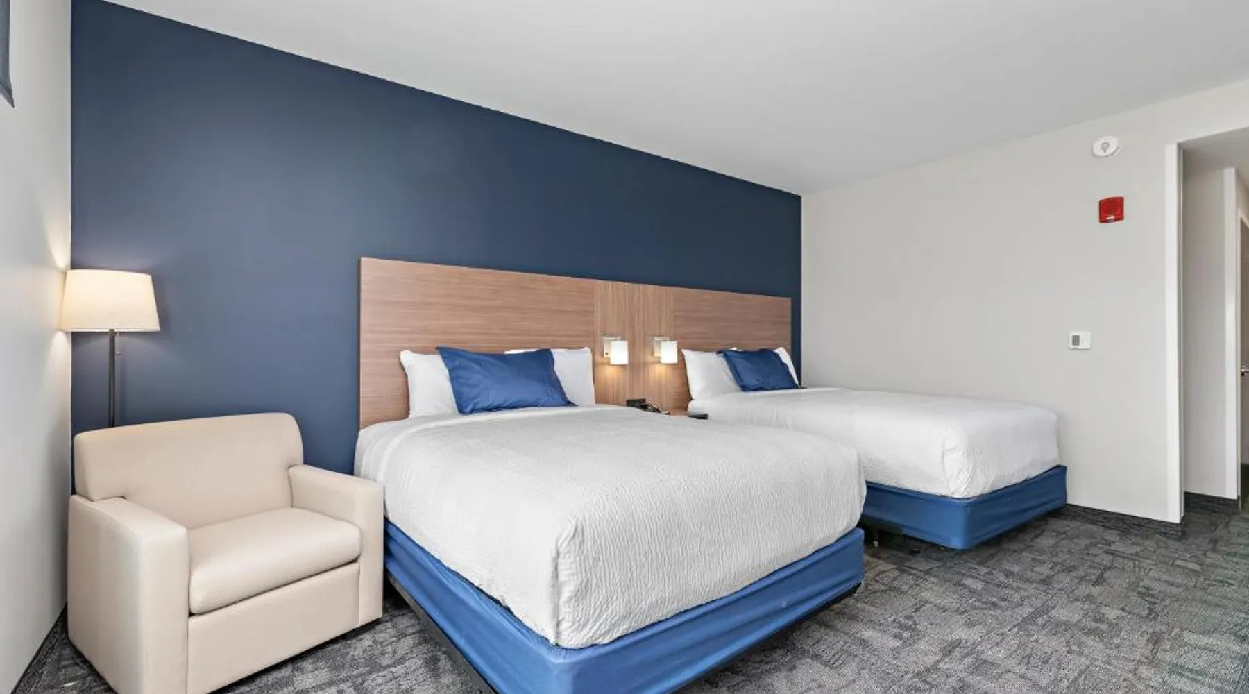 Comfortable Accommodations: Holiday Inn Express Kansas City North Parkville by IHG in Parkville offers air-conditioned rooms with private bathrooms, free WiFi, and modern amenities. Each room includes a work desk, TV, and wardrobe, ensuring a pleasant stay. Leisure Facilities: Guests can enjoy a fitness center, sun terrace, and a seasonal outdoor swimming pool. Additional facilities include an outdoor fireplace, fitness room, and electric vehicle charging station. Free on-site parking is available for convenience. Dining Options: A continental, American, and buffet breakfast is served daily. The property also features an outdoor seating area and a business area, catering to both leisure and business travelers. Prime Location: Located 5.6 mi from Kansas City International Airport, the hotel is near attractions such as Lake Waukomis (11 mi) and Downtown Kansas City (18 mi). Highly rated for its convenient location, room cleanliness, and breakfast provided by the property. The double room offers air conditioning, a wardrobe, as well as a private bathroom featuring a shower and a hairdryer. The double room provides a flat-screen TV, a safe deposit box, tumble dryer and a carpeted floor. The unit offers 2 beds.