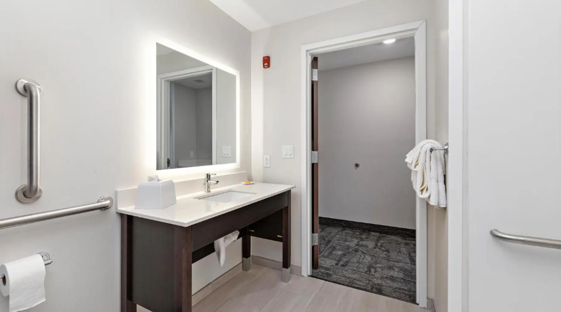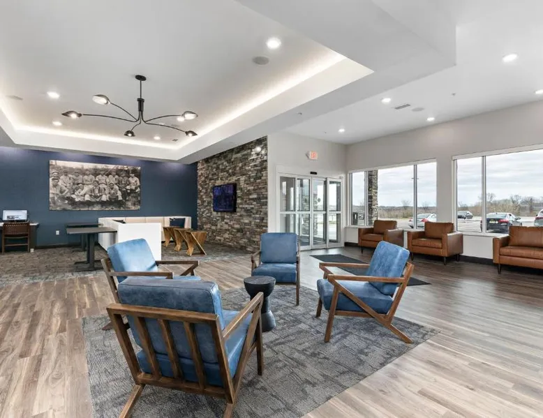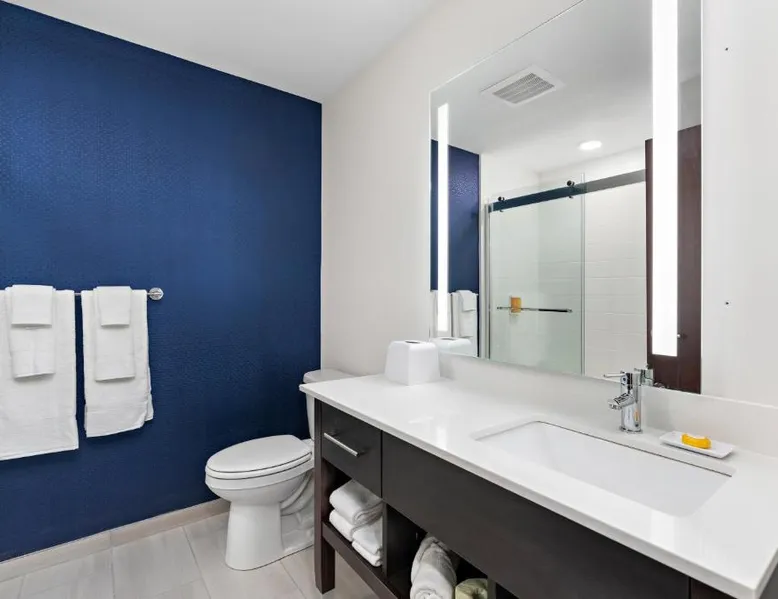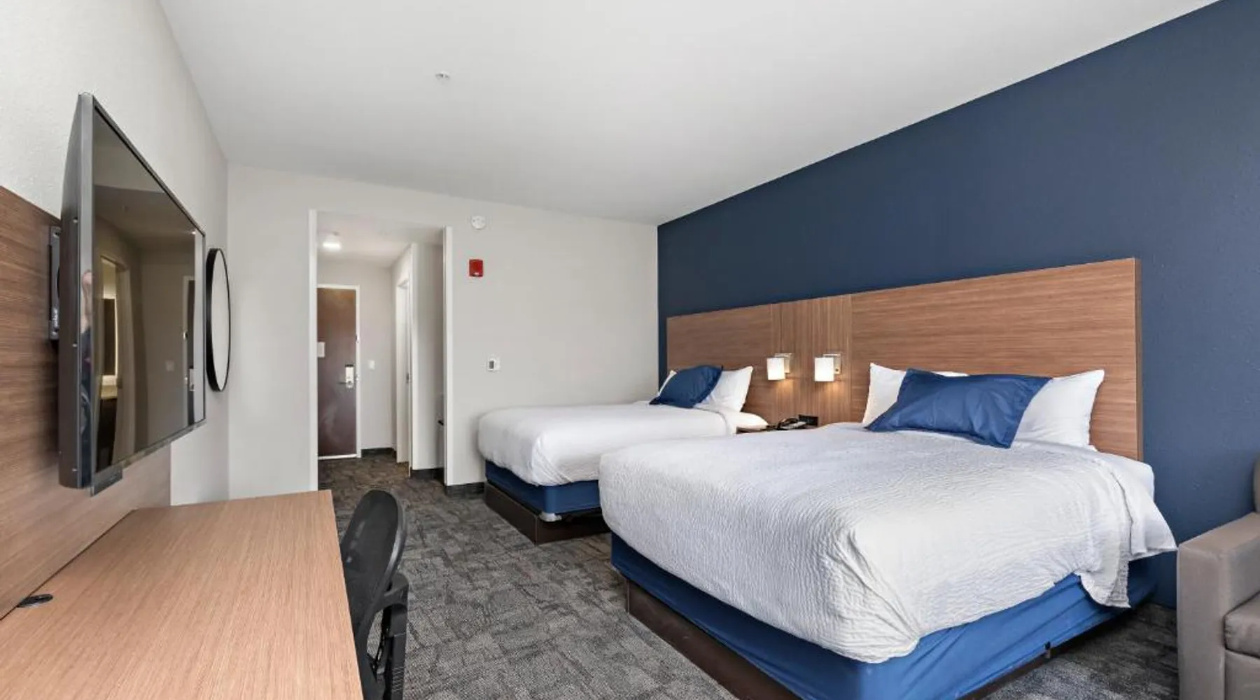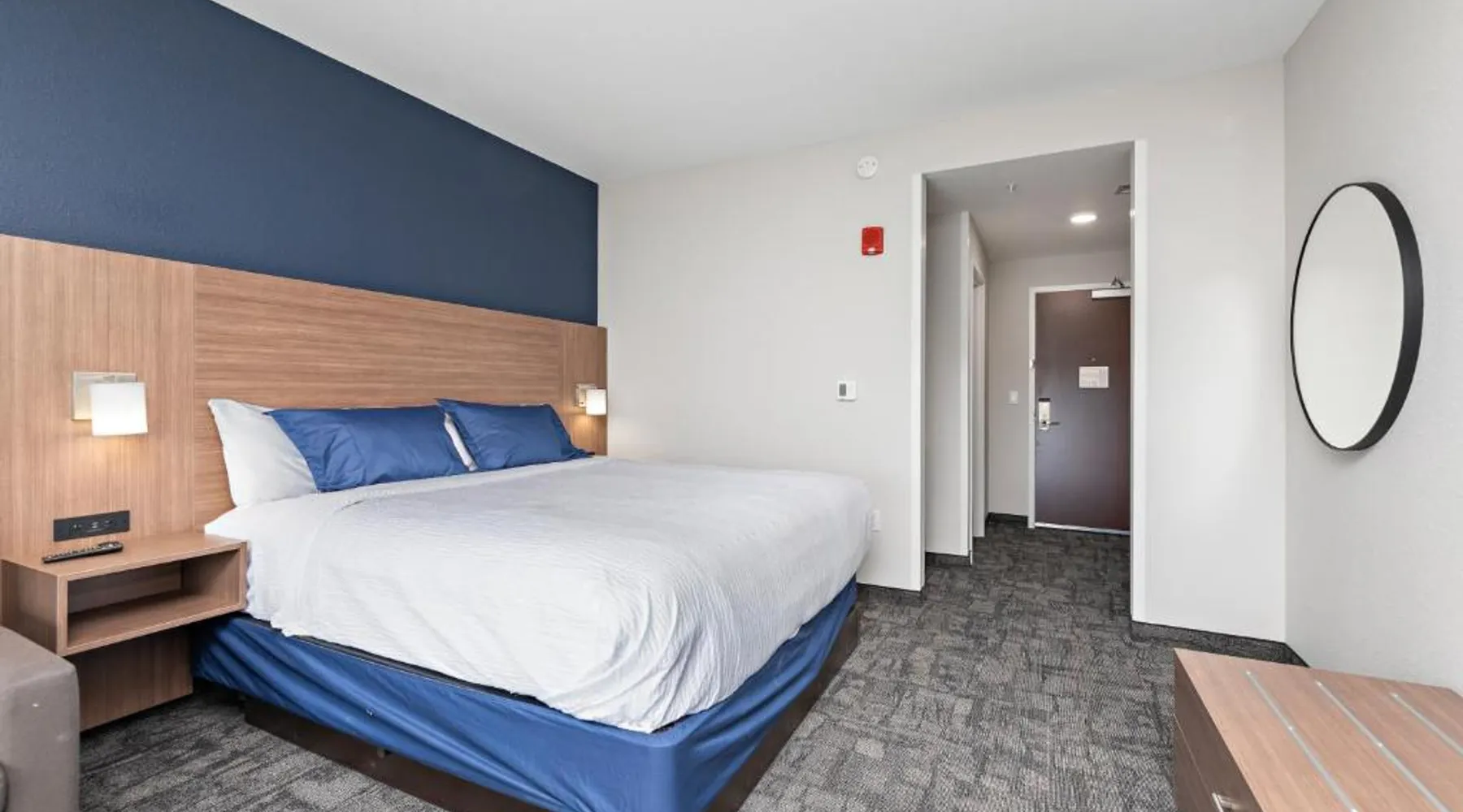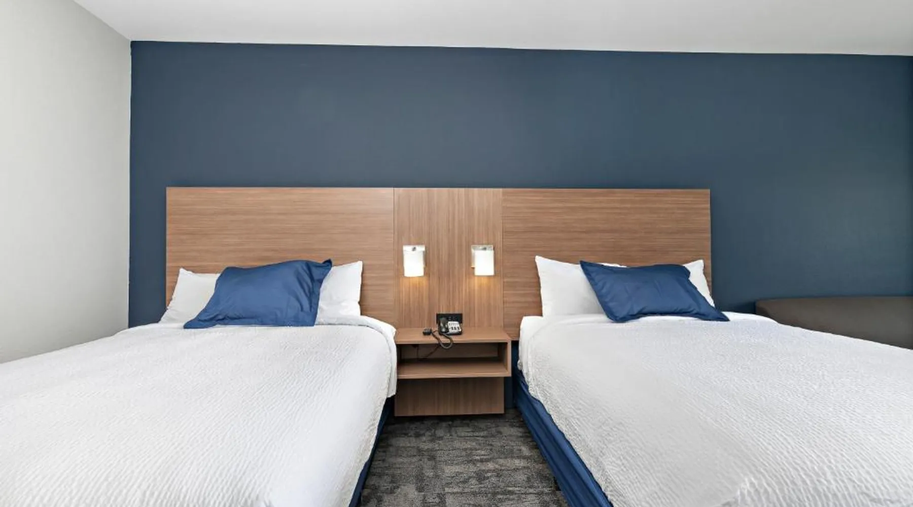 Comfortable Accommodations: Holiday Inn Express Kansas City North Parkville by IHG in Parkville offers air-conditioned rooms with private bathrooms, free WiFi, and modern amenities. Each room includes a work desk, TV, and wardrobe, ensuring a pleasant stay. Leisure Facilities: Guests can enjoy a fitness center, sun terrace, and a seasonal outdoor swimming pool. Additional facilities include an outdoor fireplace, fitness room, and electric vehicle charging station. Free on-site parking is available for convenience. Dining Options: A continental, American, and buffet breakfast is served daily. The property also features an outdoor seating area and a business area, catering to both leisure and business travelers. Prime Location: Located 5.6 mi from Kansas City International Airport, the hotel is near attractions such as Lake Waukomis (11 mi) and Downtown Kansas City (18 mi). Highly rated for its convenient location, room cleanliness, and breakfast provided by the property. The double room offers air conditioning, a wardrobe, as well as a private bathroom featuring a shower and a hairdryer. The double room provides a flat-screen TV, a safe deposit box, tumble dryer and a carpeted floor. The unit offers 2 beds.