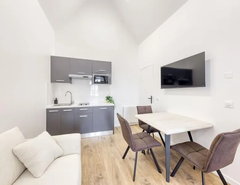 Comfortable Living Space: Luxueux et spacieux - Bobigny - Paris offers a spacious apartment in Bobigny, France. The property features two bedrooms and a bathroom, providing ample space for guests. Modern Amenities: Guests enjoy free WiFi, a balcony, and a fully equipped kitchen. The apartment includes a washing machine, ensuring convenience during the stay. Convenient Location: Located 6.8 mi from Paris Charles de Gaulle Airport, the apartment is close to key attractions. Stade de France is 4.3 mi away, while Gare de l'Est and Gare du Nord are 5 mi and 5.6 mi respectively. Multilingual Reception: Reception staff speak English, Spanish, French, and Italian, catering to a diverse range of guests. The apartment has a balcony. The unit has 2 beds.