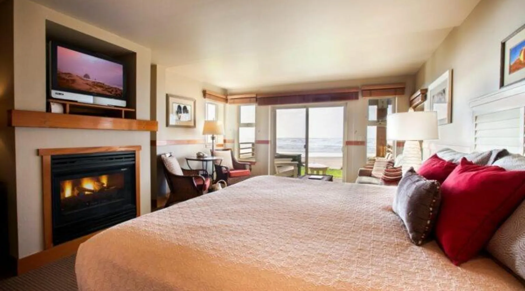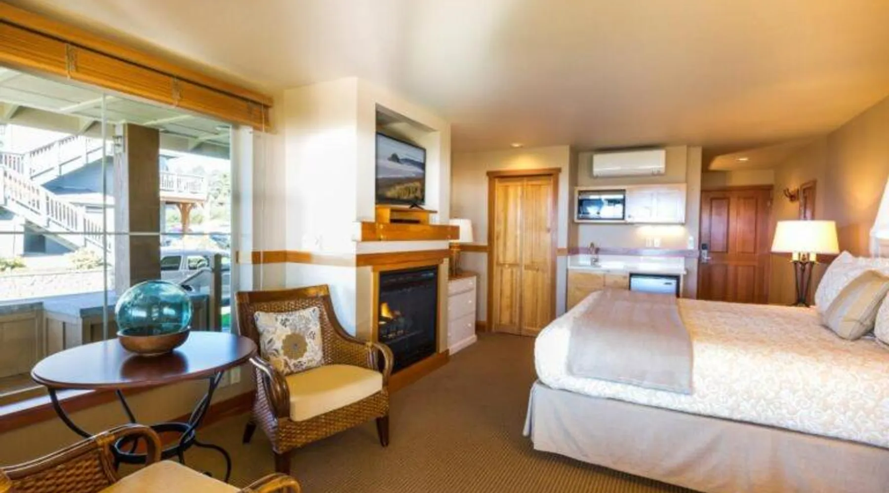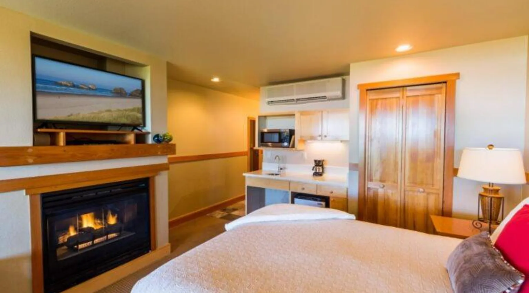 Overlooking the picturesque Oregon coast, The Ocean Lodge is a beachfront property located in Cannon Beach. Free WiFi access available throughout the lodge, and free coffee and cookies can be found 24/7 at the front desk. The warmly decorated rooms here come with a kitchenette, a balcony, and a cable flat-screen TV. A DVD player and a private bathroom are included in each room. Some rooms offer a spa bath, and select rooms have an ocean view. A complimentary continental breakfast is offered daily to guests, with an assortment of pastries, fruit, cereal, and more. Vending machines, a 24-hour front desk, and a daily maid service can all be found on site for added convenience. Guests also have access to a free DVD library. The Ocean Lodge is a 12-minute walk from Haystack Rock, 10 mi from Seaside Aquarium, and the Seaside Factory Outlet Mall is 15 minutes’ drive from the lodge. The fireplace is a top feature of this studio. Featuring free toiletries and bathrobes, this studio includes a private bathroom with a walk-in shower, a hairdryer and slippers. The studio's kitchenette, which has a refrigerator and a microwave, is available for cooking and storing food. The air-conditioned studio features a flat-screen TV with cable channels, a tea and coffee maker, a wardrobe, a carpeted floor as well as sea views. The unit has 1 bed.